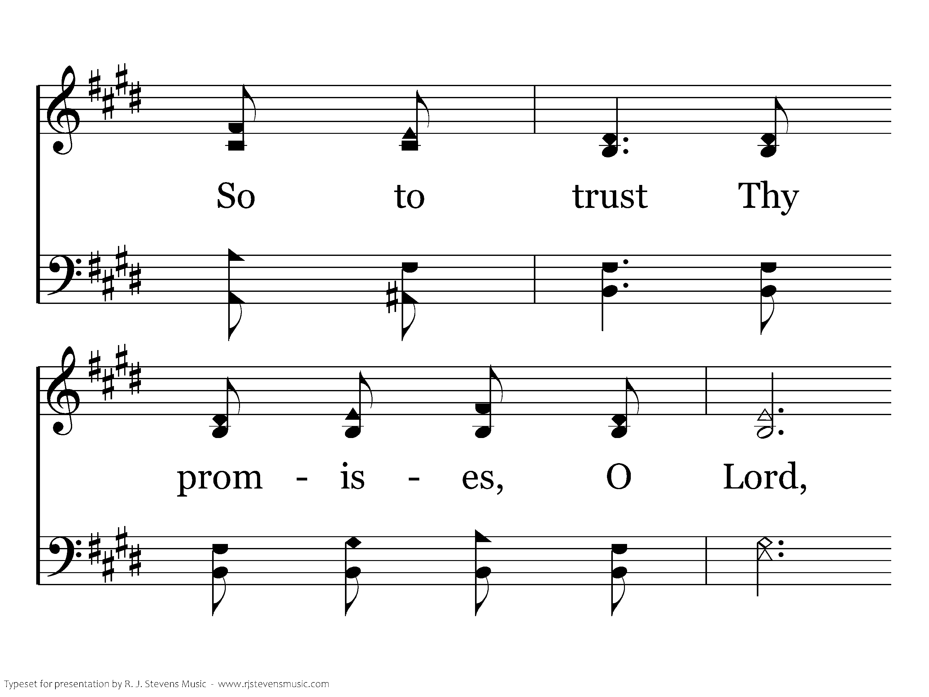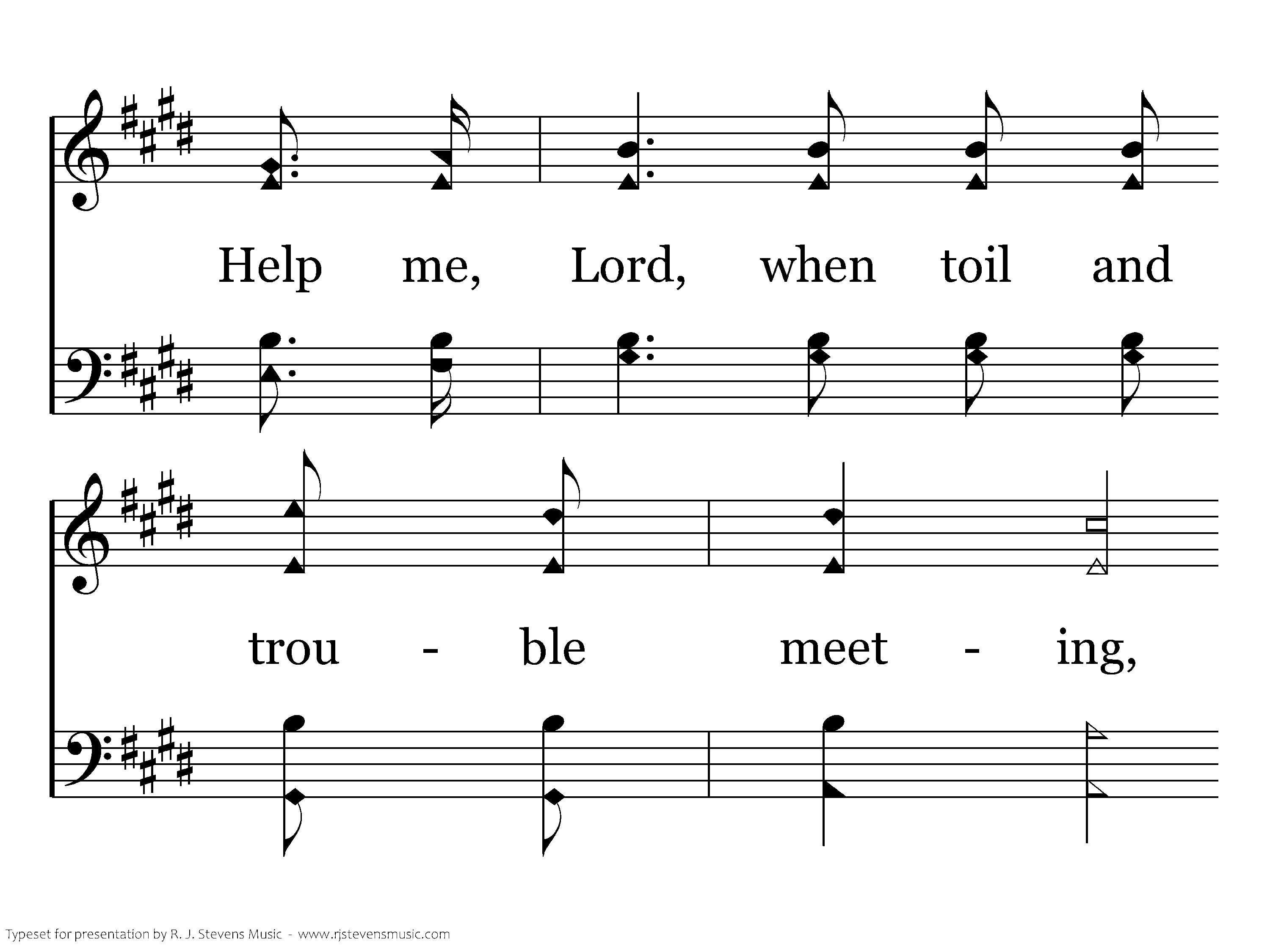 Help me then in every tribulation So to trust Thy promises, O Lord, That I lose not faith's sweet consolation Offered me within Thy holy word. Help me , Lord, when toil and trouble meeting, E'er to take as from a Father's hand, One by one the days, the moments fleeting, till I reach the promised land.