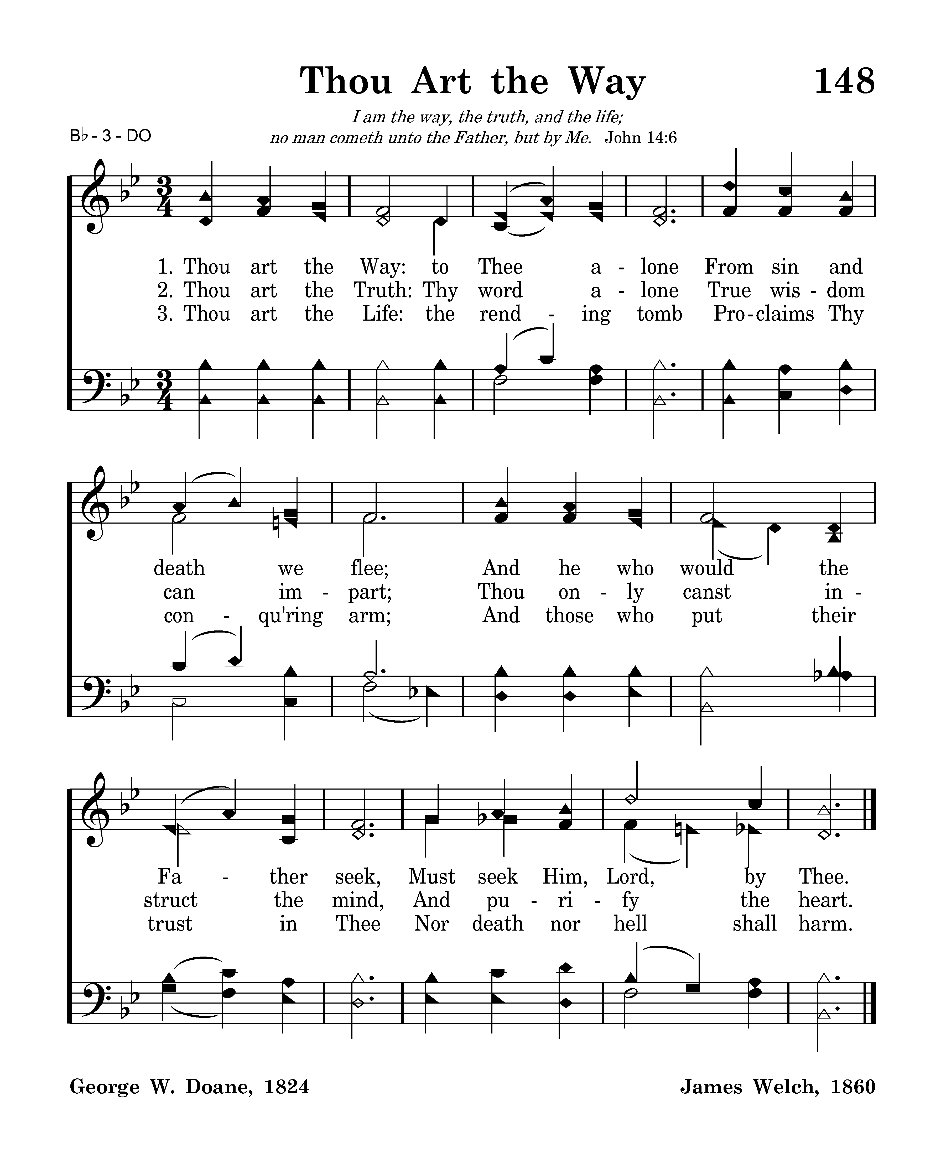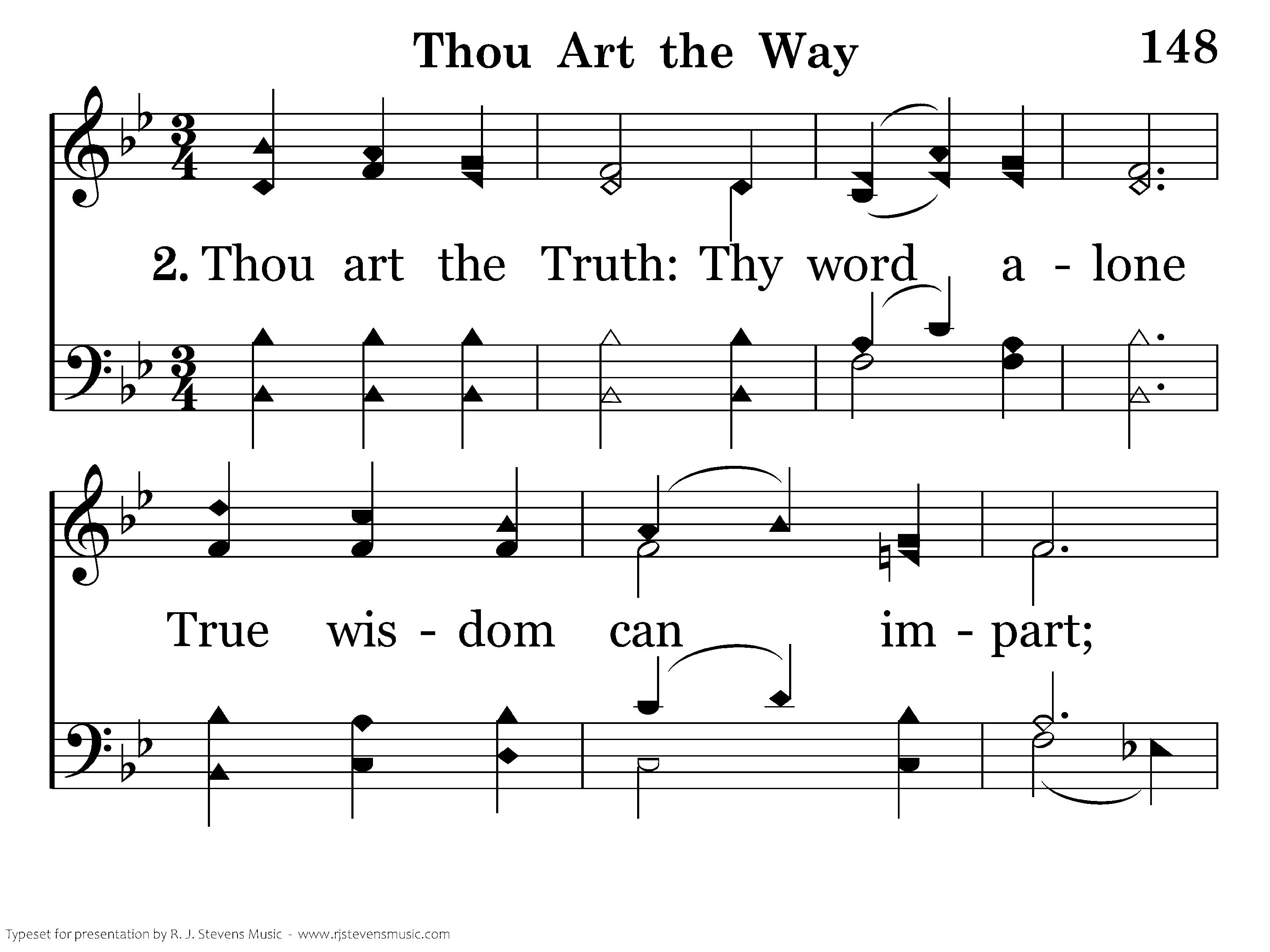 Thou art the way: to Thee alone From sin and death we flee; And he who would the Father seek, Must seek him, Lord, by Thee.