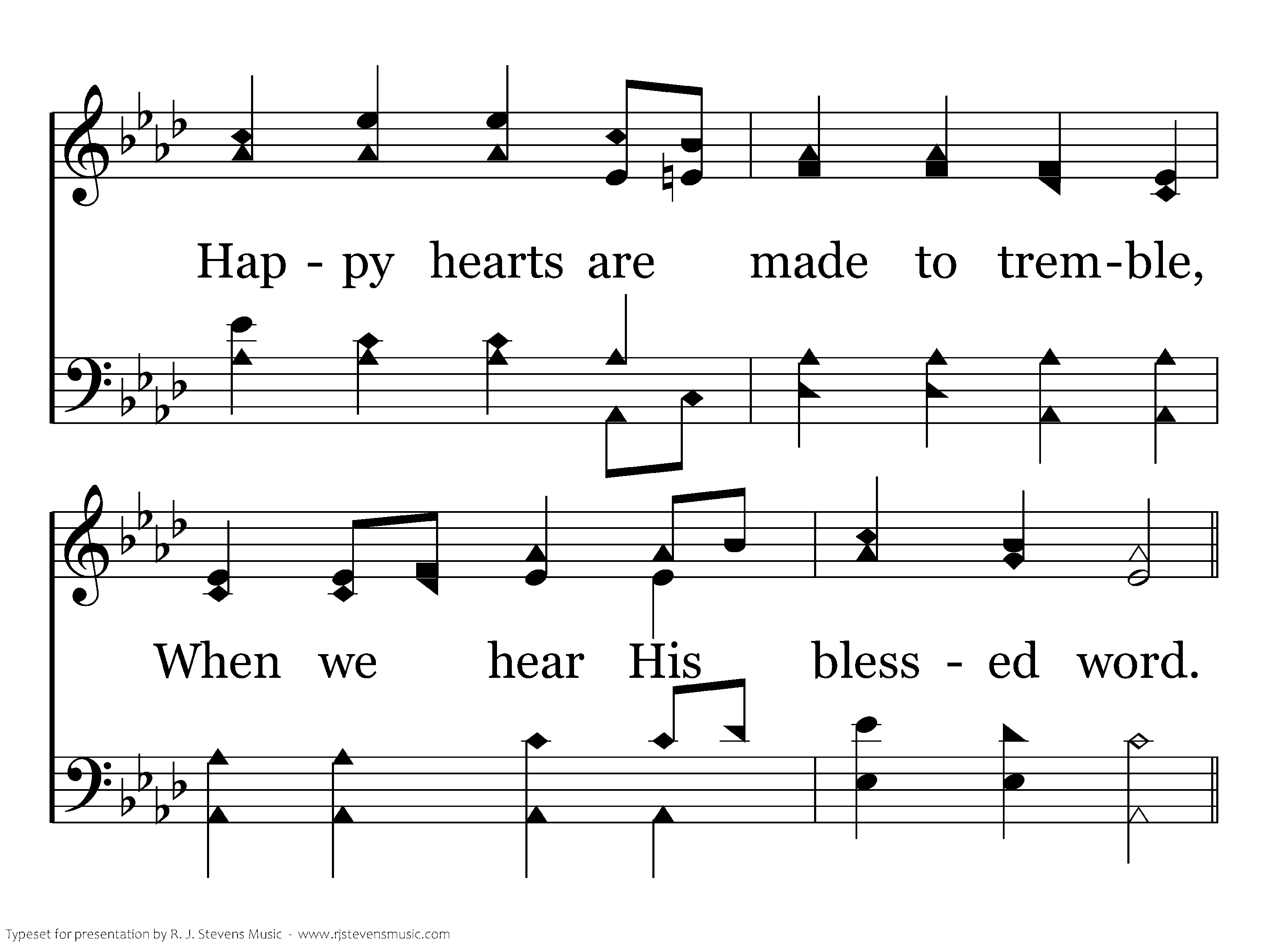 On this Lord's day we assemble 'Round the table of the Lord; Happy hearts are made to tremble When we hear His blessed word.