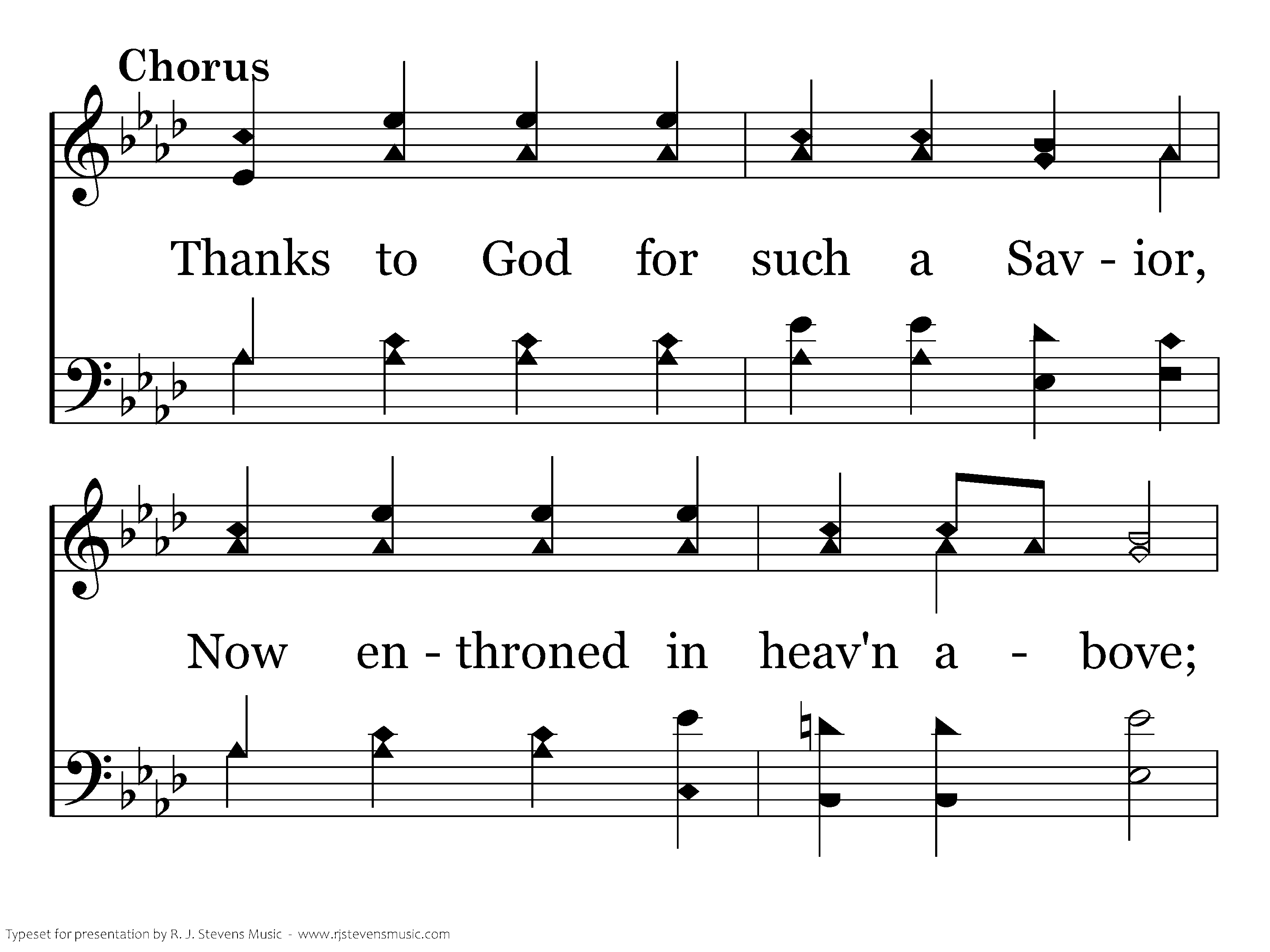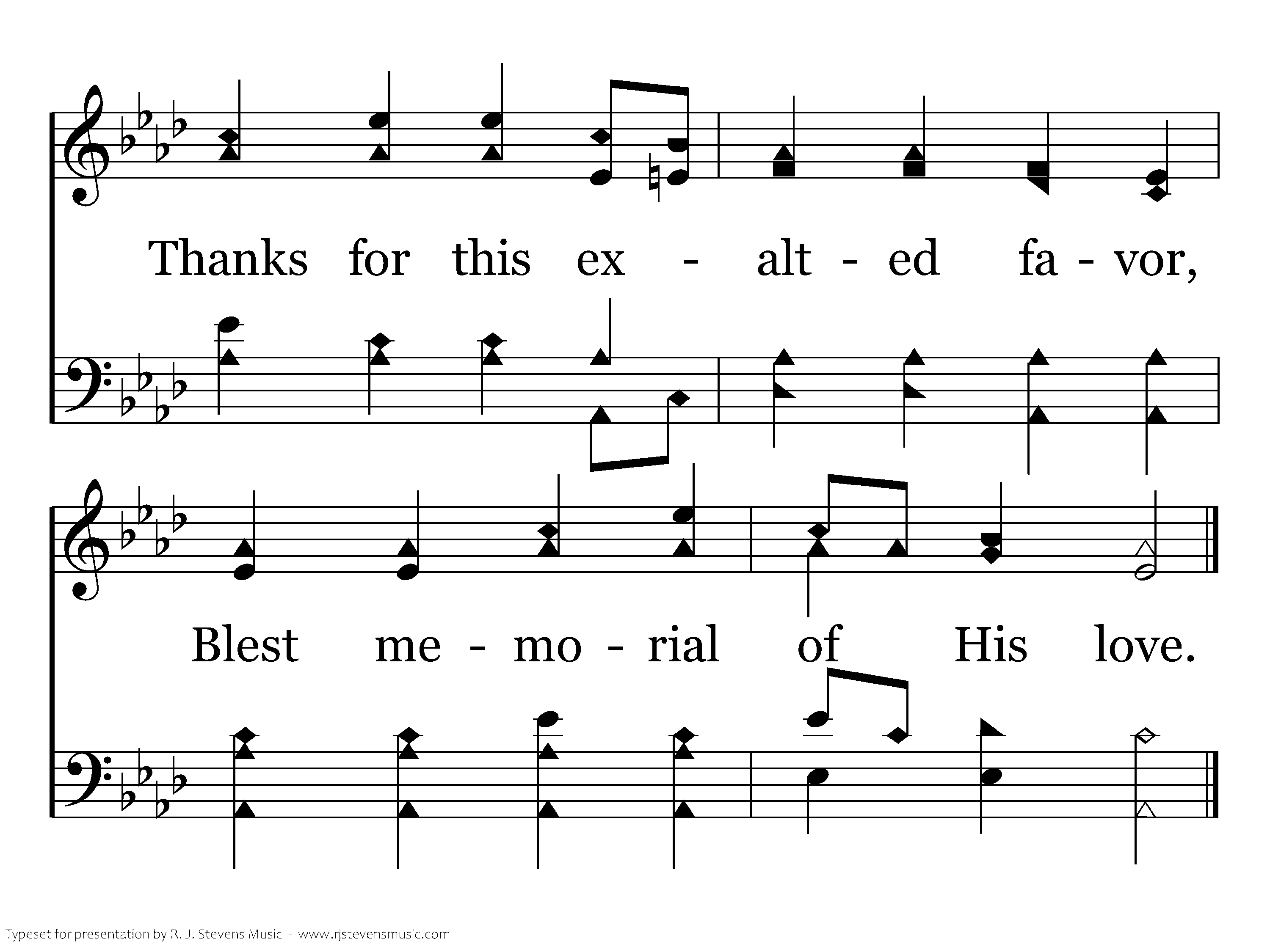 Thanks to God for such a Savior Now enthroned in heav'n above; Thanks for this exalted favor, Blest memorial of His love.