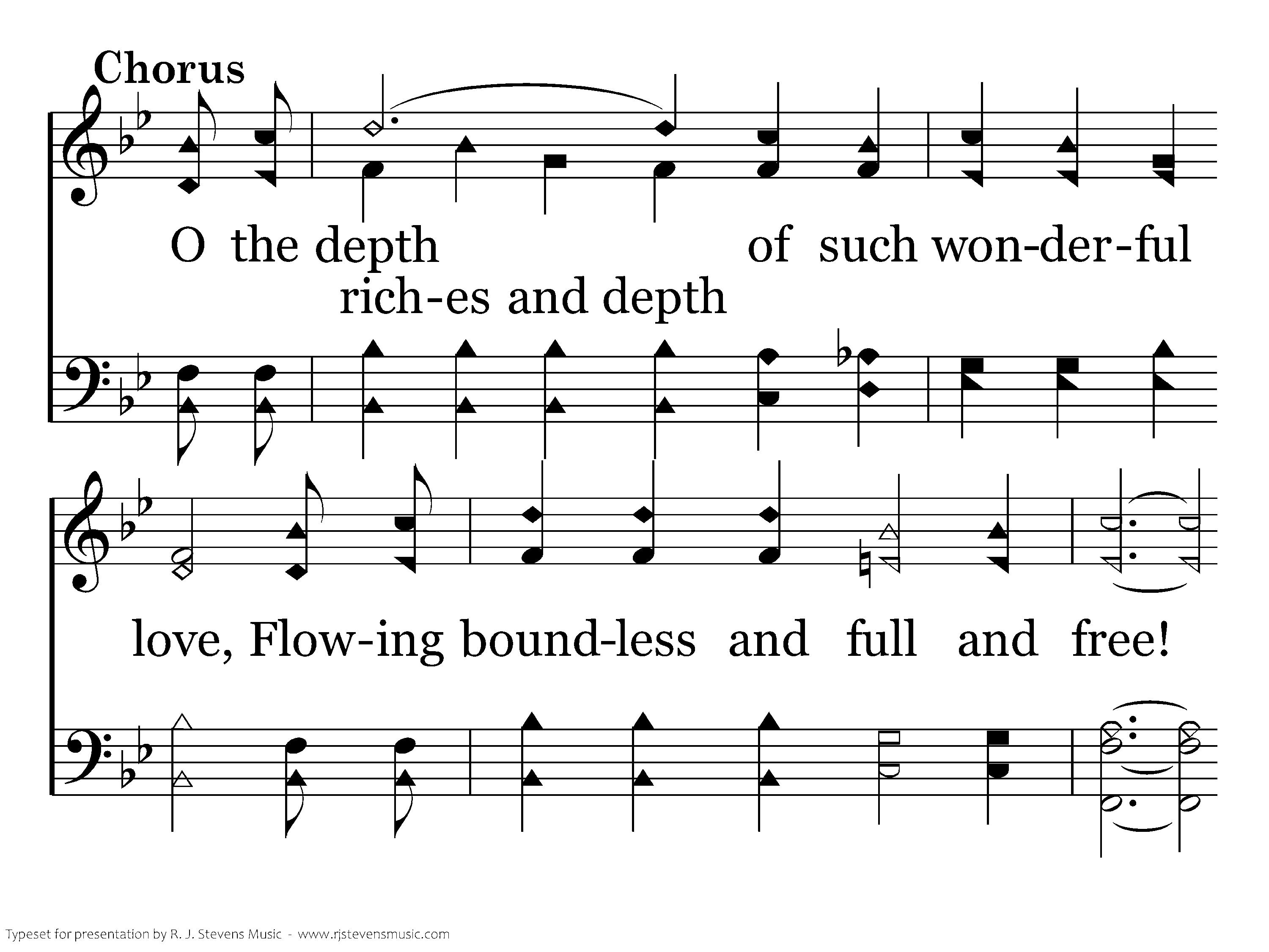 O the depth (riches and depth) of such wonderful love, Flowing boundless and full and free! And the debt (on the cross) for my sins was all paid in His suffering on Calvary!