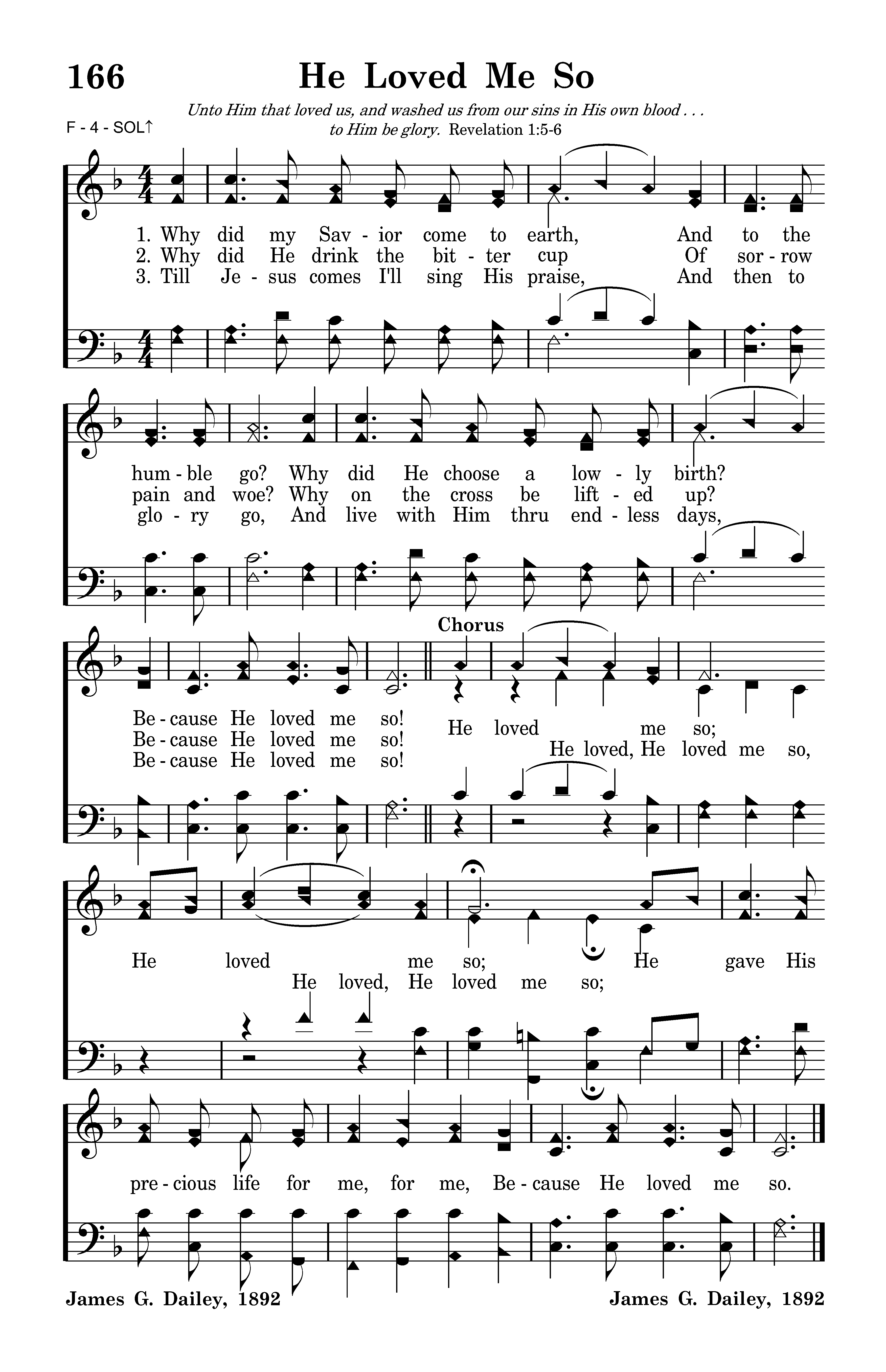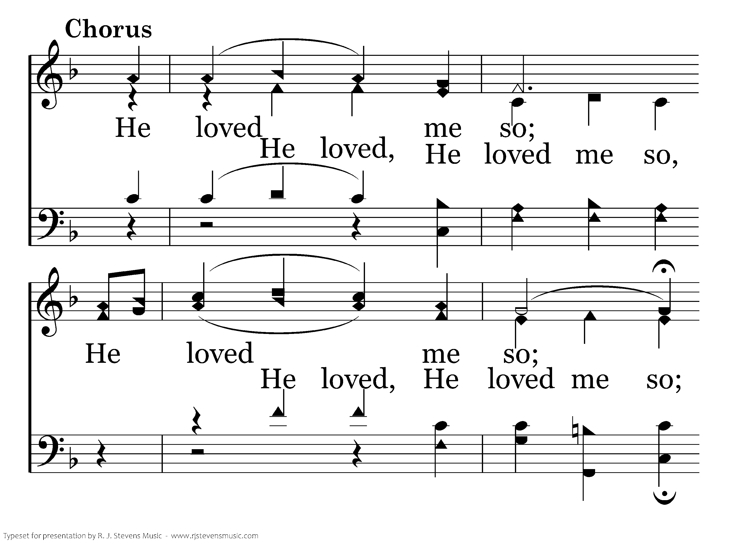 He loved (He loved), me so; (He loved me so);He loved (He loved) me so. (He loved me so.) He gave His precious life for me, for me, because He loved me so.