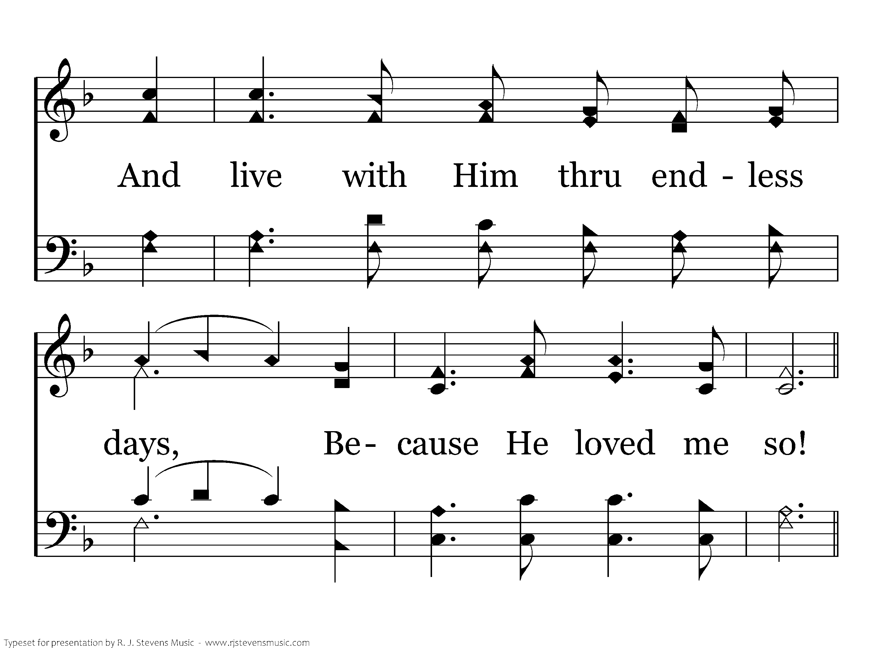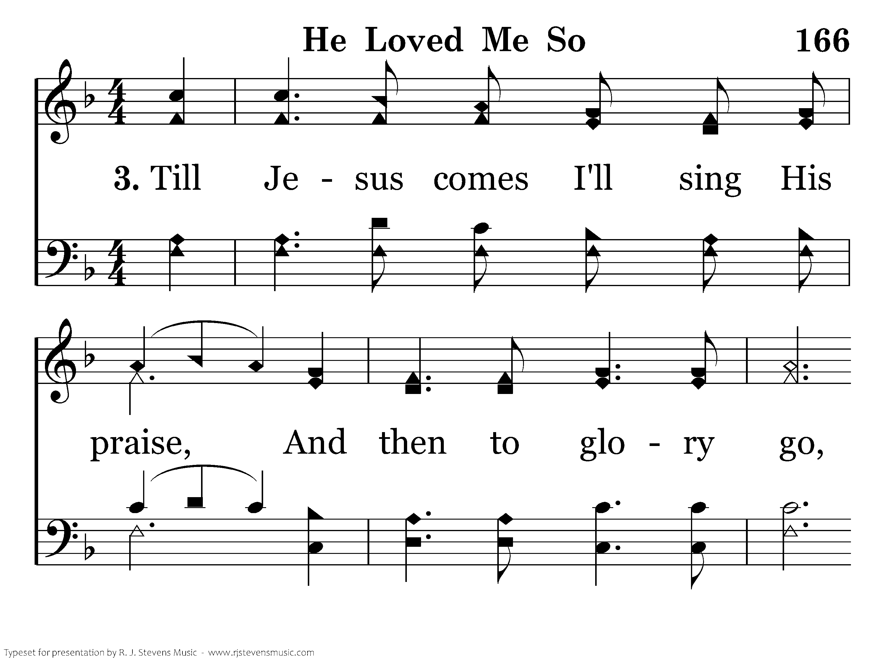 Till Jesus comes I'll sing His praise, And then to glory go, And live with Him thru endless days, Because He loved me so!