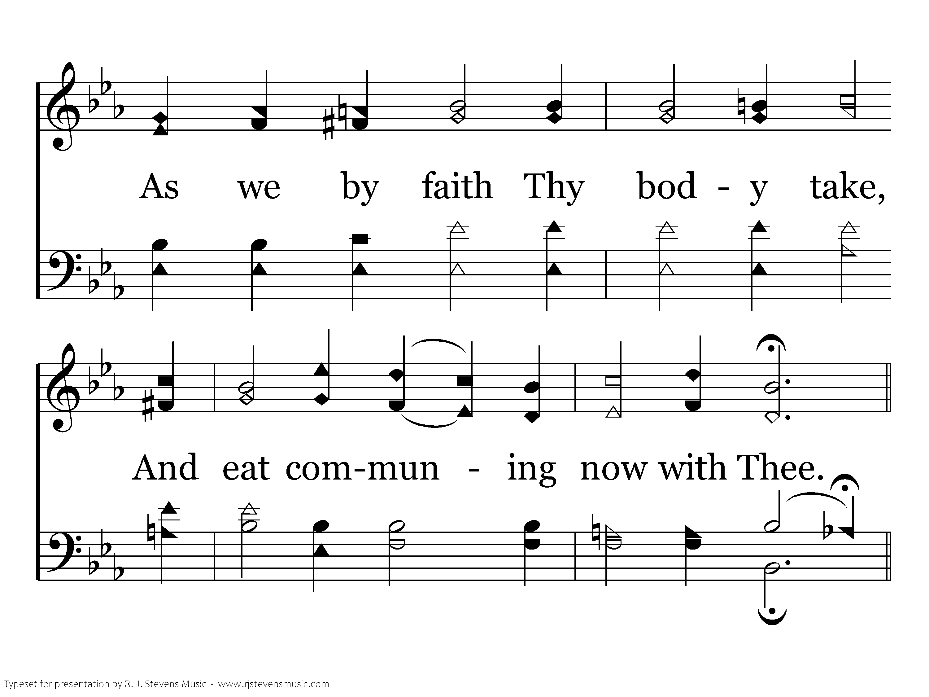Lord, consecrate this bread we break, Thy body offered on the tree, As we by faith Thy body take, And eat communing now with Thee.