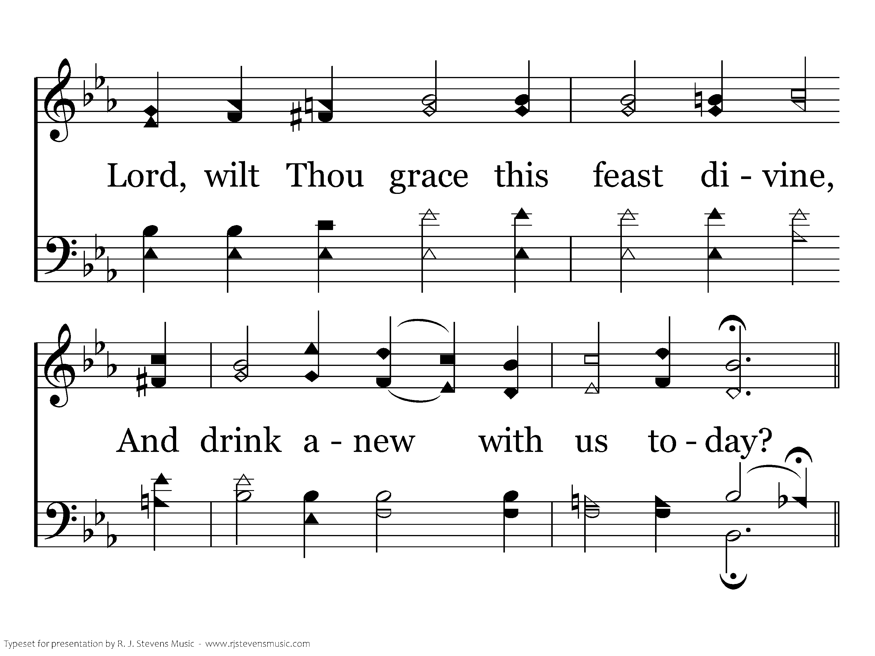 Bless Yhou this cup O precious vVne, Thy blood to wash our sins away; Lord, wilt Thou grace this feast divine, And drink anew with us today?