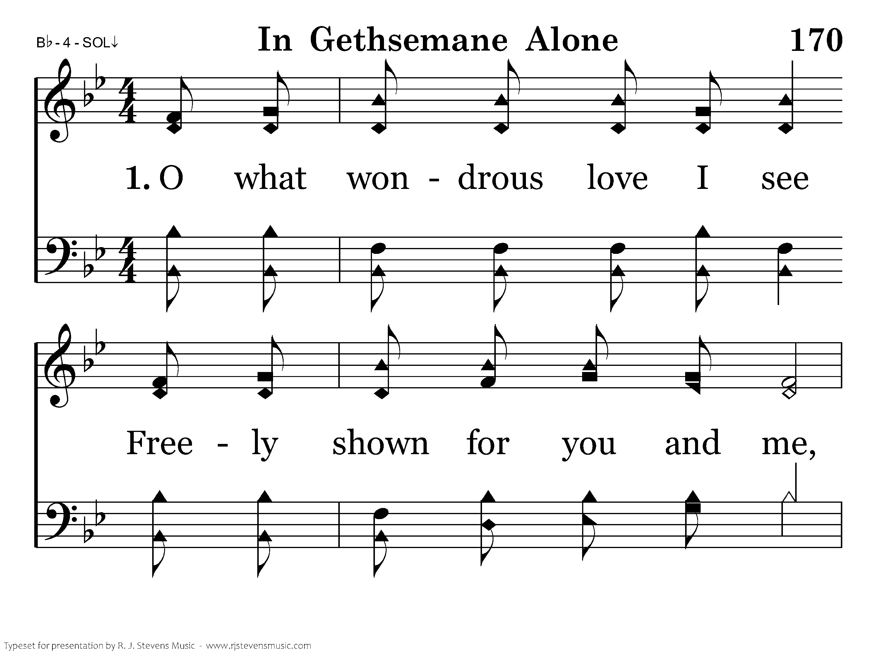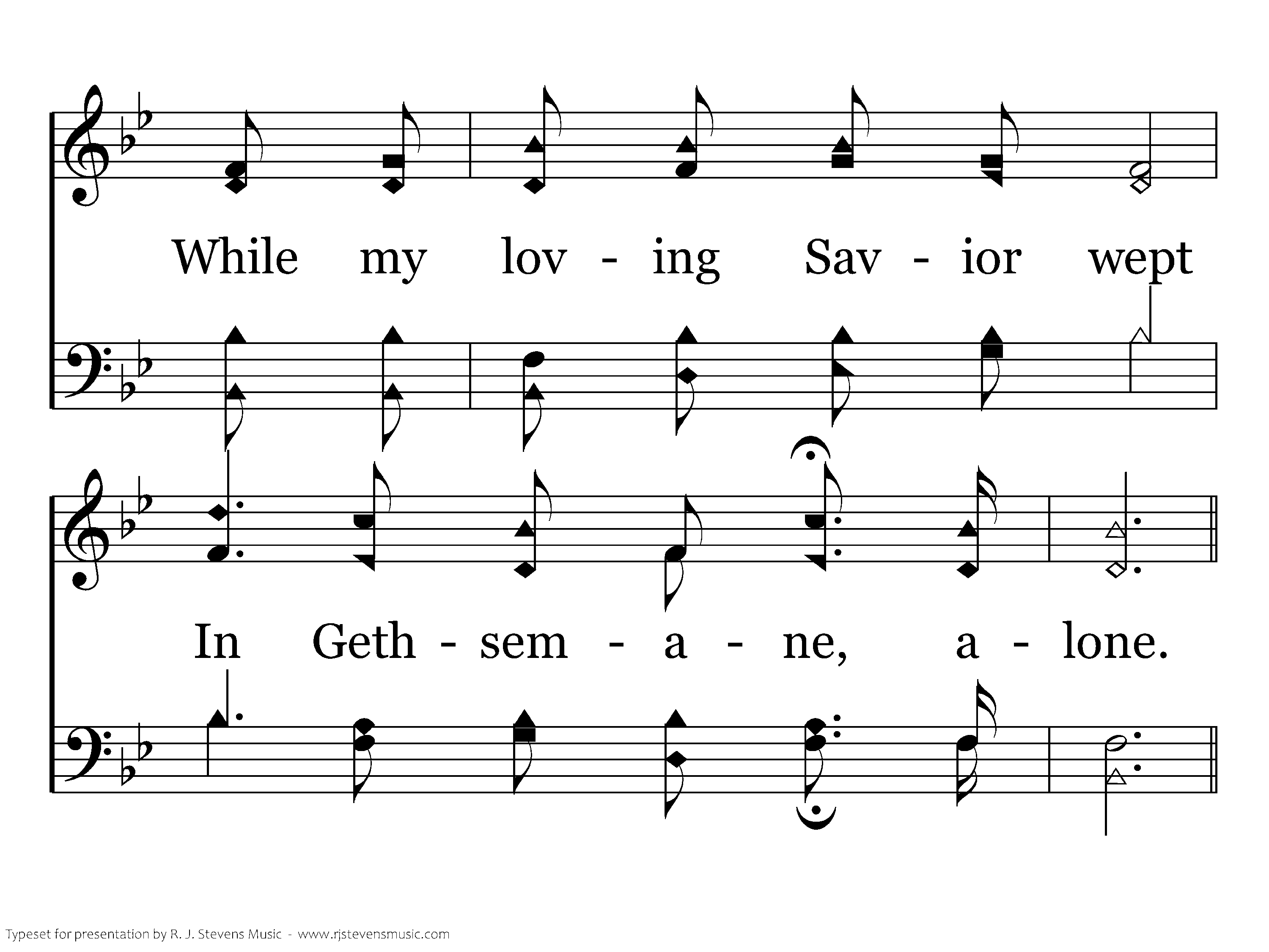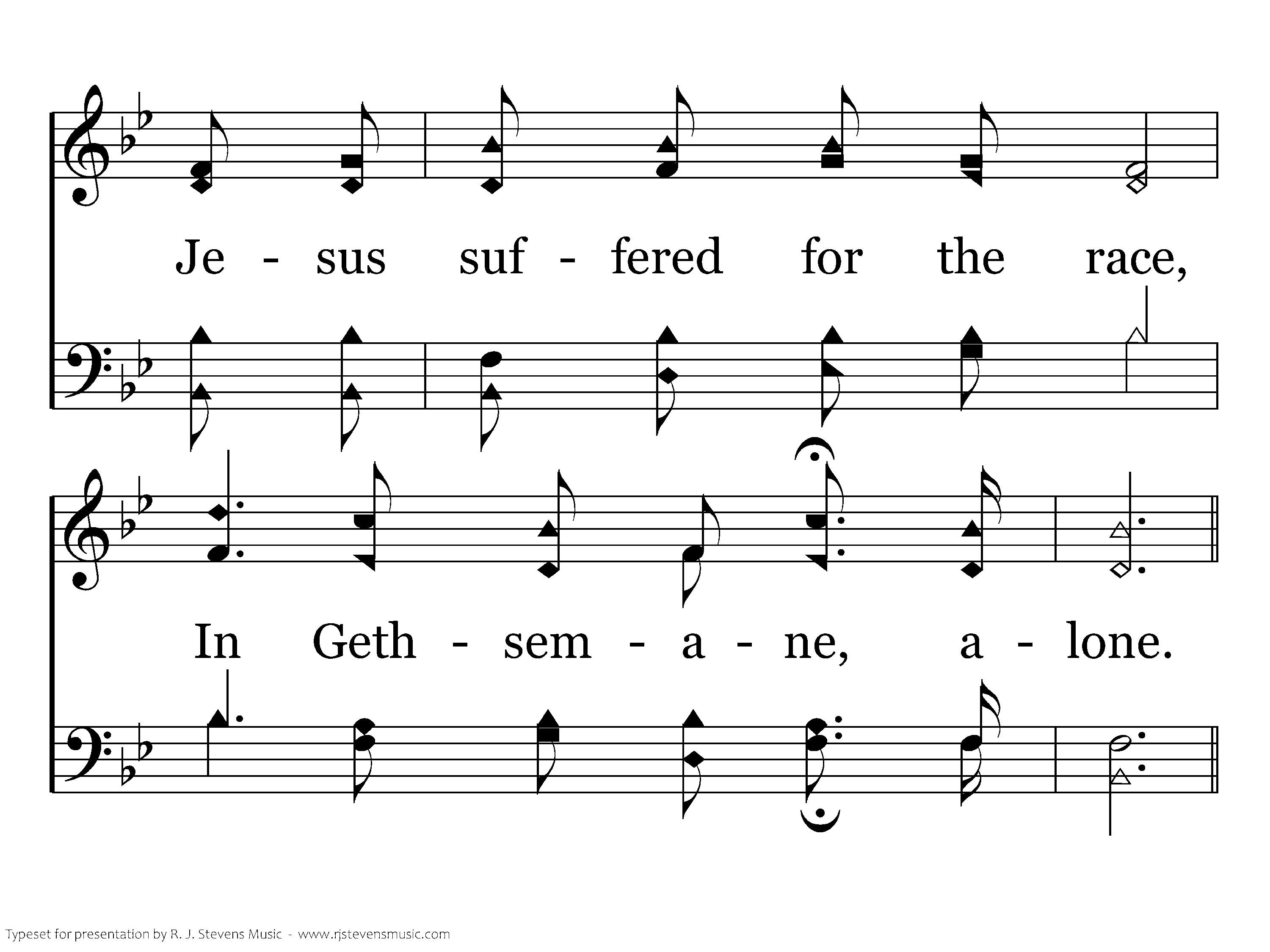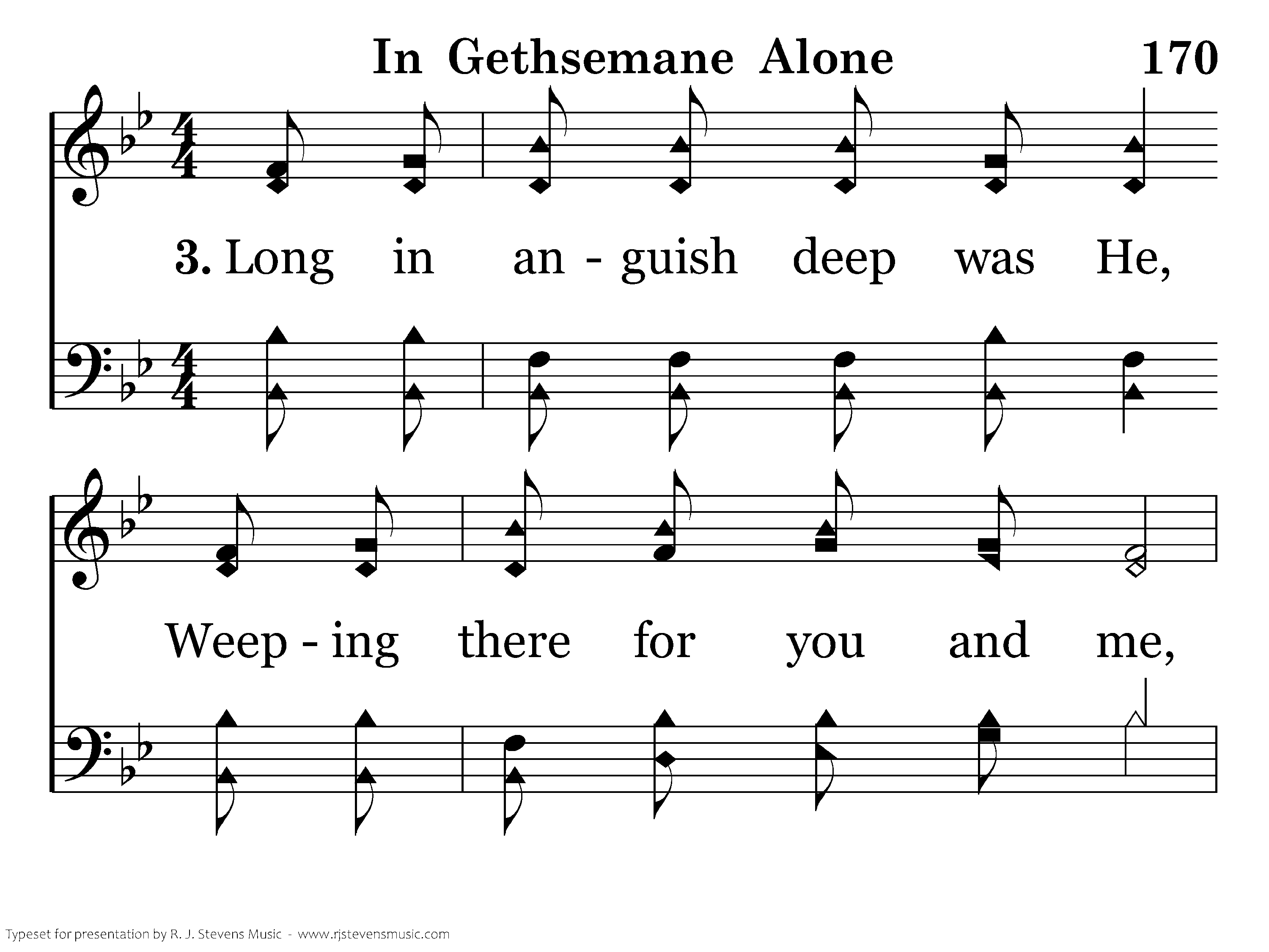 Long in anguish, deep was He, Weeping there for you and me, For our sin to Him was known; We should love Him evermore For the anguish that He bore In Gethsemane, alone.