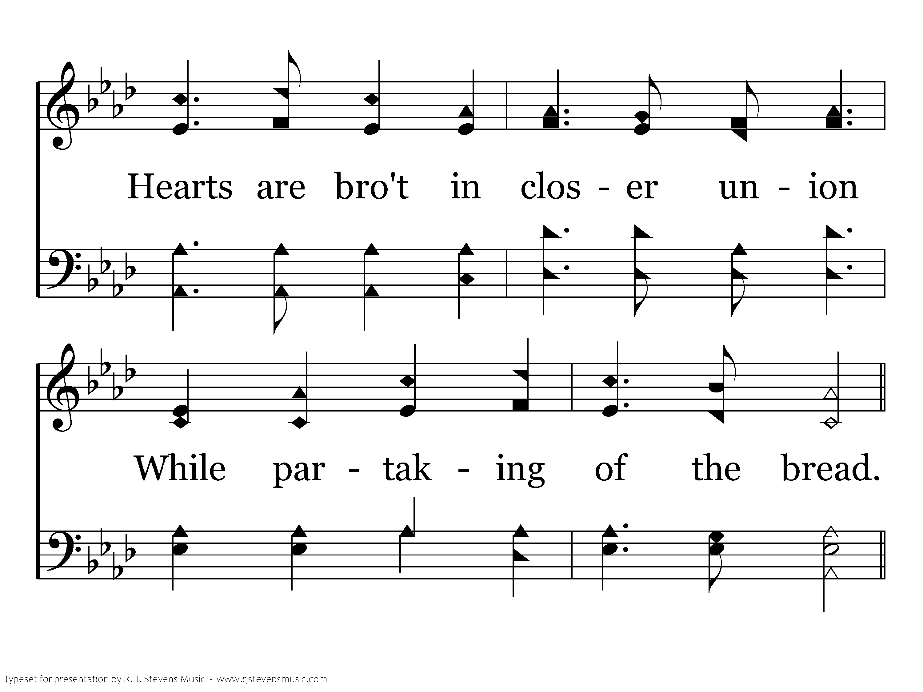 When we meet in sweet communion, Where the feast divine is spread; Hearts are bro't in closer union While partaking of the bread.
