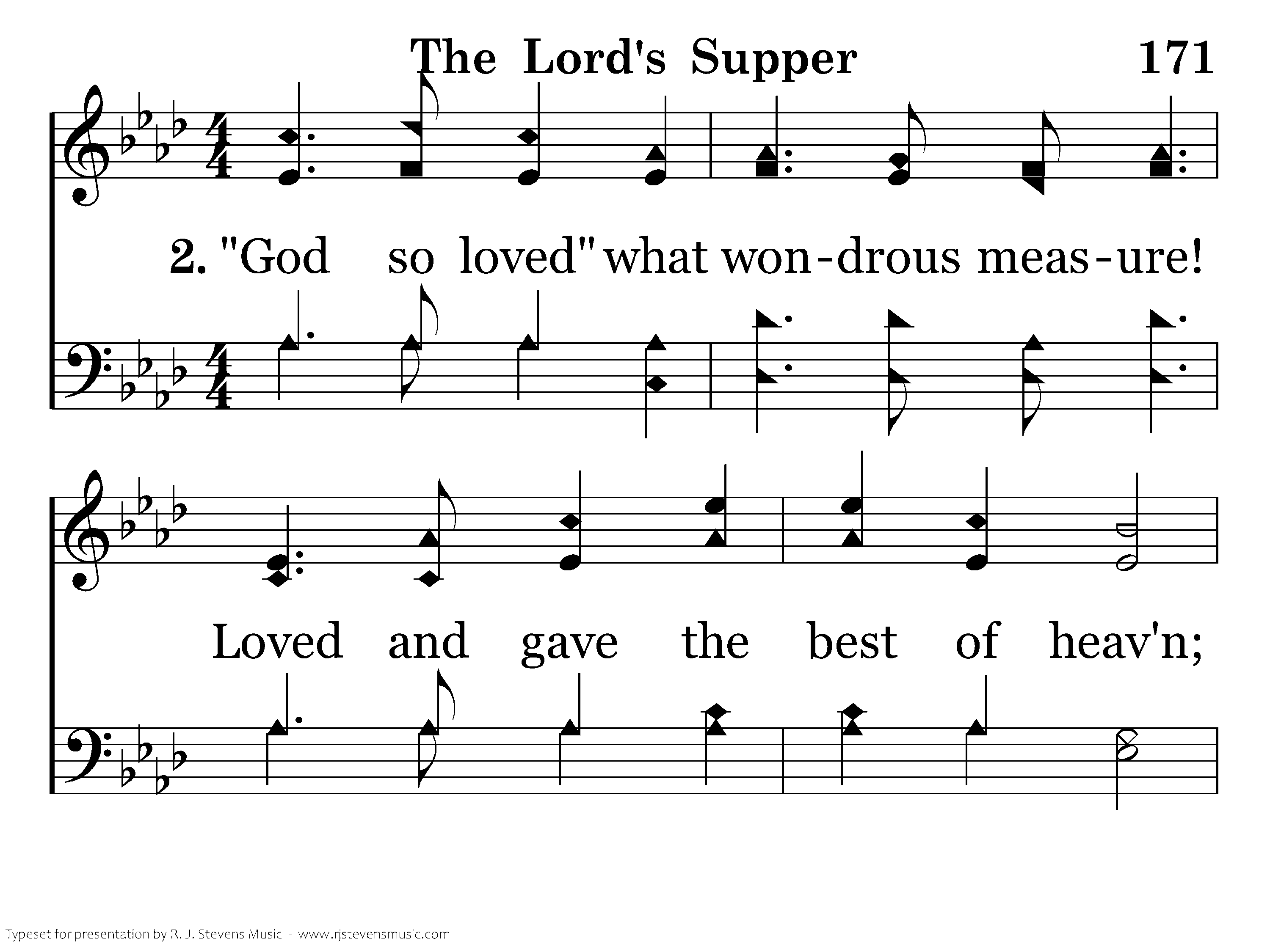 God so loved what wondrous measure! Loved and gave the best of heav'n; bought us with the matchless treasure, Yea, for us hHs life is giv'n.