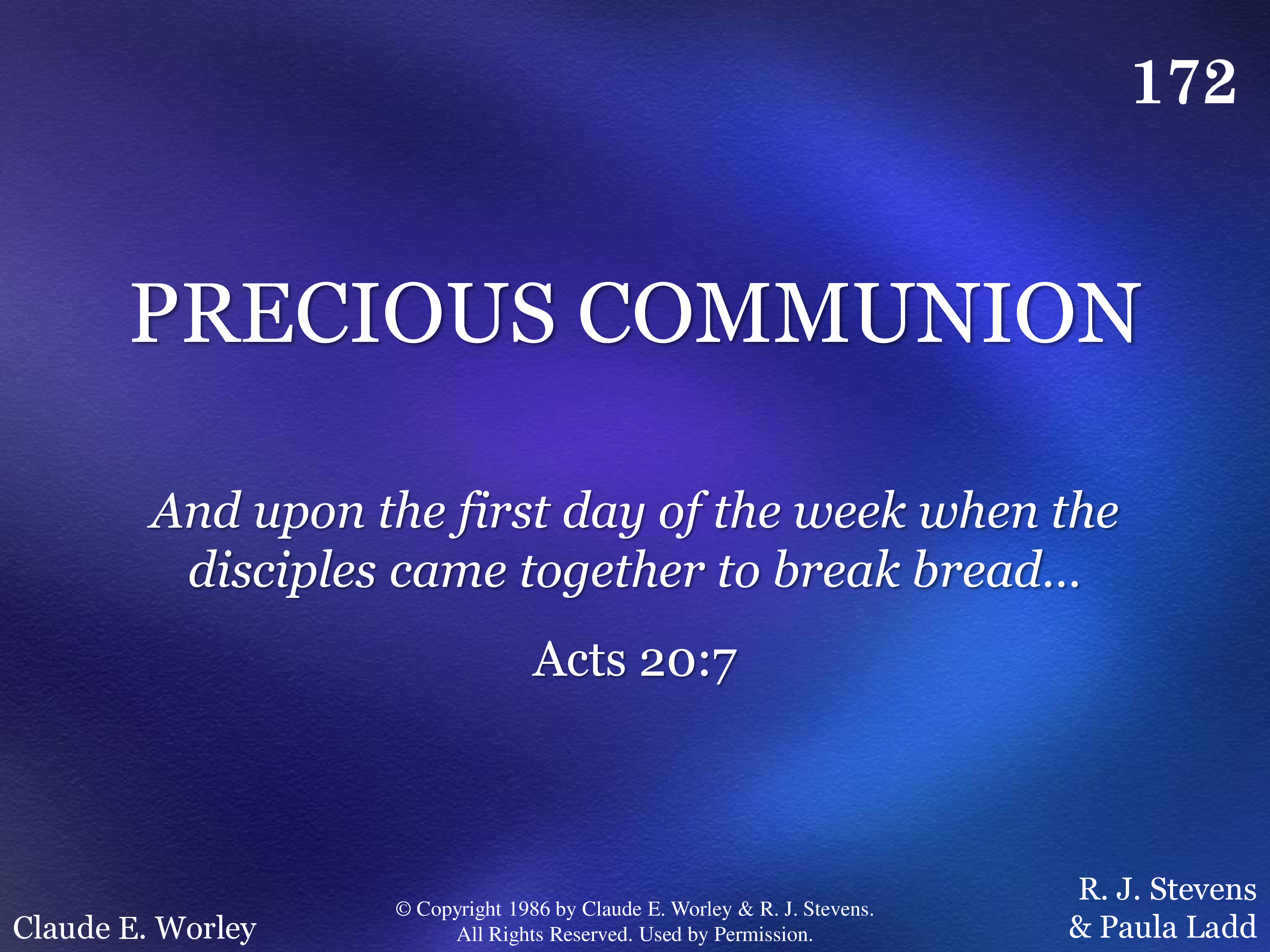 - © Copyright 1986 by Claude E. Worley & R. J. Stevens. All Rights Reserved. Used by Permission.