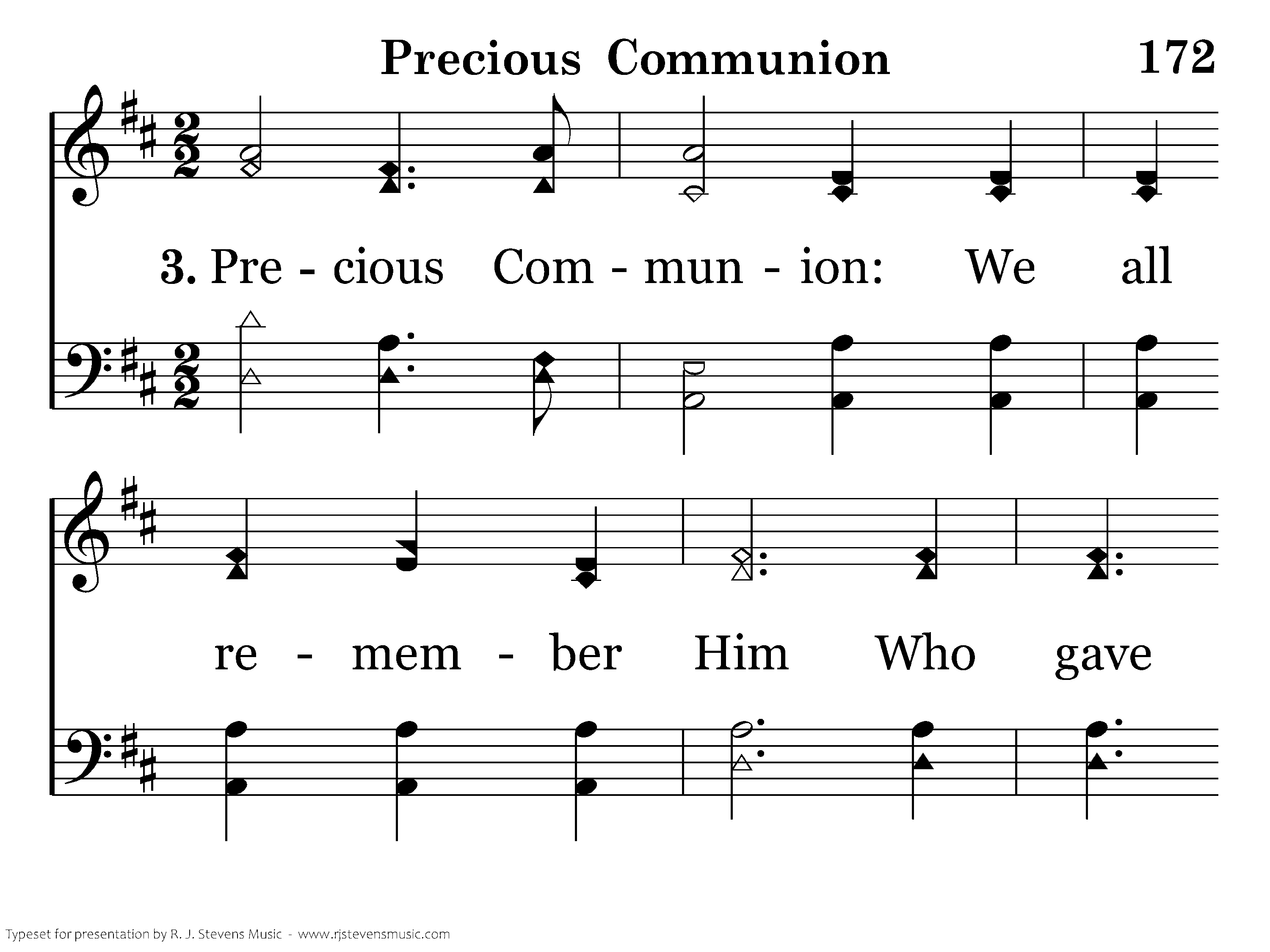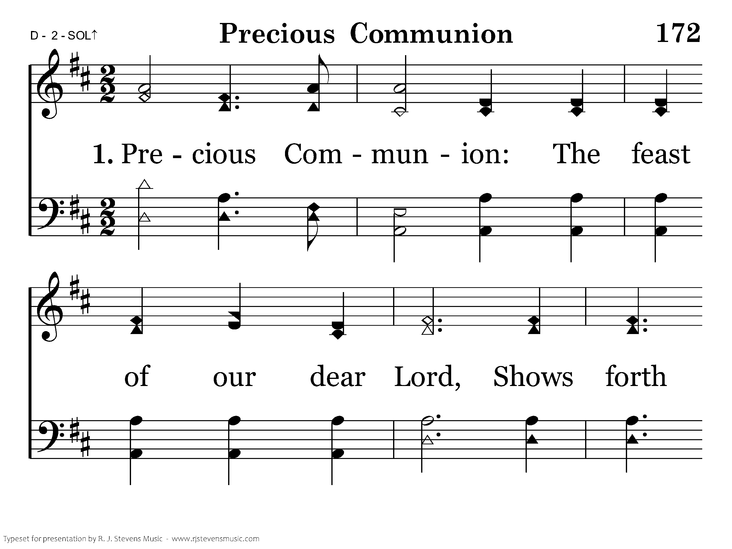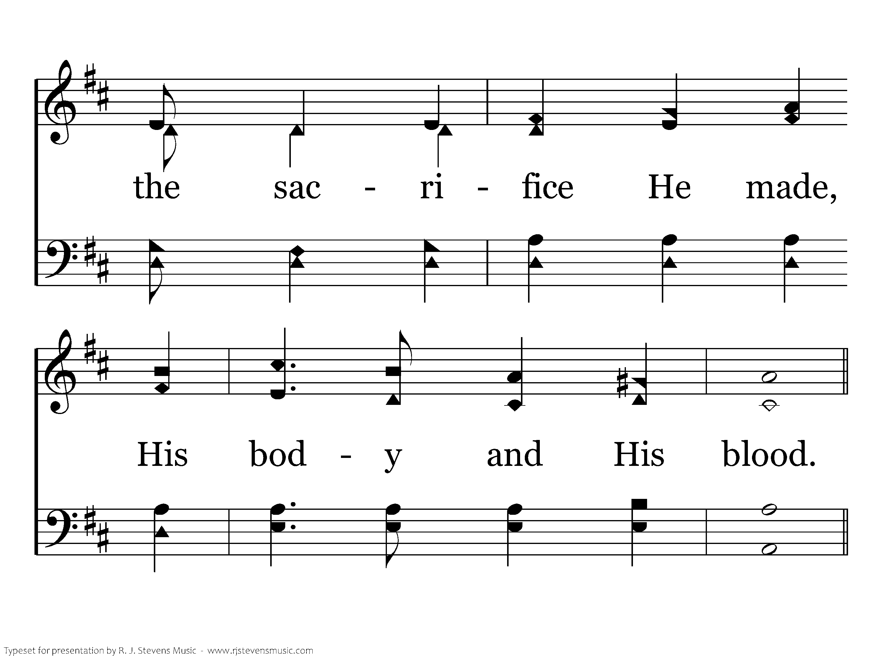 Precious Communion, The feast of our dear Lord, Shows forth the sacrifice He made, His body and His blood.