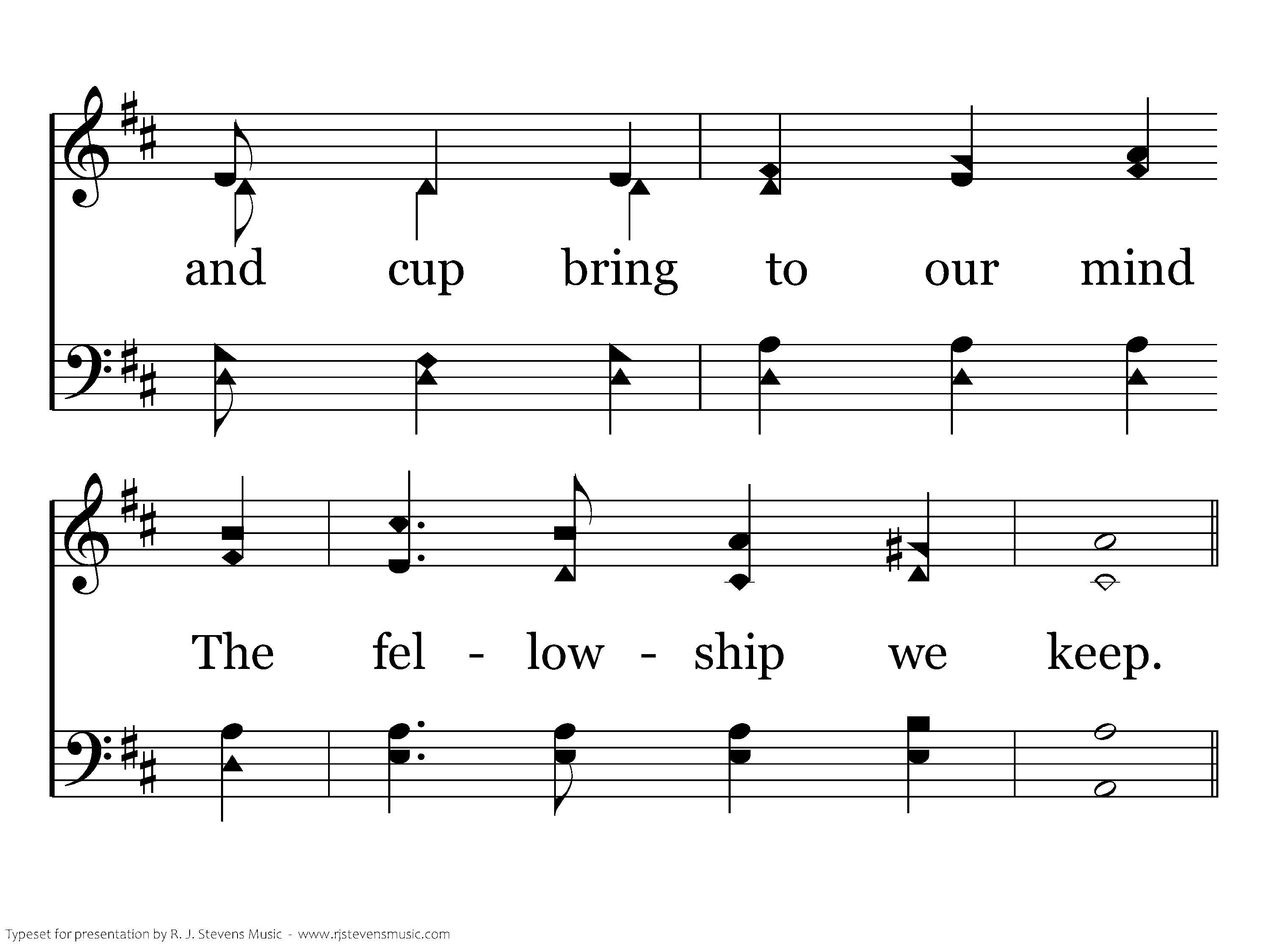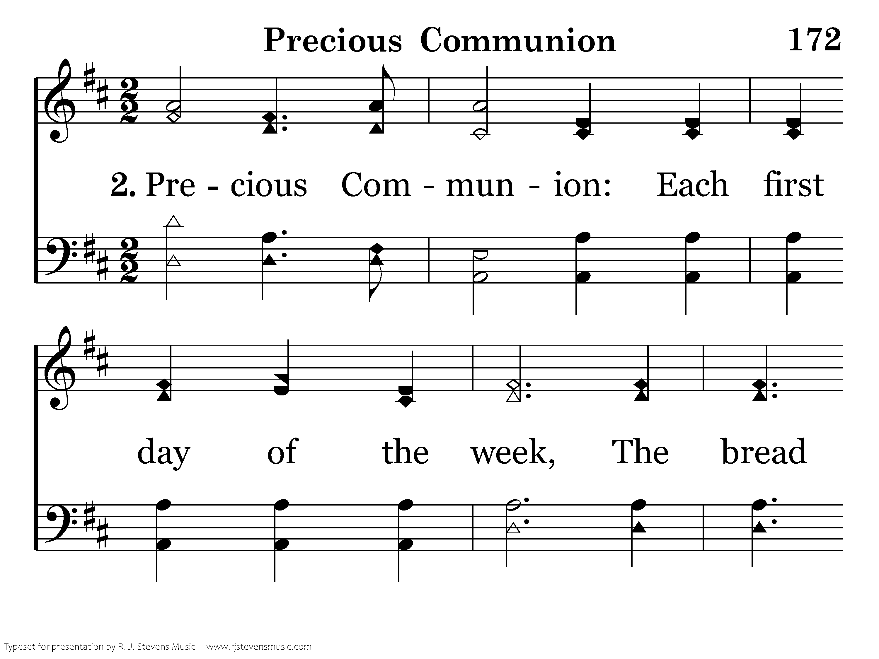 Precious Communion: Each first day of the week, The bread and cup bring to our mind The fellowship we keep.
