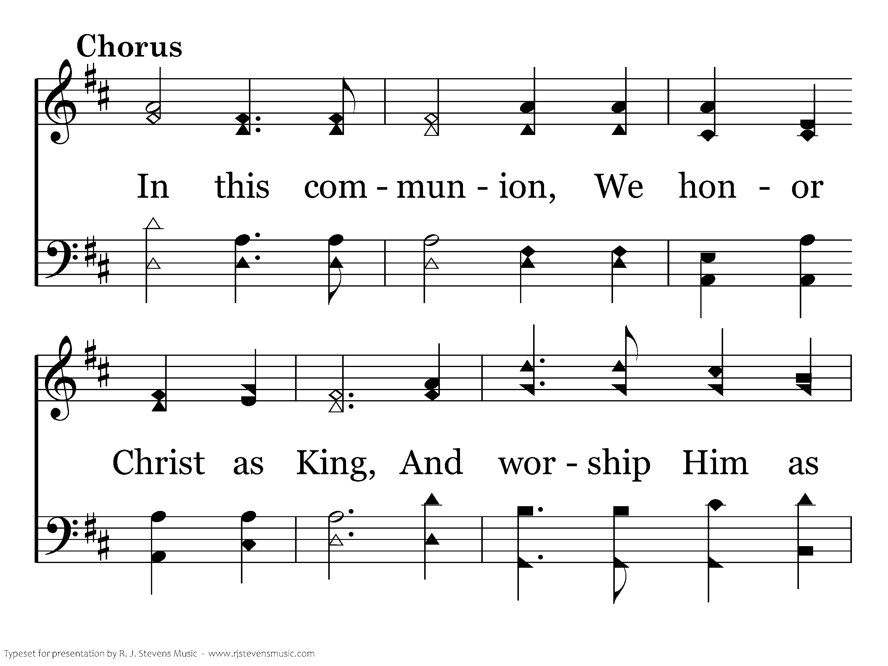 In this communion, We honor Christ as King, nd worship Him as Lord of lords until He comes again.