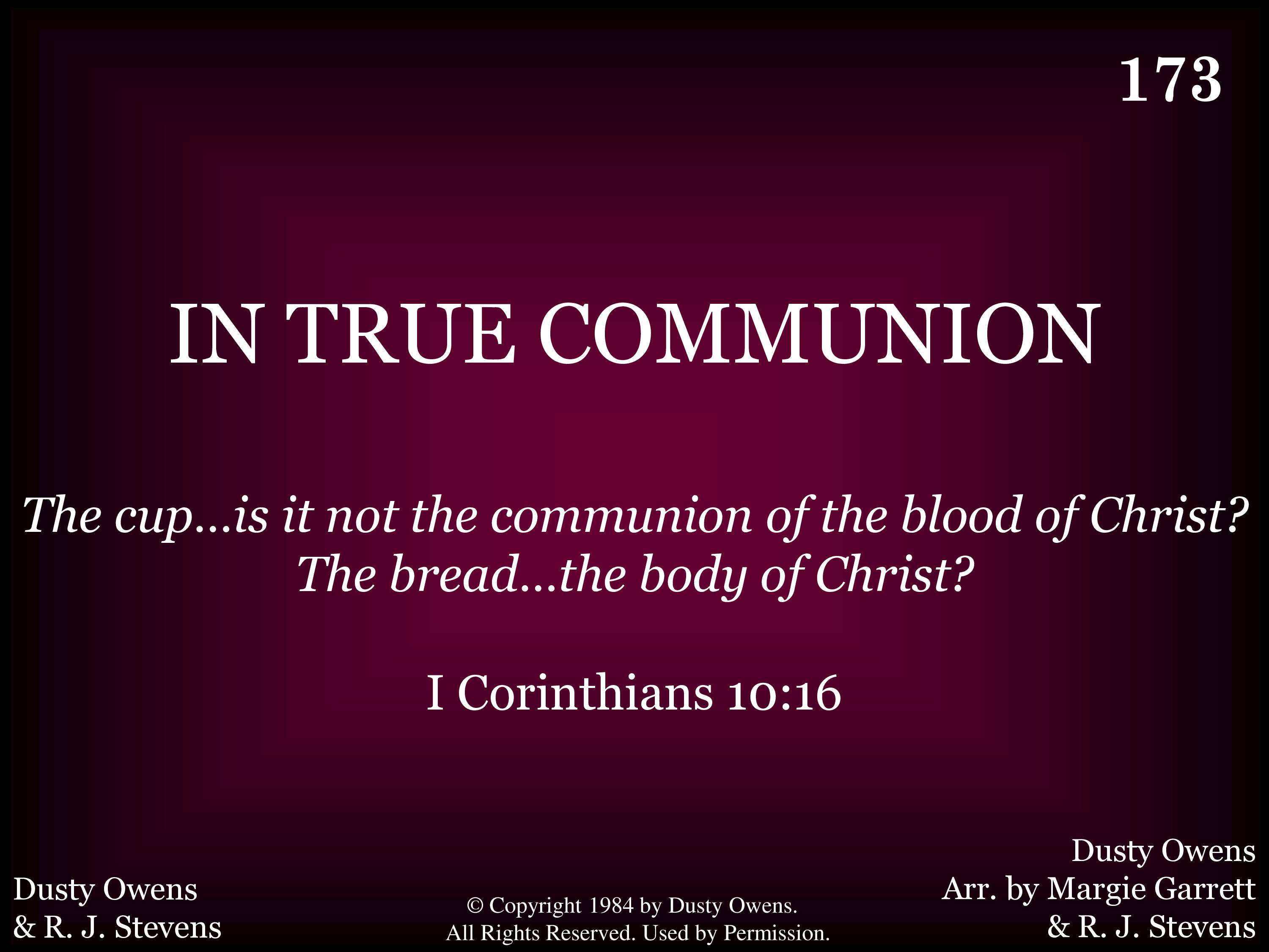 - © Copyright 1984 by Dusty Owens. All Rights Reserved. Used by Permission.