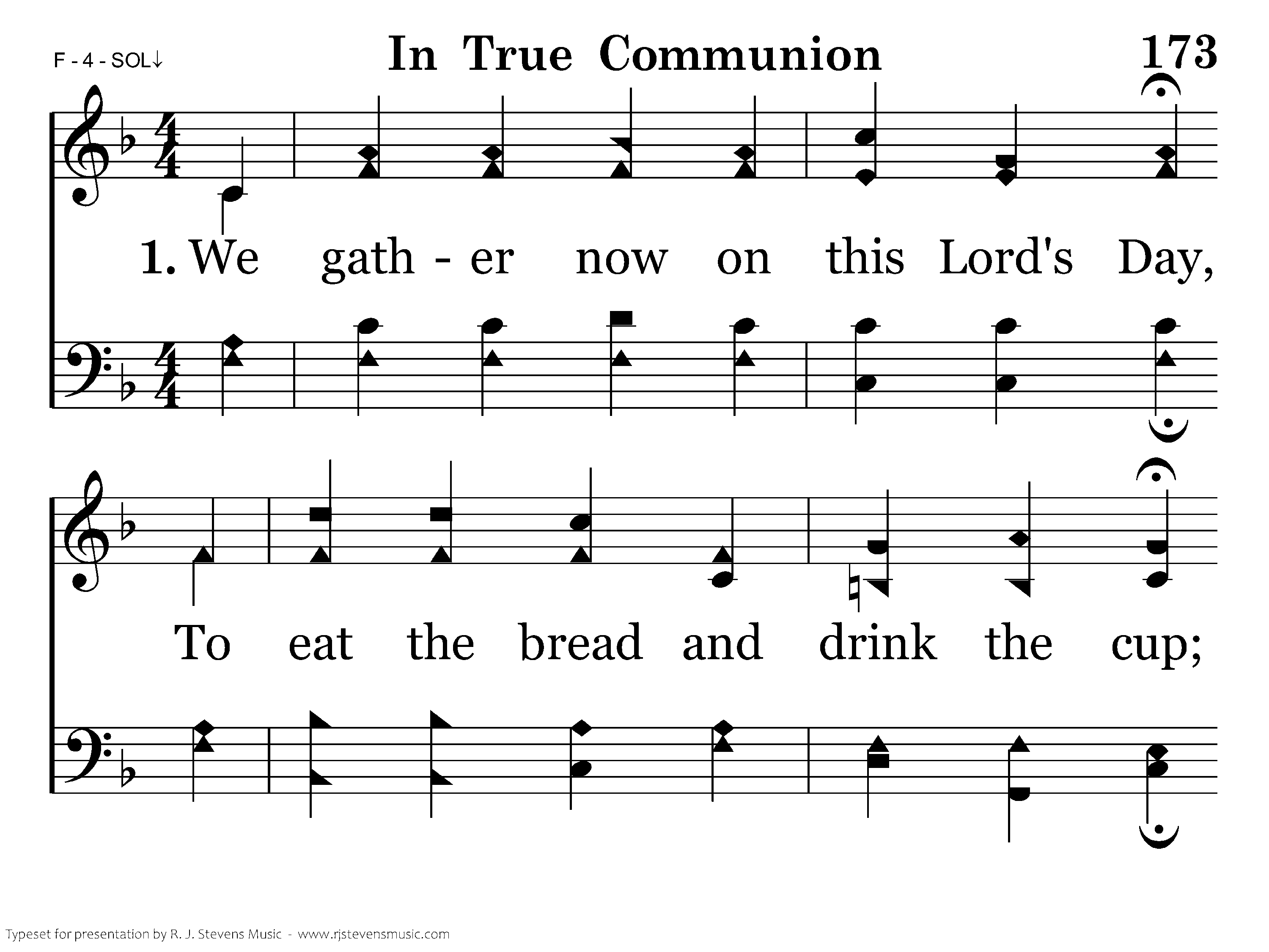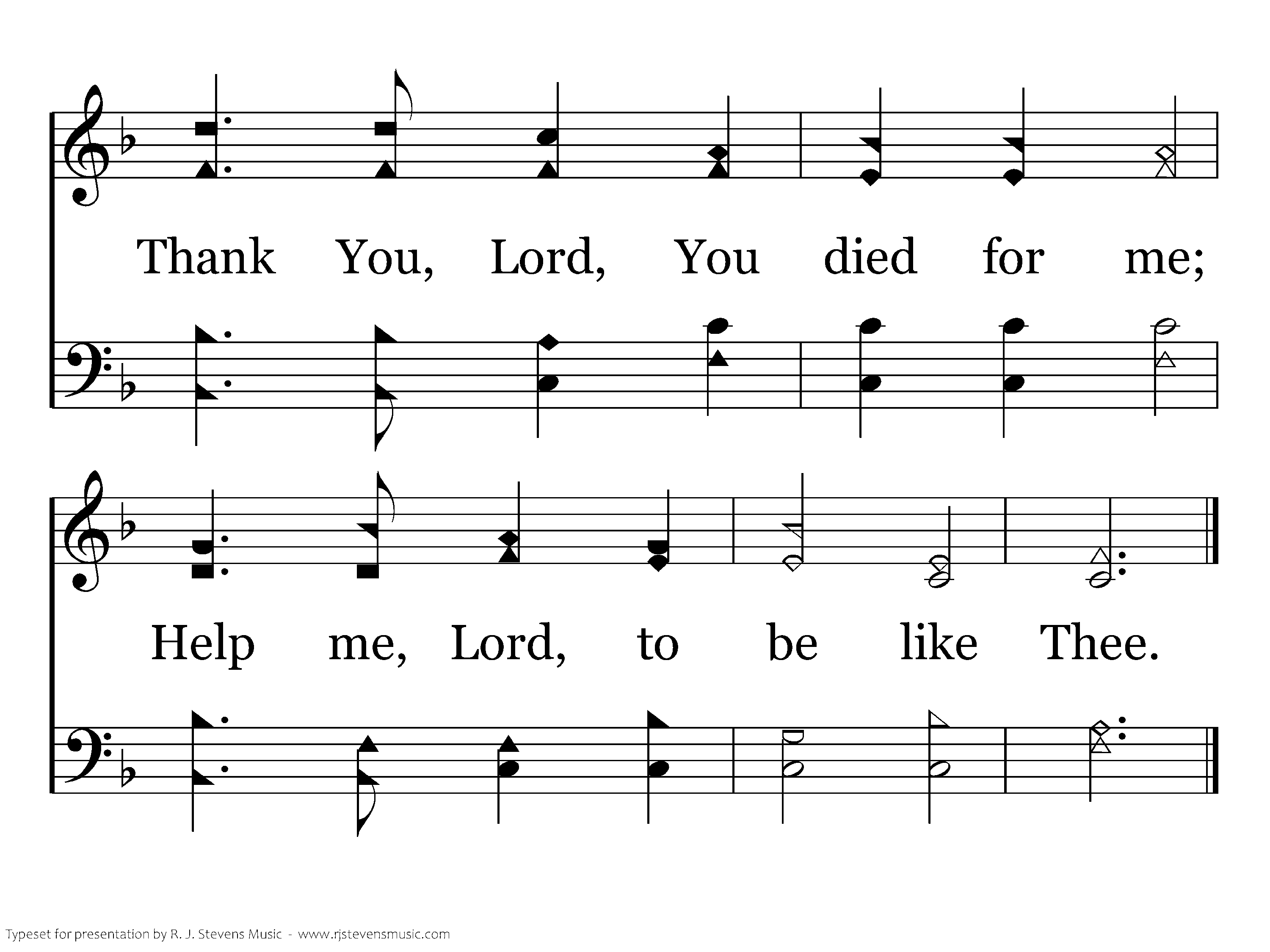 We gather now on this Lord's Day, To eat the bread and drink the cup; Remembering the life He gave, In true communion now we sup. Thank you, Lord, You died for me; Help me, Lord, to be like Thee.