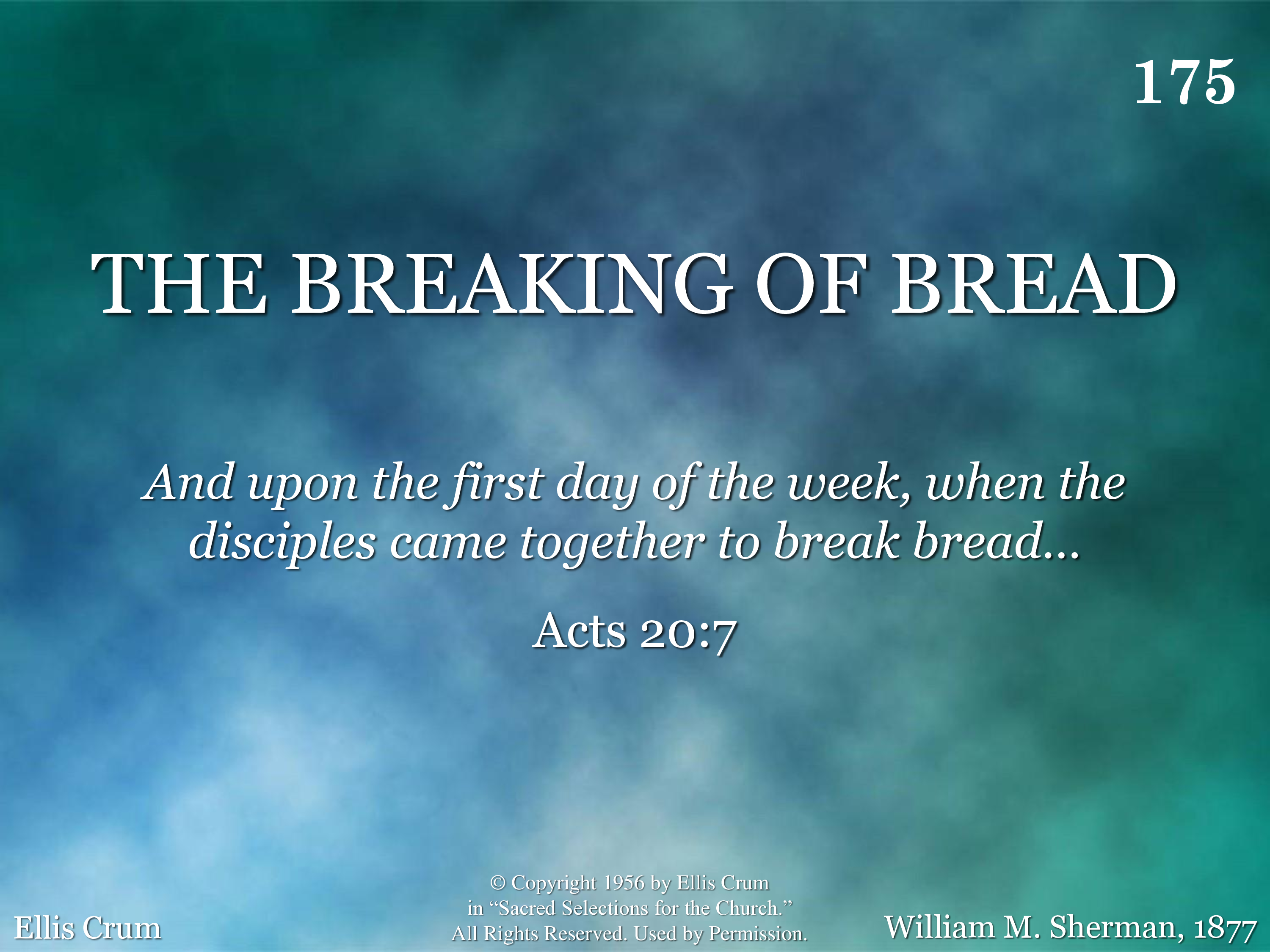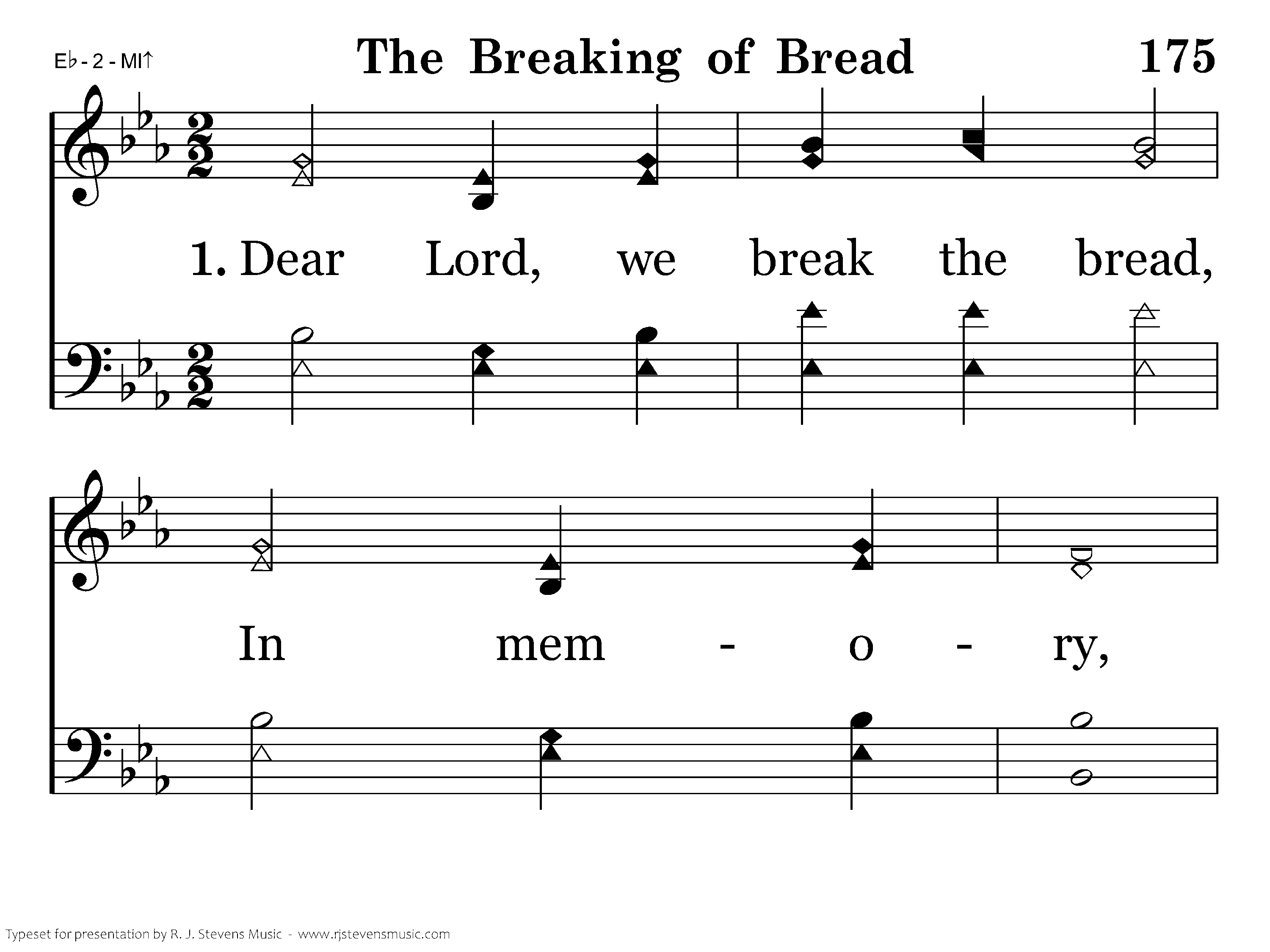 Dear Lord, we break the bread, In memory, Of that great sacrifice on Calvary; This we do each Lord's day As Christ has said, Bless all disciples now who break the bread.