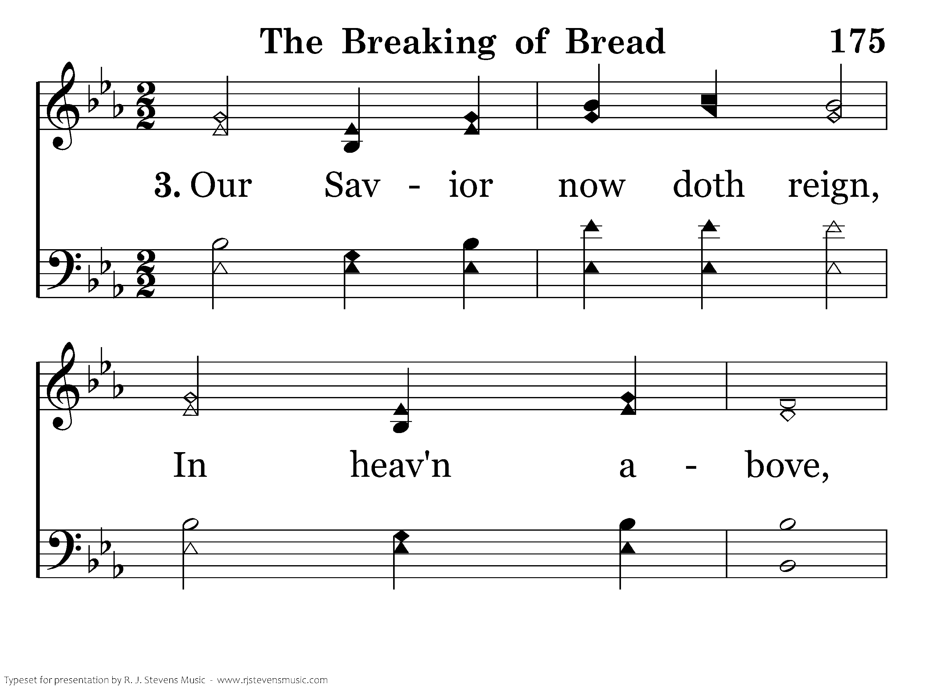 Our Savior now doth reign In heav'n above; Deaths power He overcame, such matchless love; To heav'n He did ascend, There He's enthroned; He is our dearest friend, For us atoned.