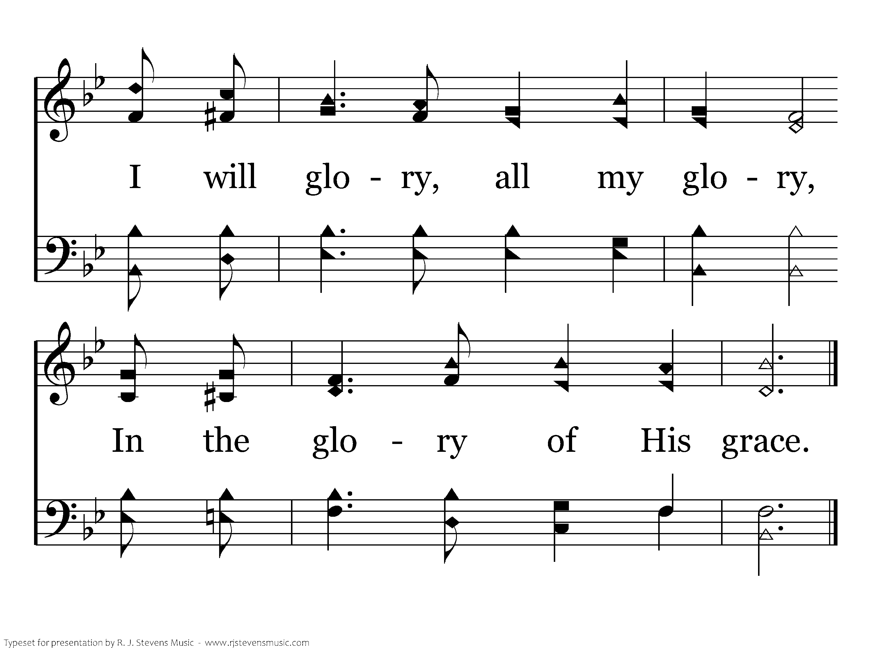 Precious blood of Jesus flowed there To redeem my soul from sin; Jesus laid down His own body, Then he took it up again. For it pleased the Lord to bruise Him So that He could take my place; I will glory, all my glory, In the glory of His grace.