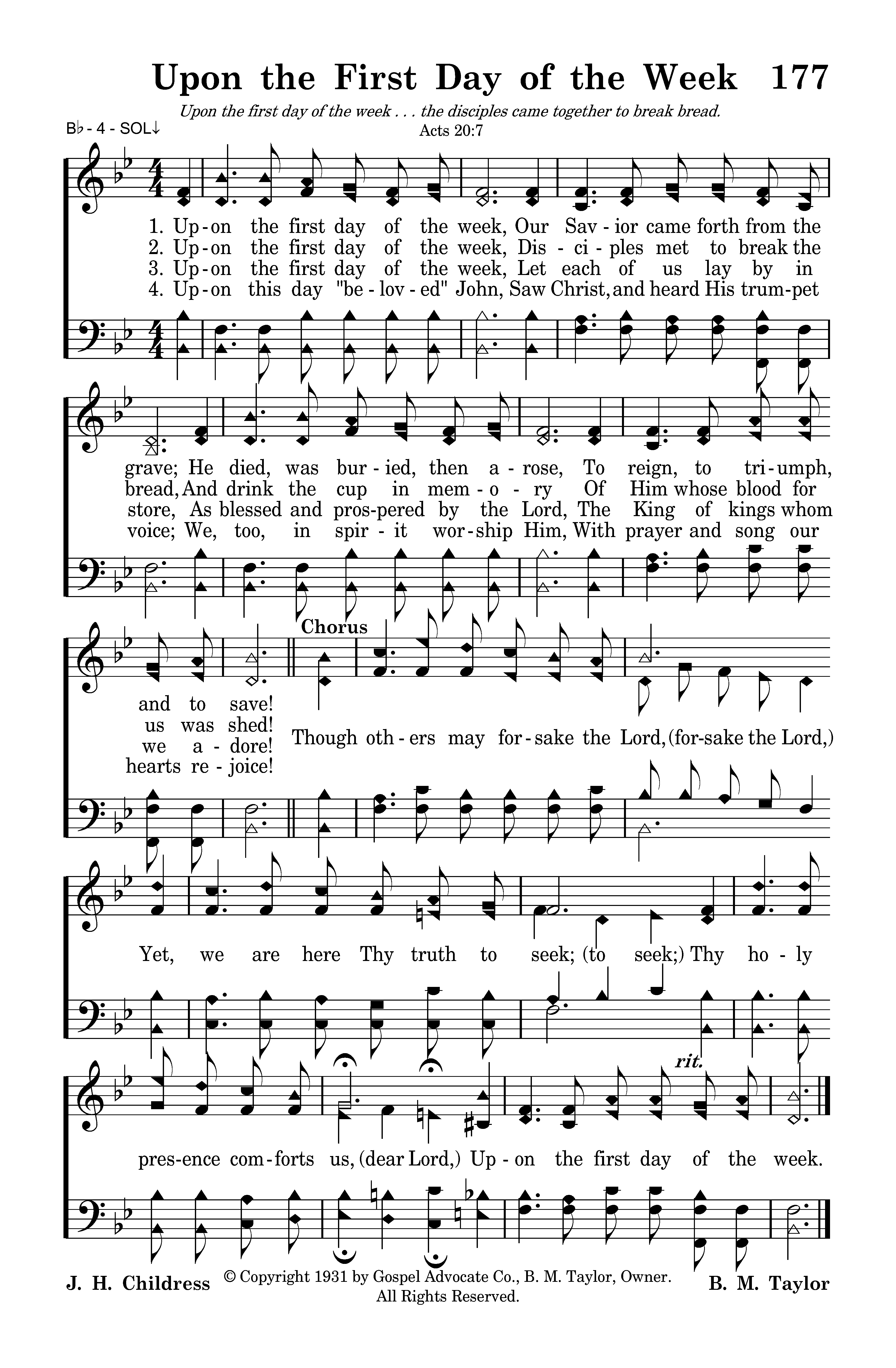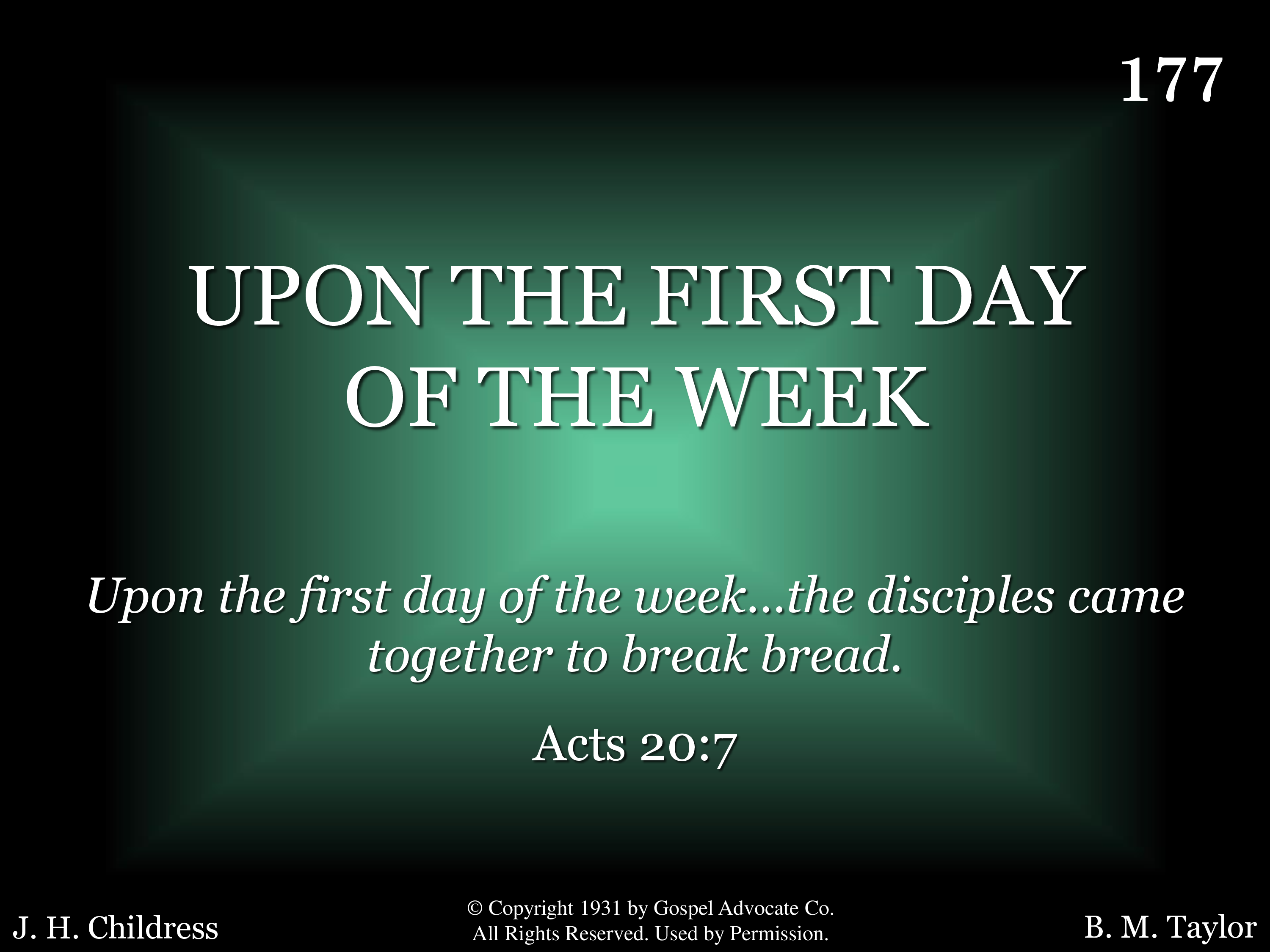 - Copyright © 1931 by Gospel Advocate Co. B. M. Taylor, Owner. (Admin. by Gospel Advocate Co.) All Rights Reserved. Used by Permission.
