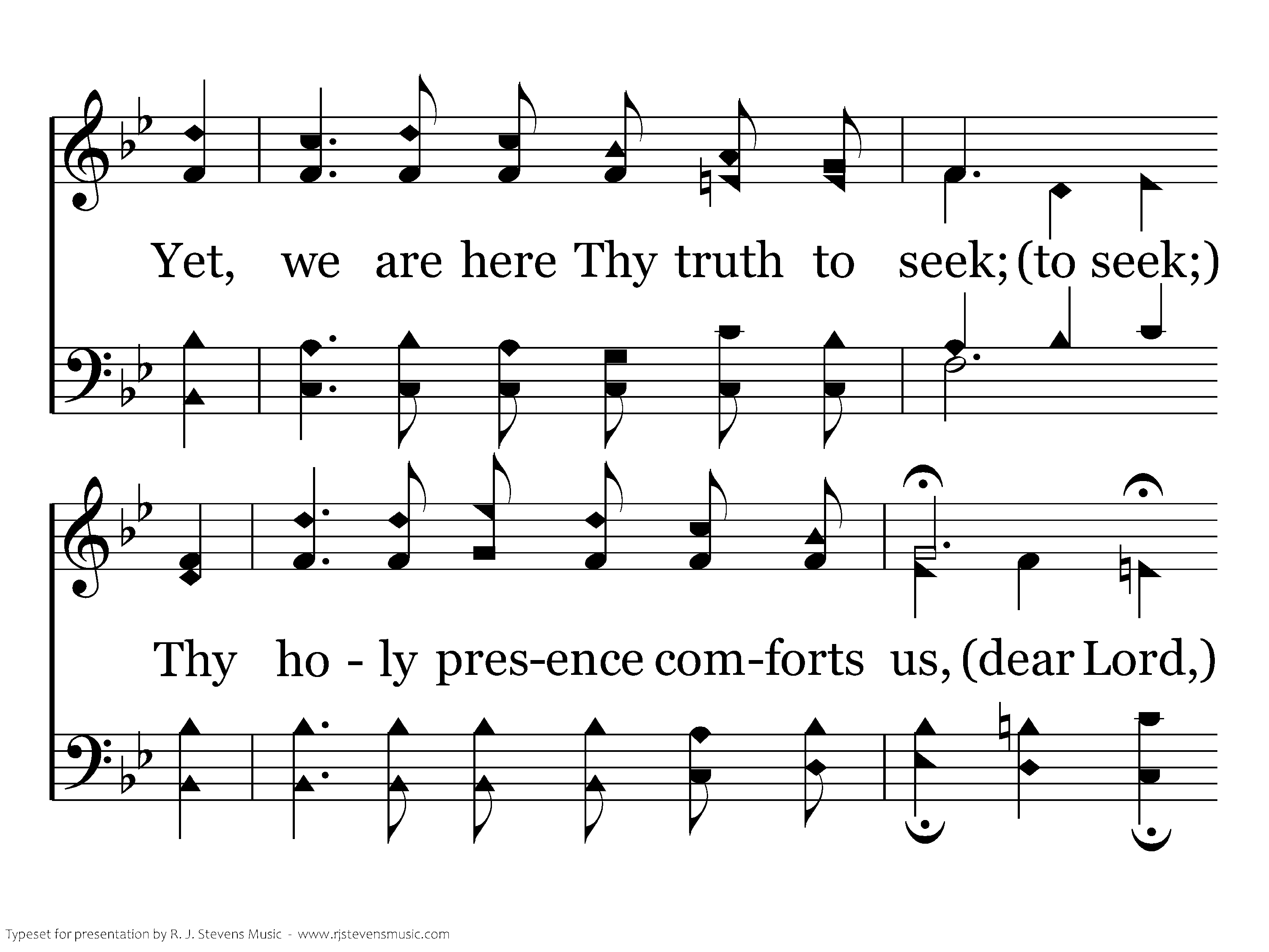 Though others may forsake the Lord, Yet we are here Thy truth to seek; Thy holy presence comforts us, Upon the first day of the week.