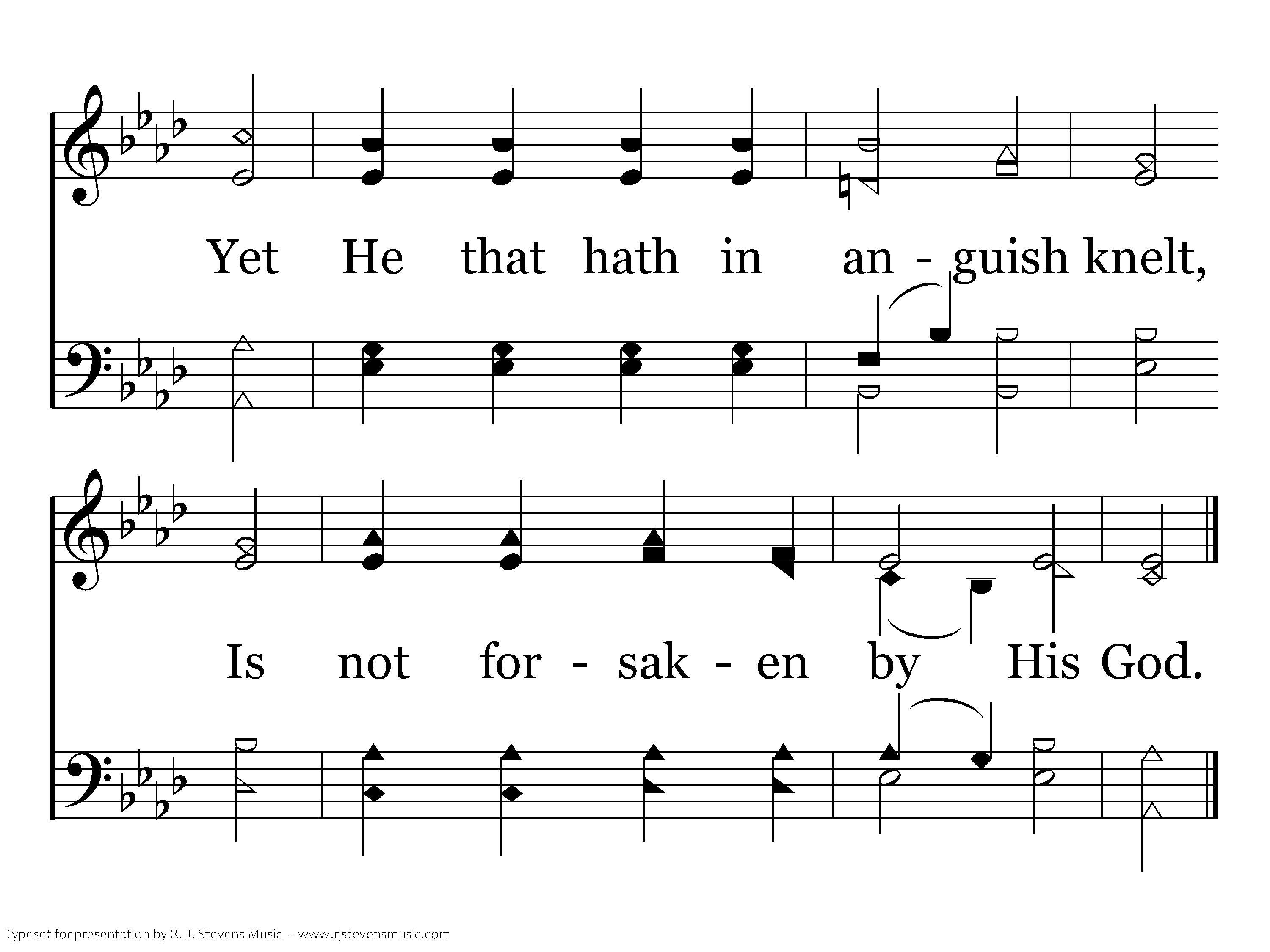 Tis midnight and for others' guilt, The Man of Sorrows weeps in blood; Yet He that hath in anguish knelt Is not forsaken by His God.