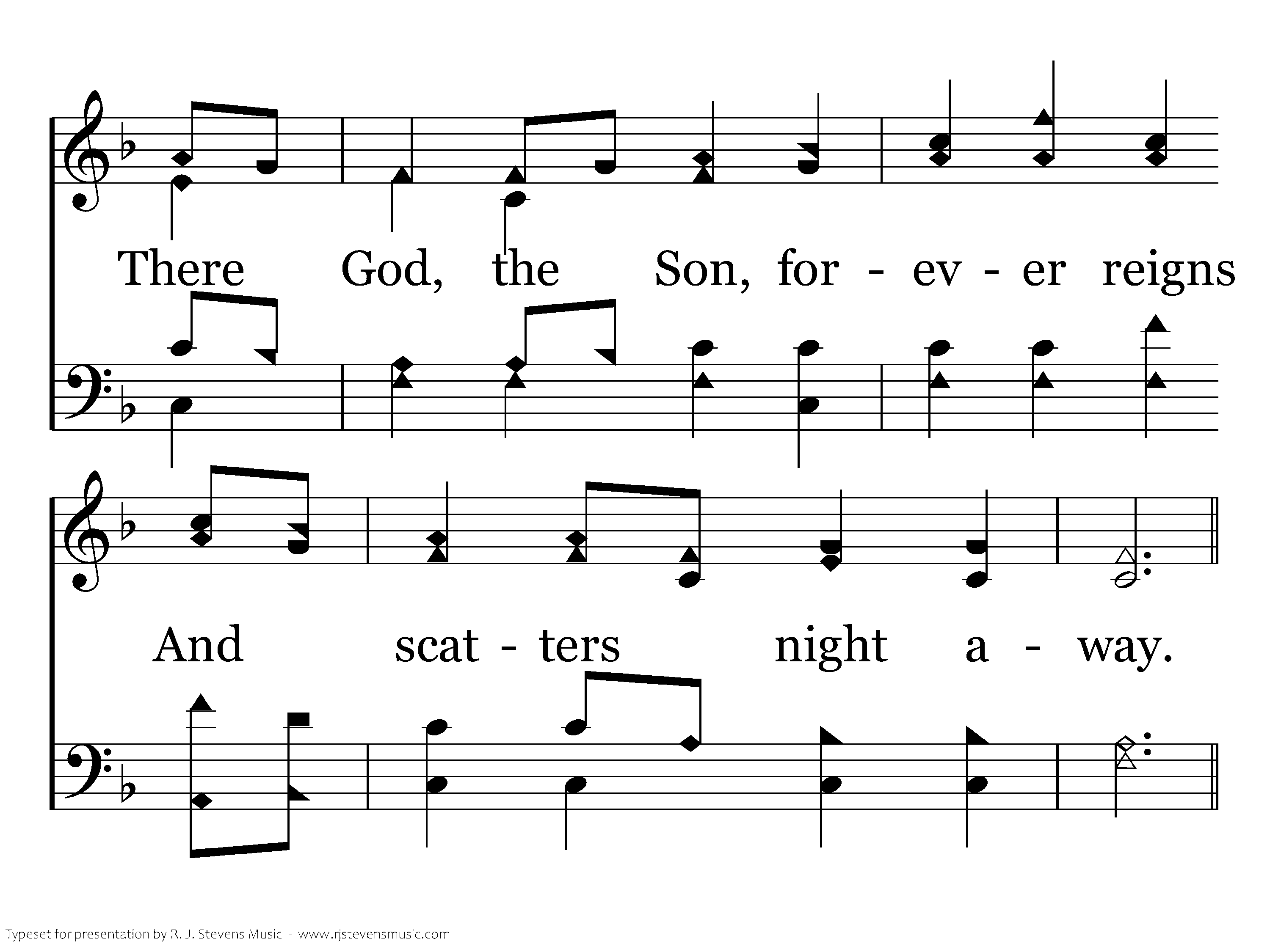 O'er all those wide extended plains, shines one eternal day; There God, the Son, forever reigns And scatters night away.