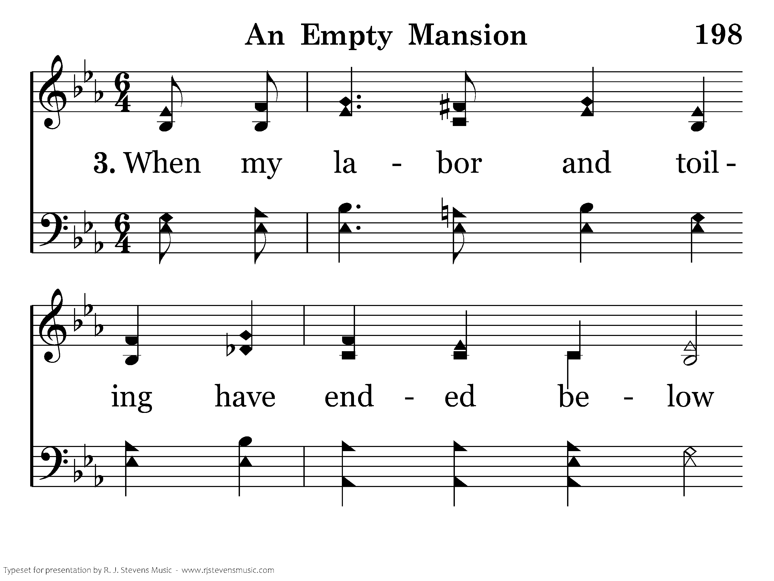 There's a mansion now empty, just waiting for me, At the end of life's troublesome way, And I know the the savior will welcome me there Near the door of that mansion some day.