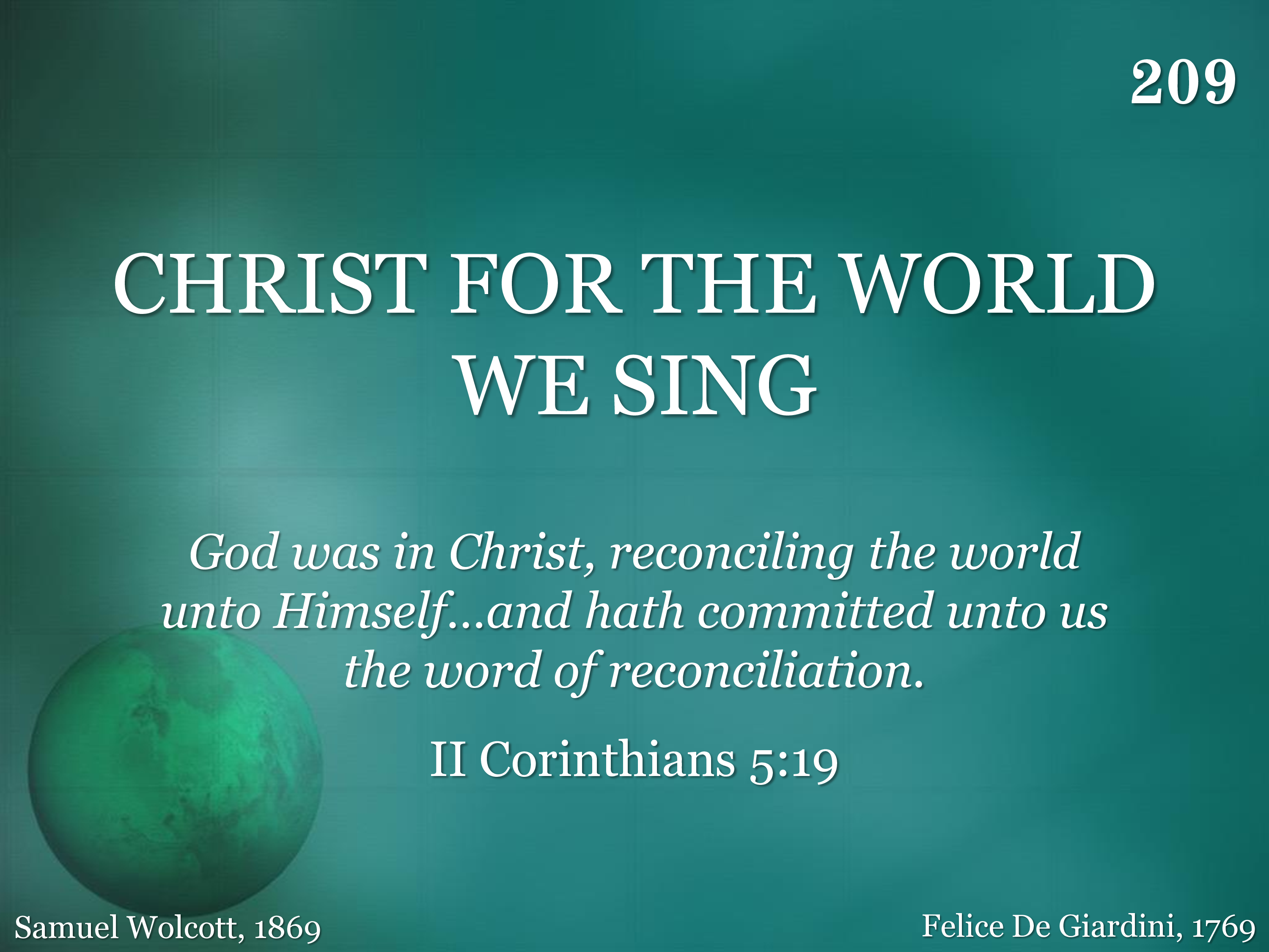 | Title | Christ for the World We Sing |