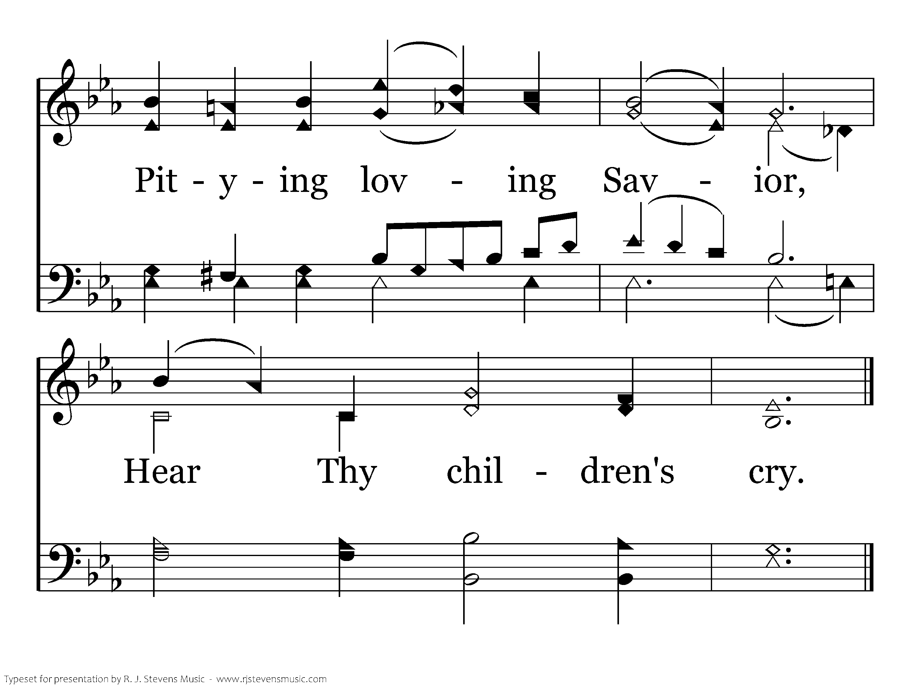 Jesus, meek and gentle, Son of God most high, Pitying, loving savior, Hear Thy children's cry.