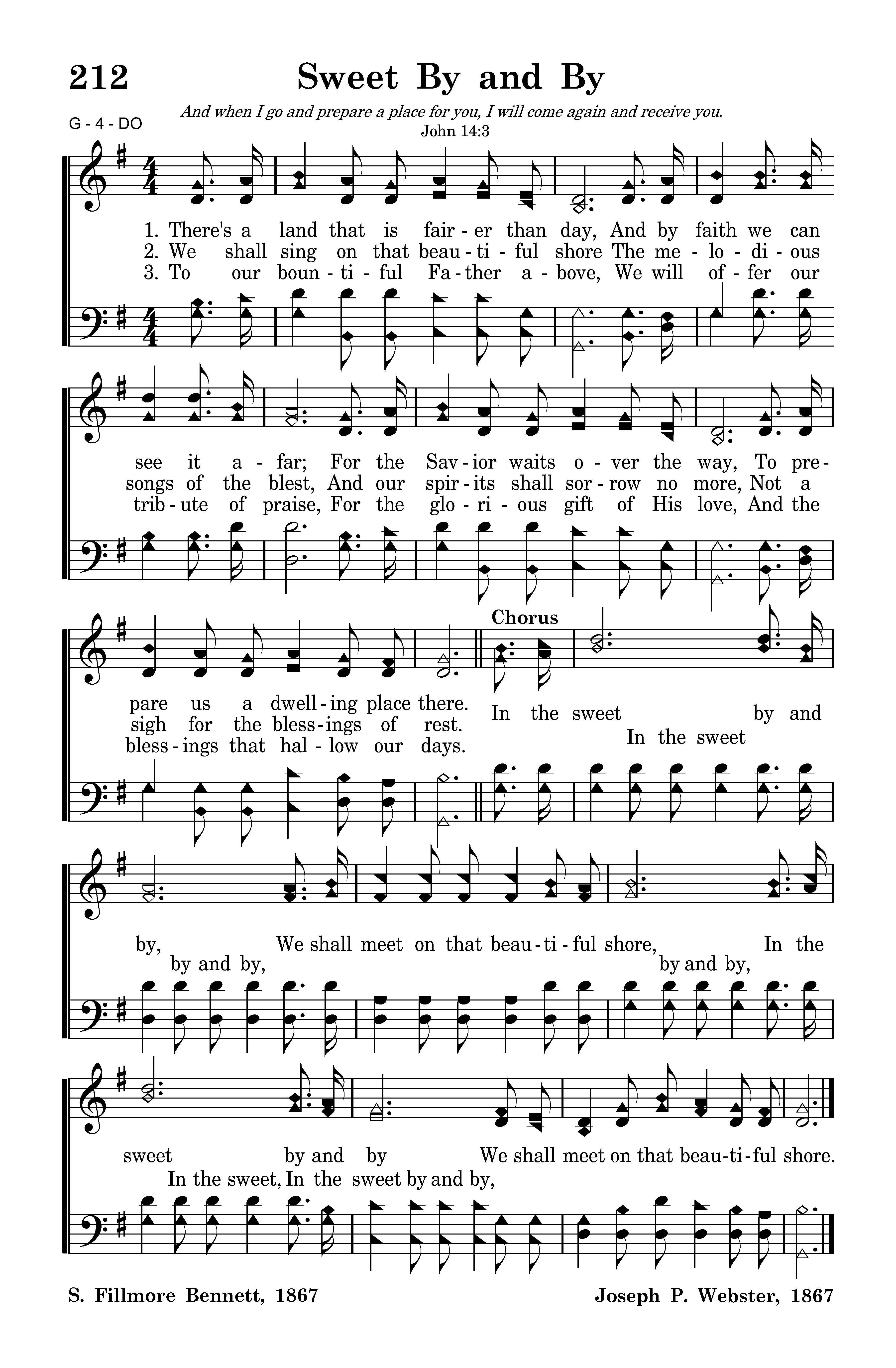 In the sweet by and by, We shall meet on that beautiful shore, In the sweet by and by We shall meet on that beatiful shore.