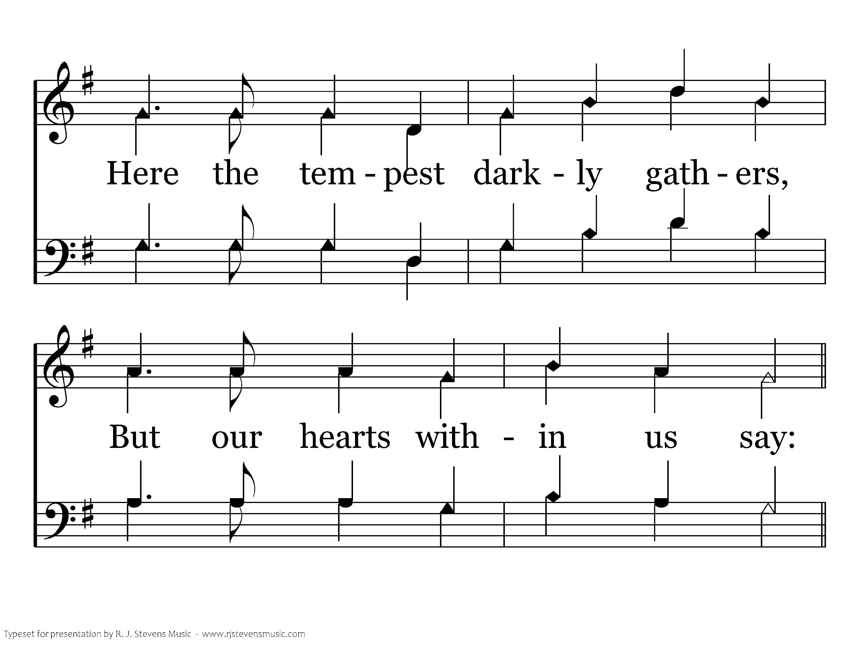 Here our feet are often weary on the hills that throng our way; here the tempest darkly gathers, but our hearts within us say: