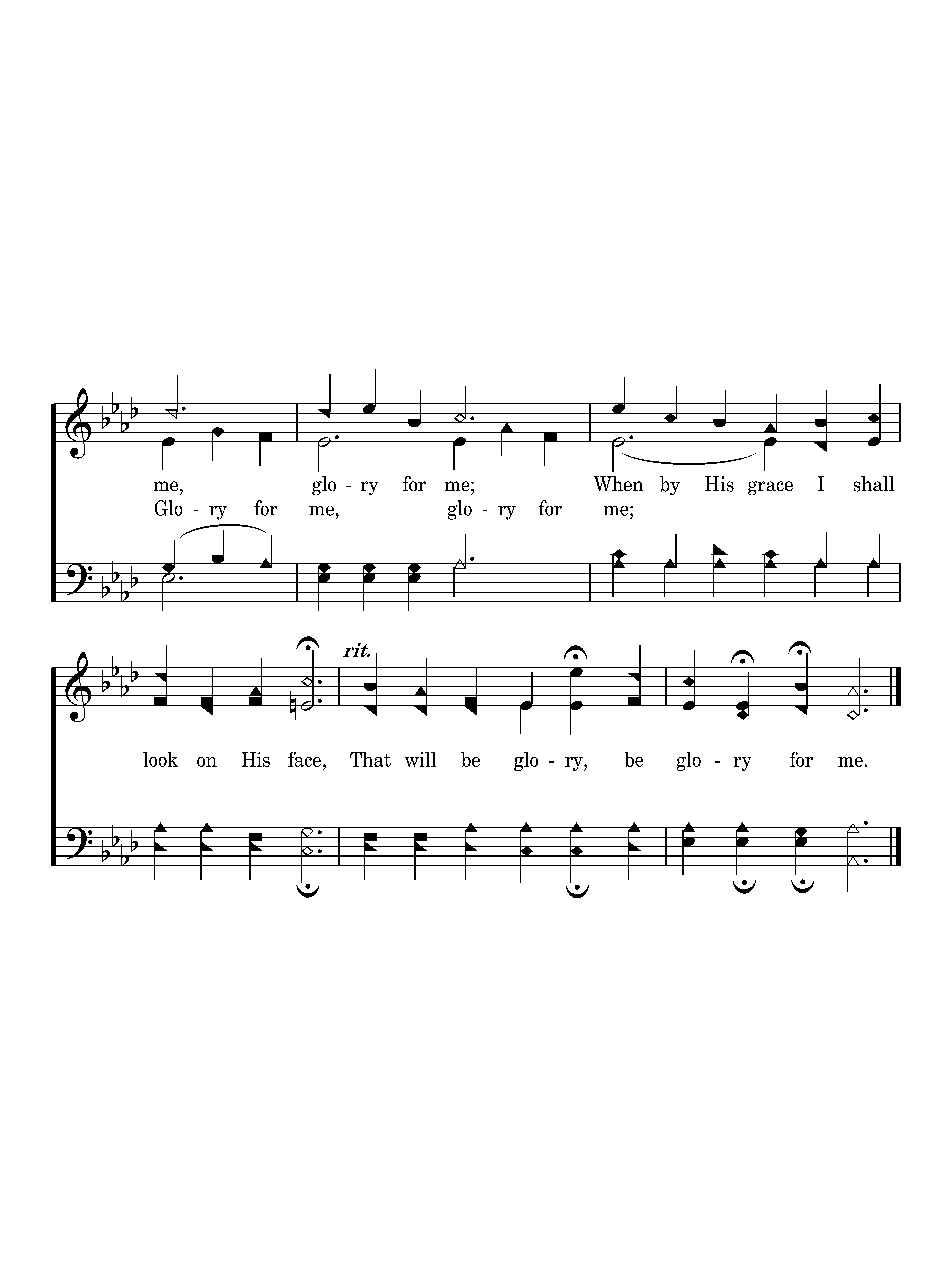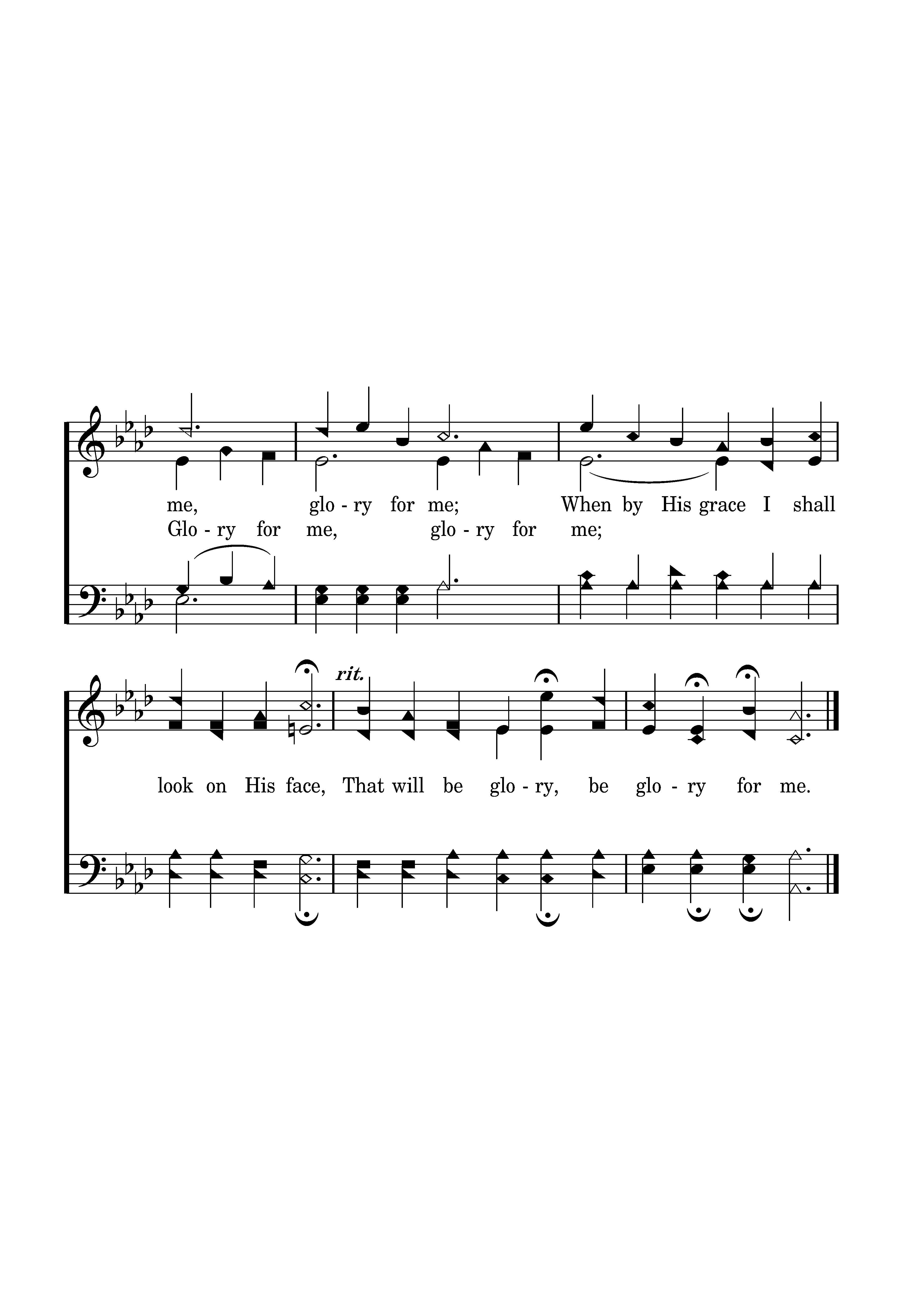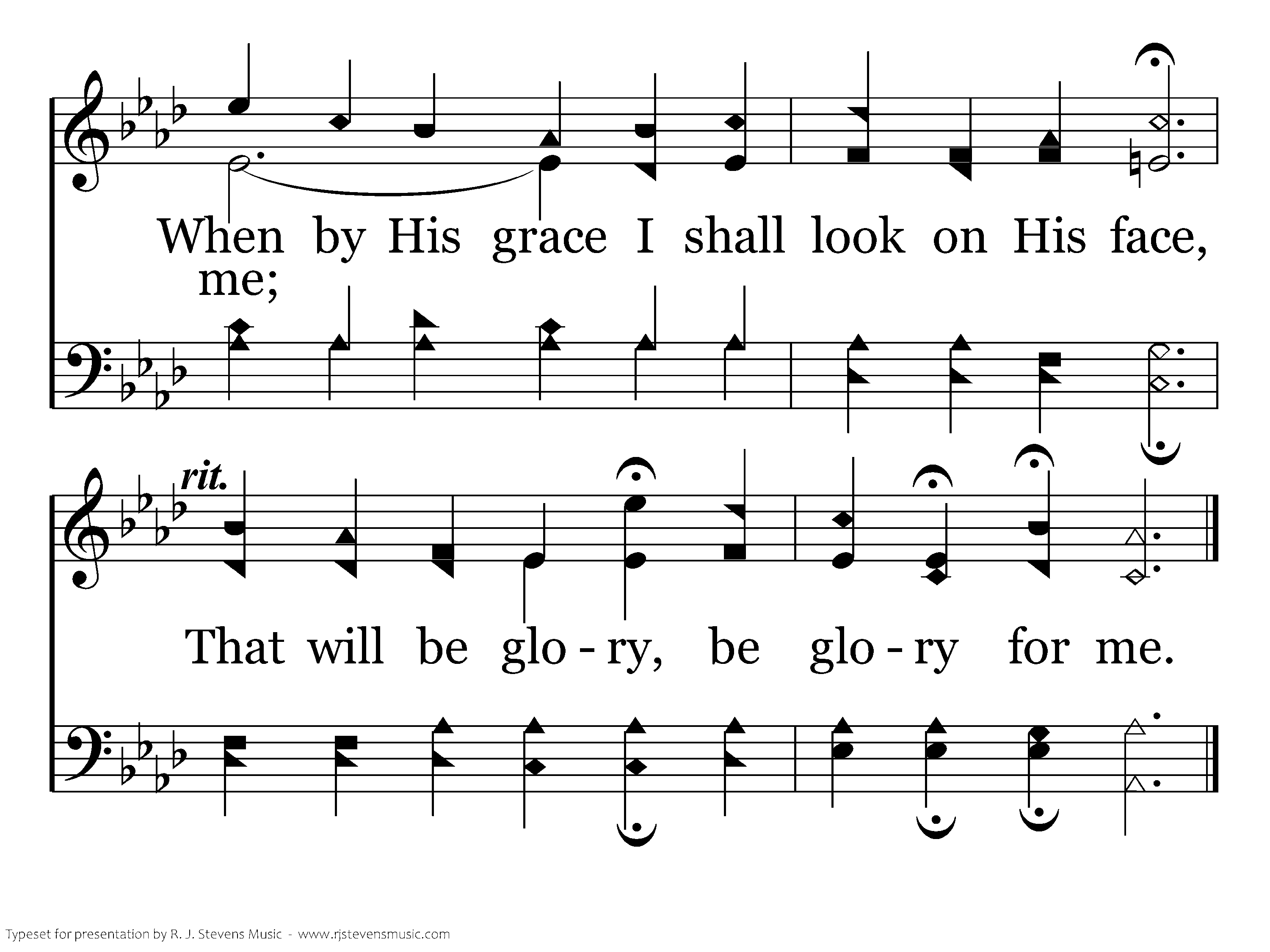 O that will be glory for me, Glory for me, glory for me, When by his grace I shall look on his face, That will be glory, be glory for me.