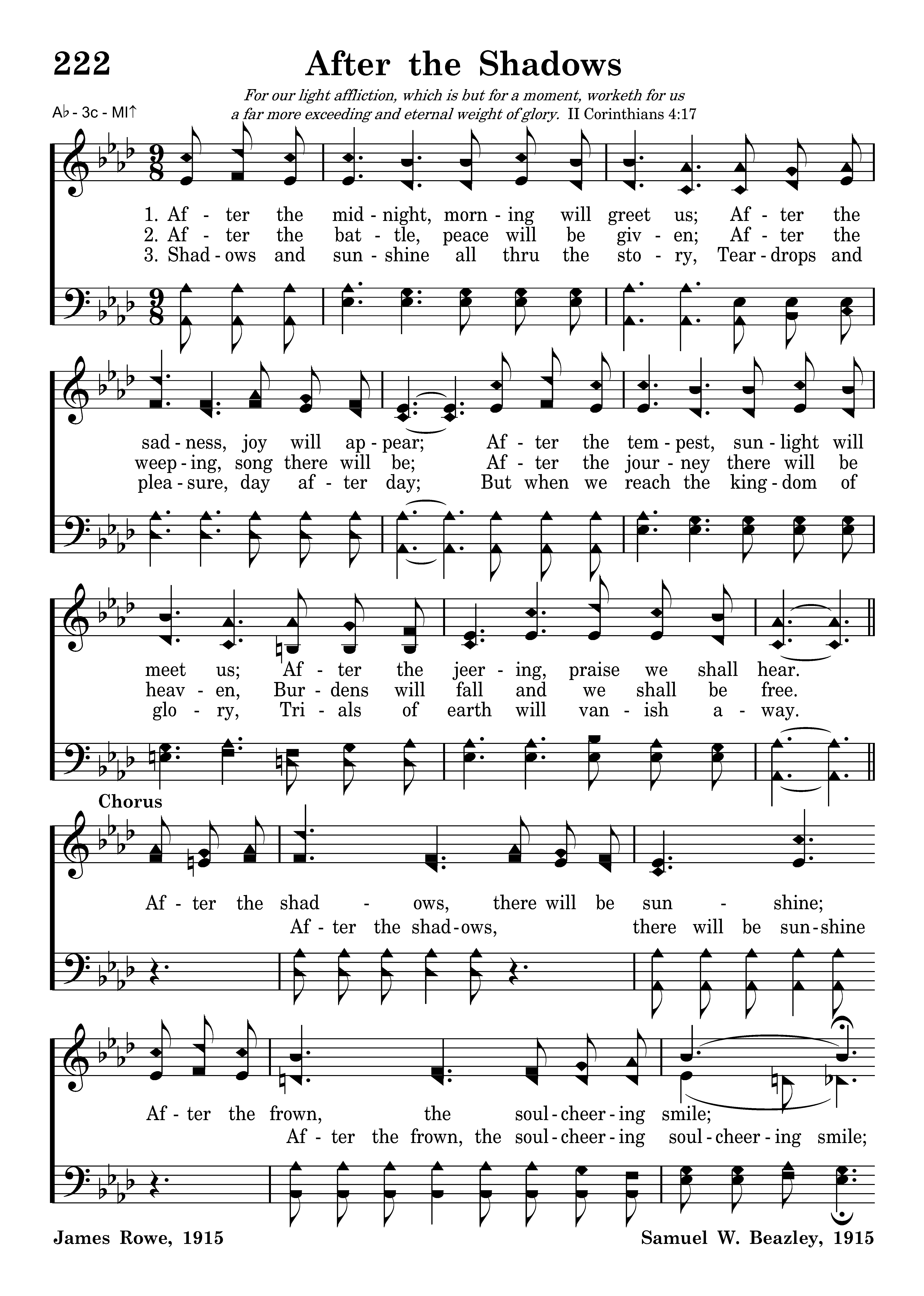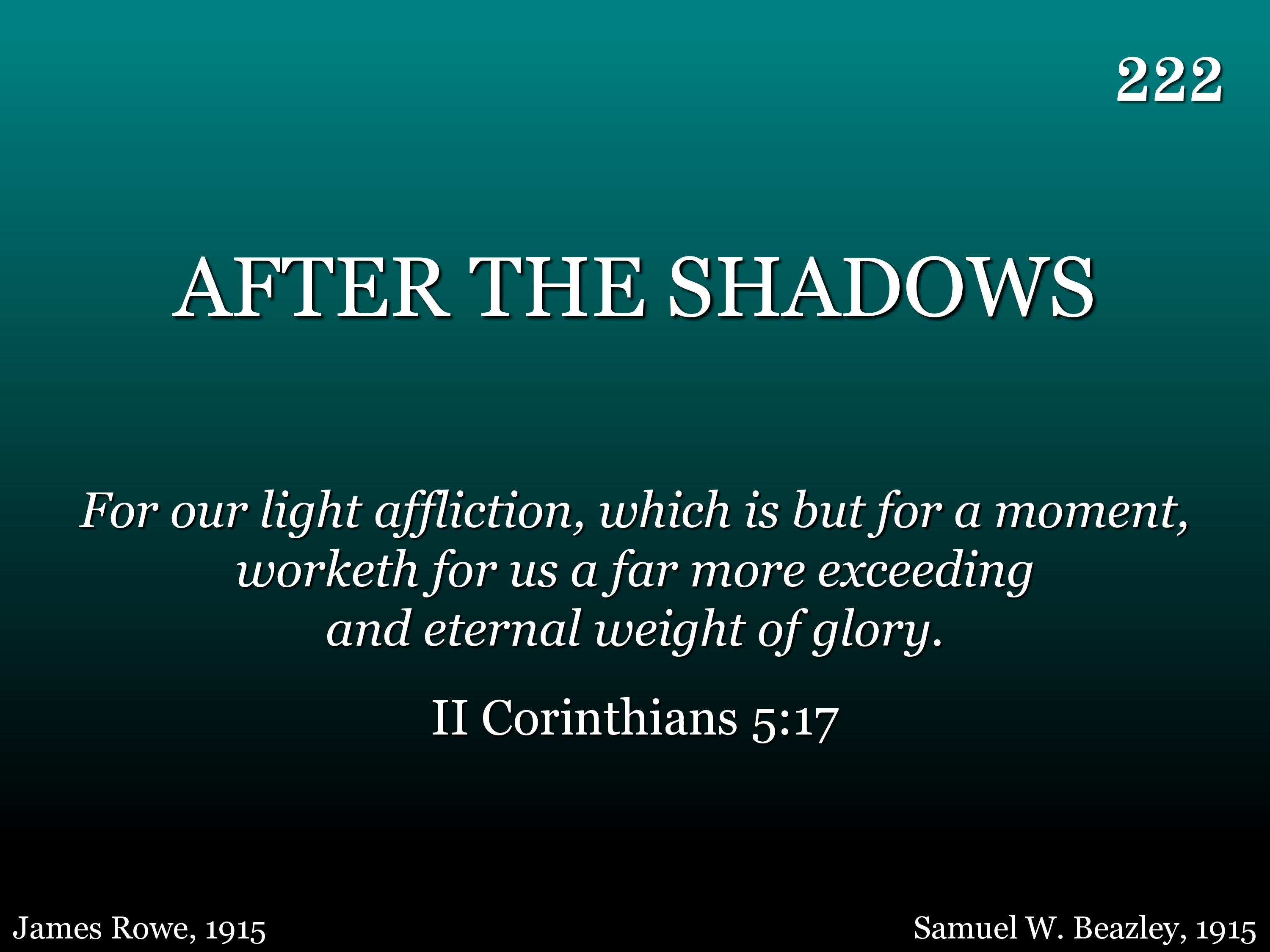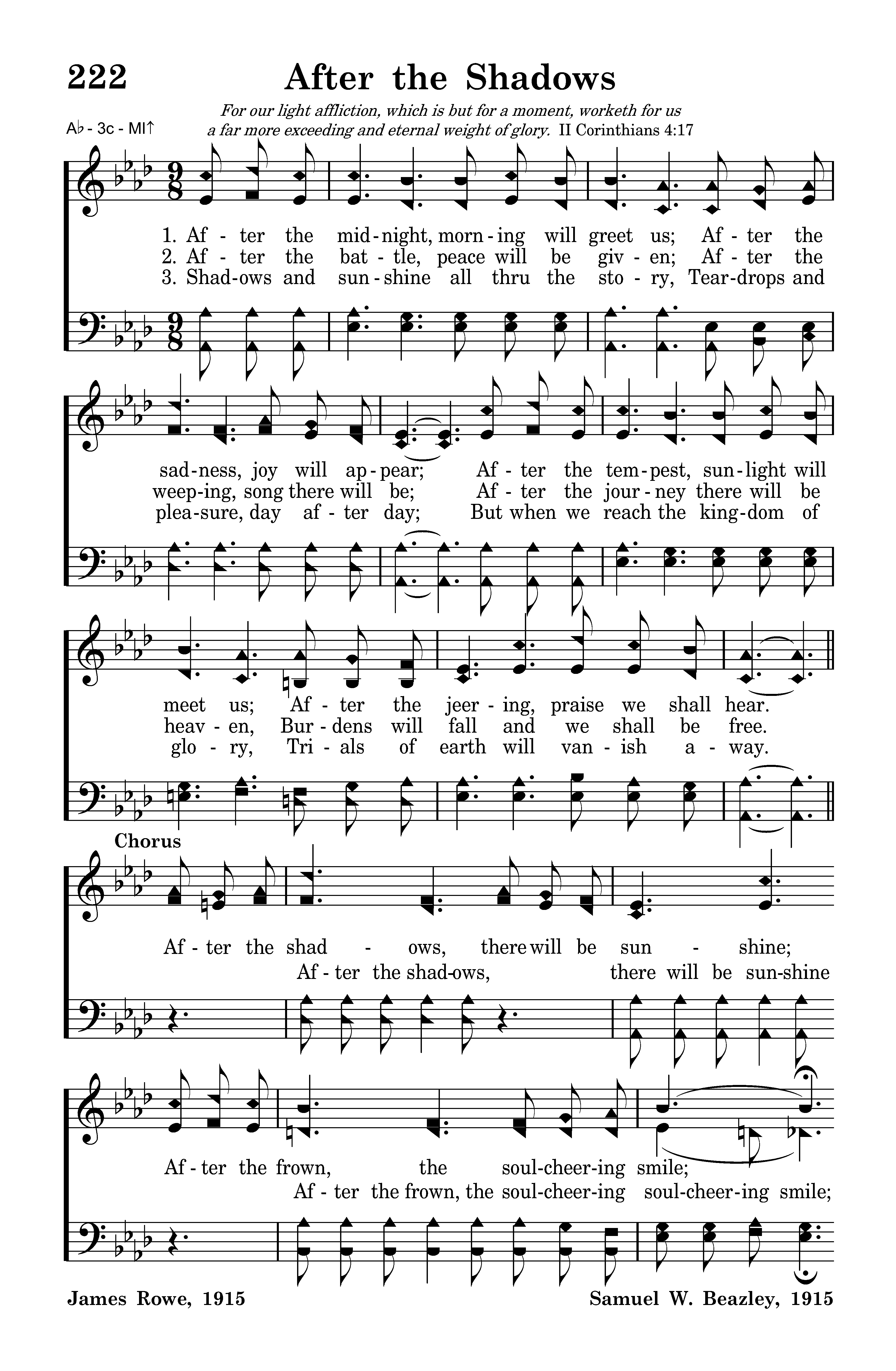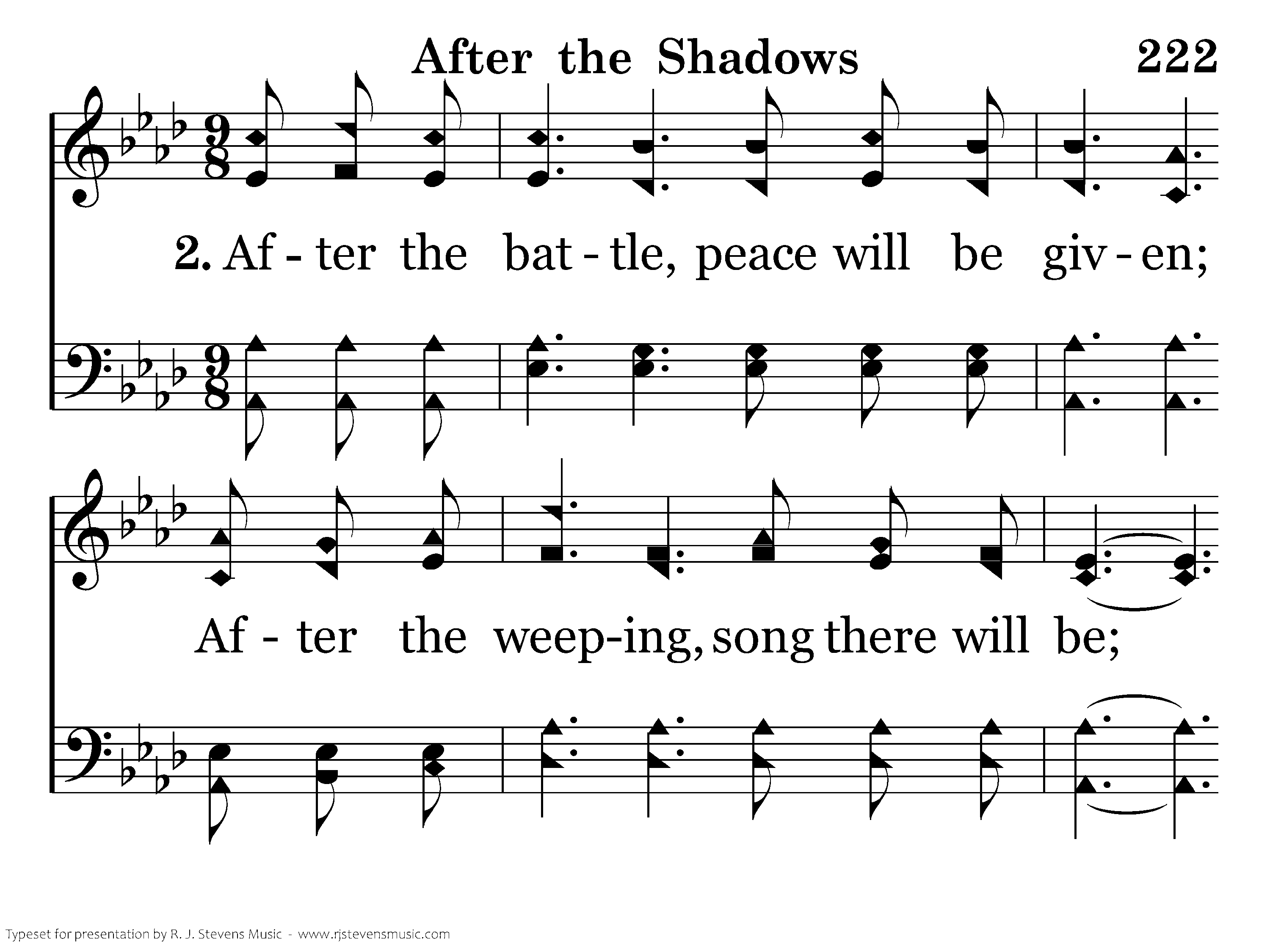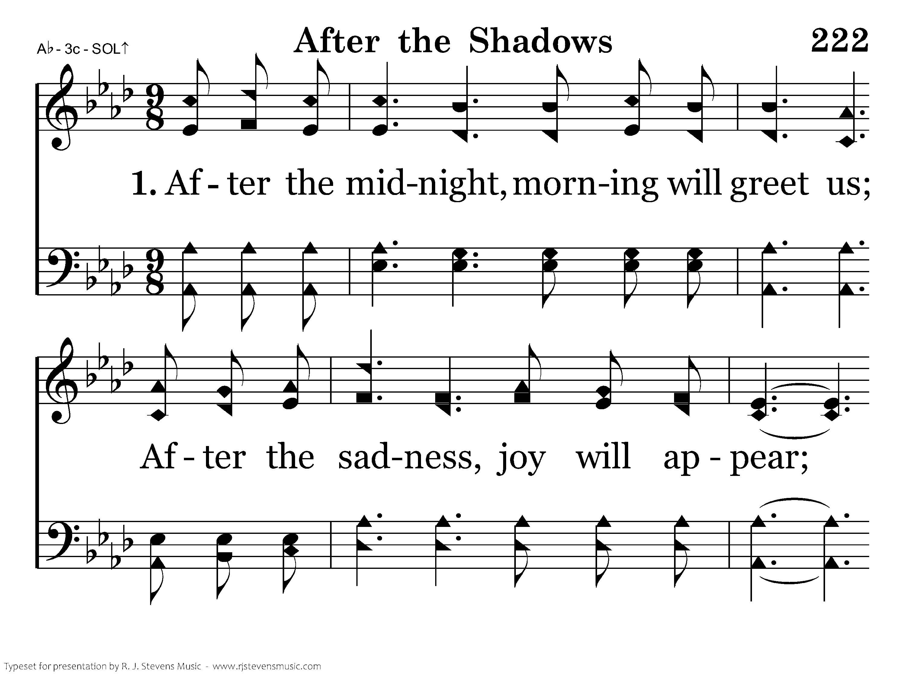 After the midnight, morning will greet us; After the sadness joy will appear; After the tempest, sunlight will meet us; After the jeering, praise we shall hear.