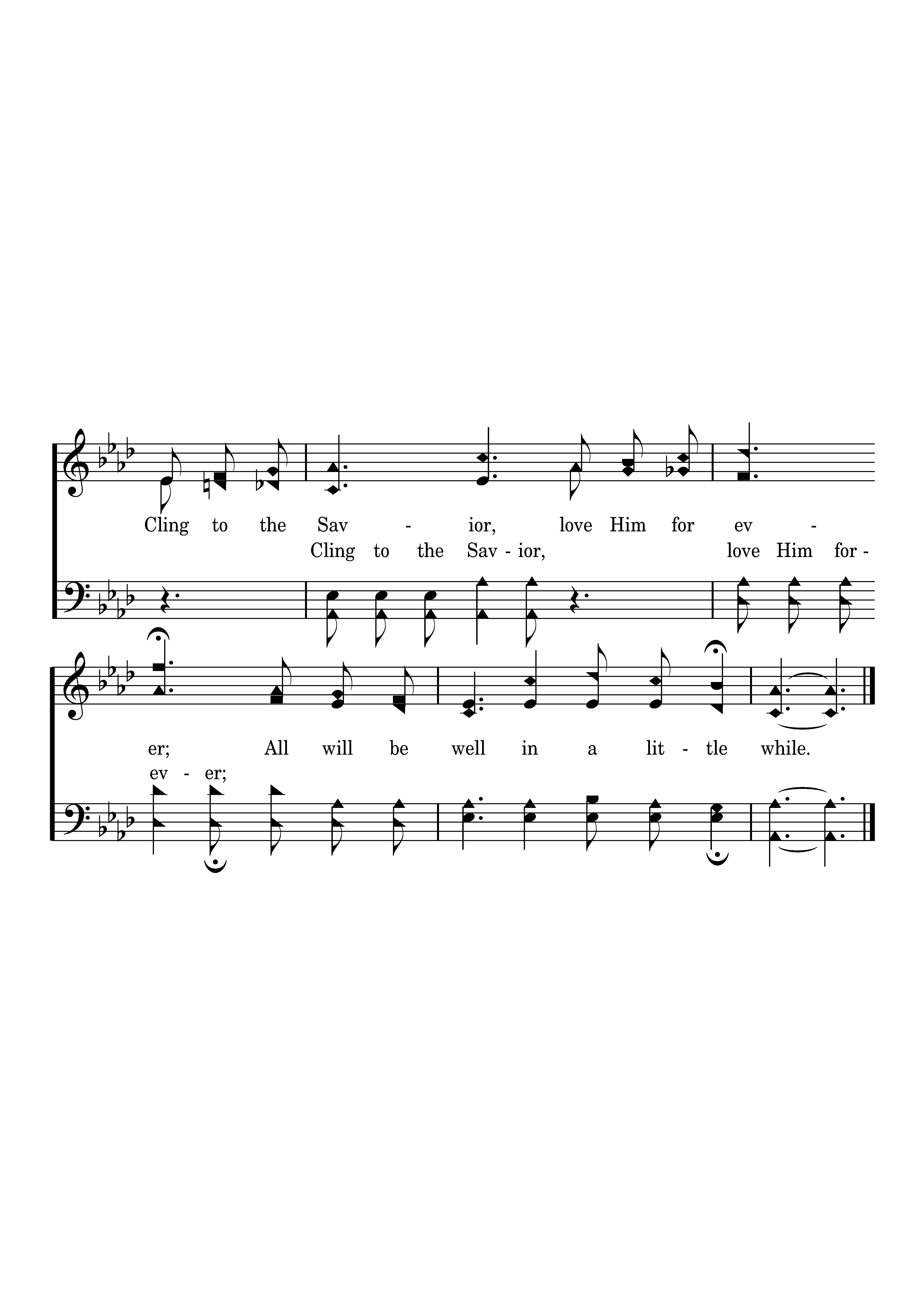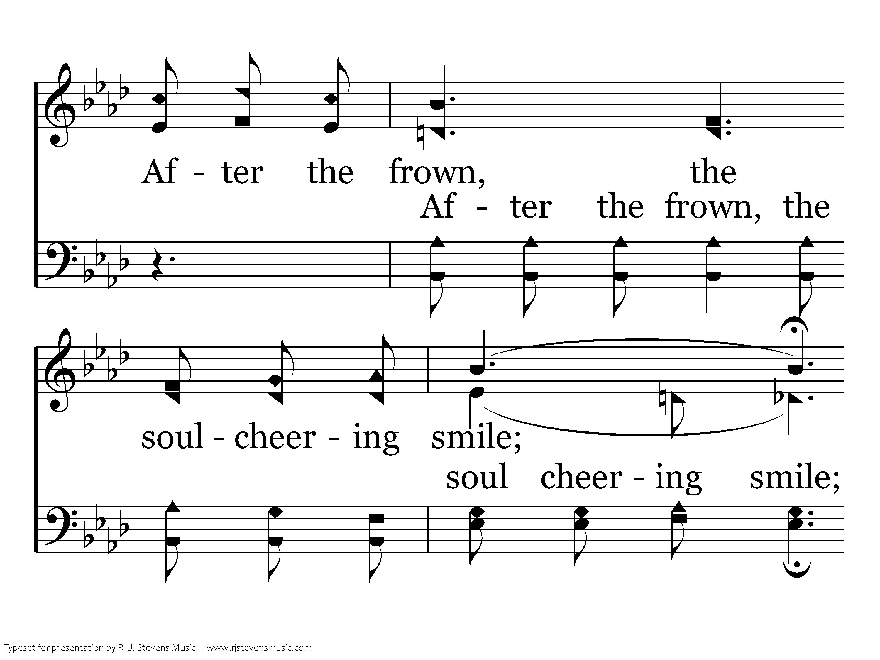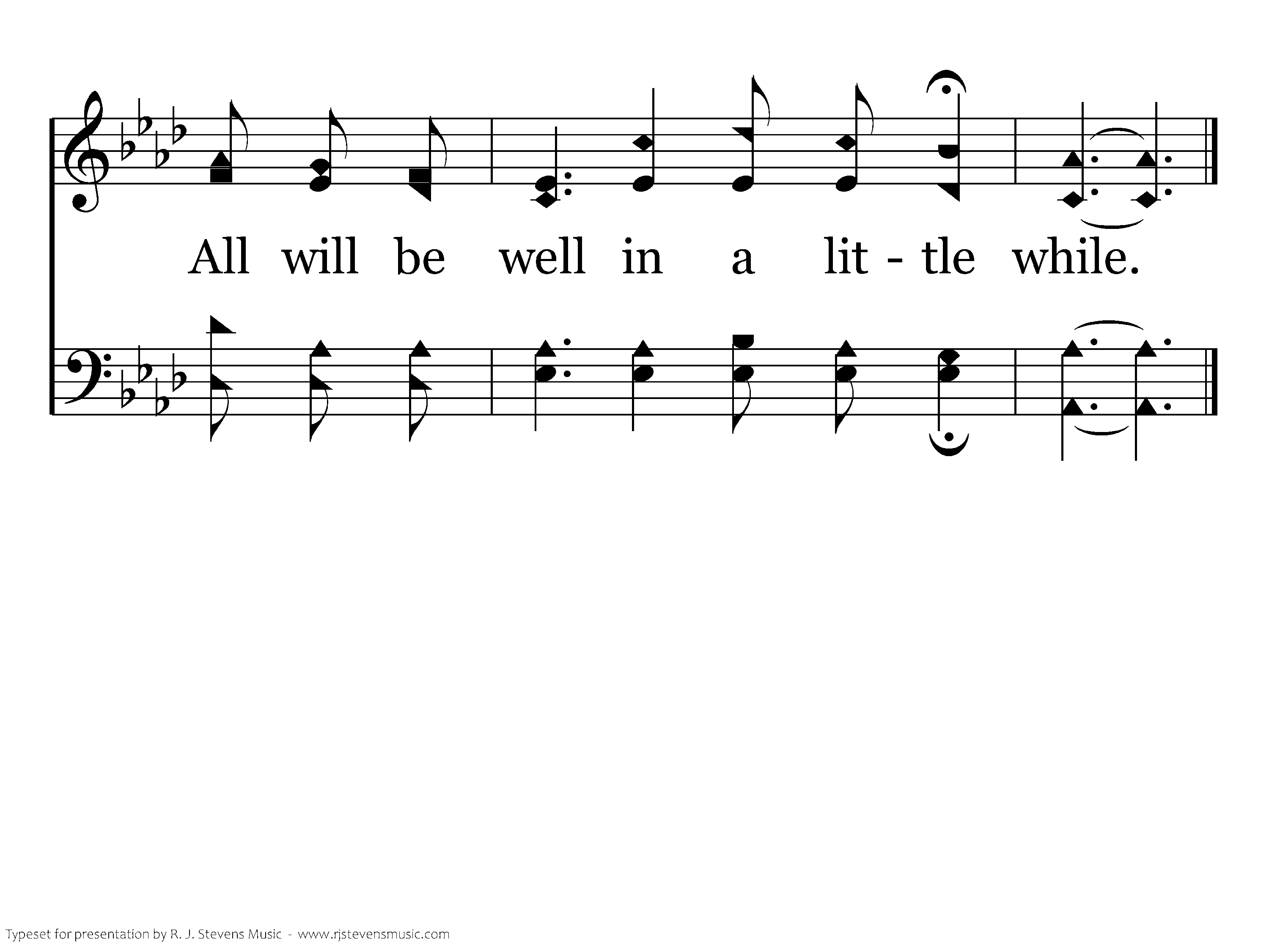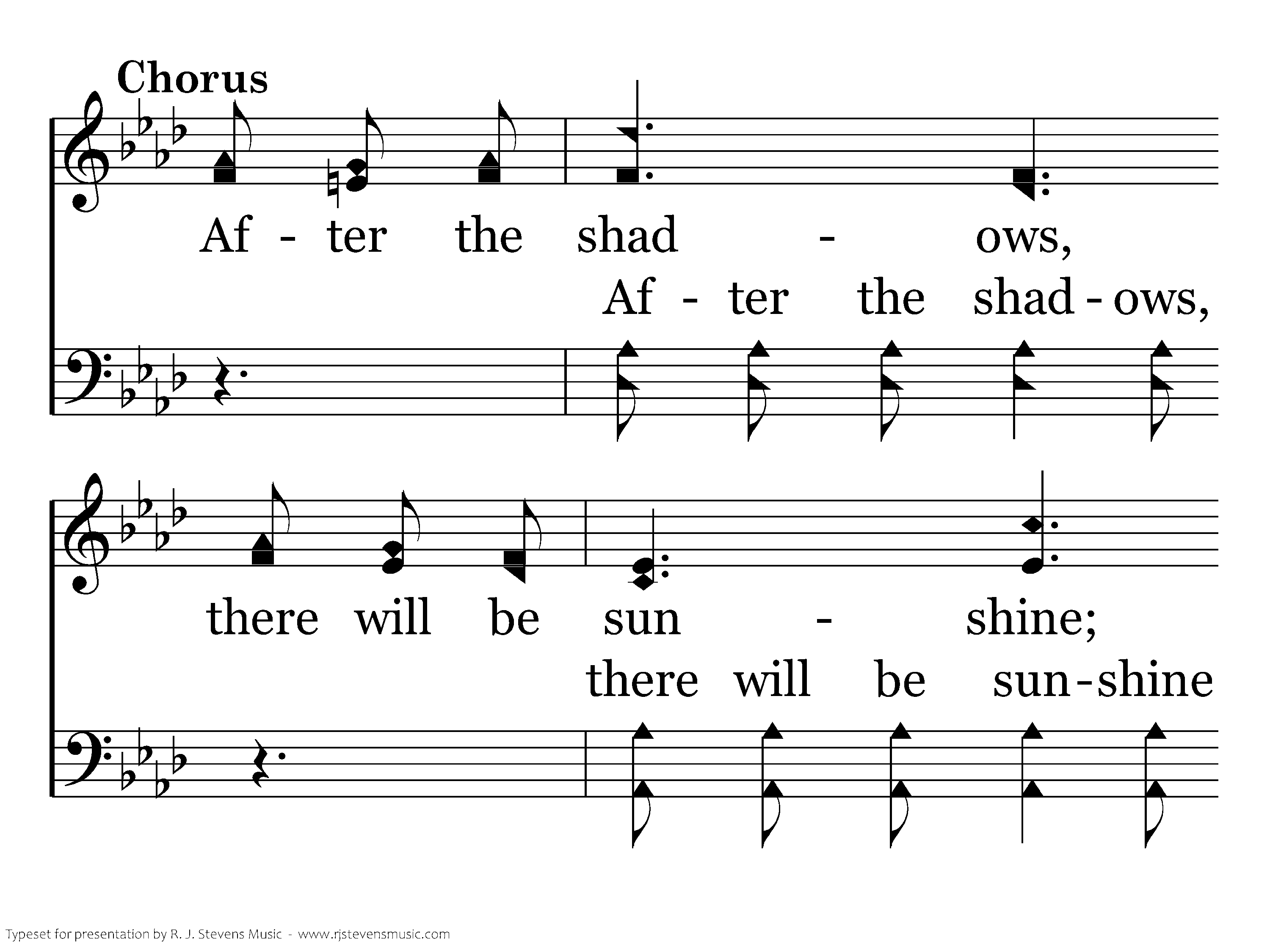 After the shadows, there will be sunshine; After the frown, the soulcheering smile; Cling to the savior, love Him forever; All will be well in a little while.