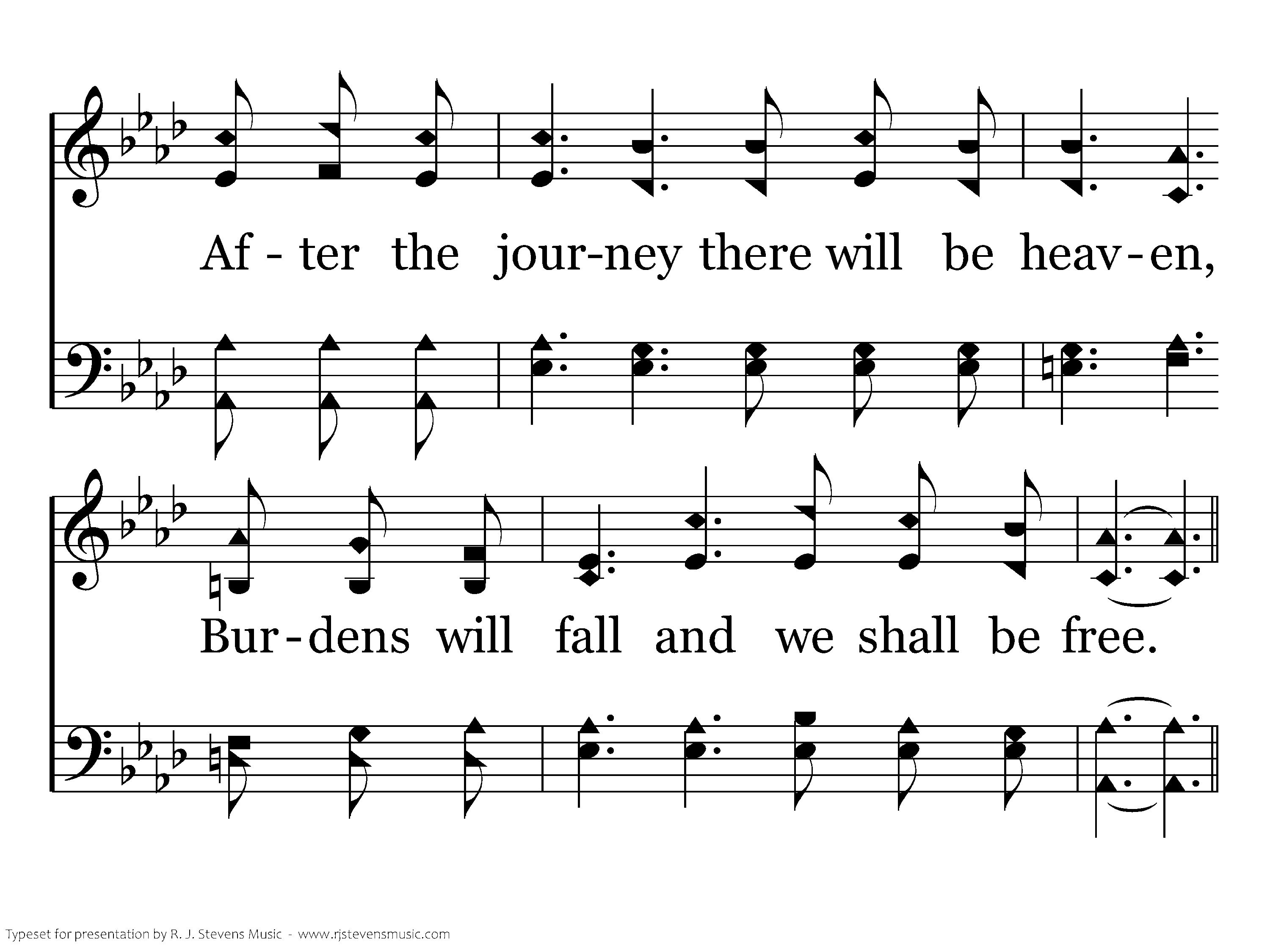 After the battle, peace will be given; After the weeping, song there will be; After the journey there will be heaven, Aurdens will fall and we shall be free.