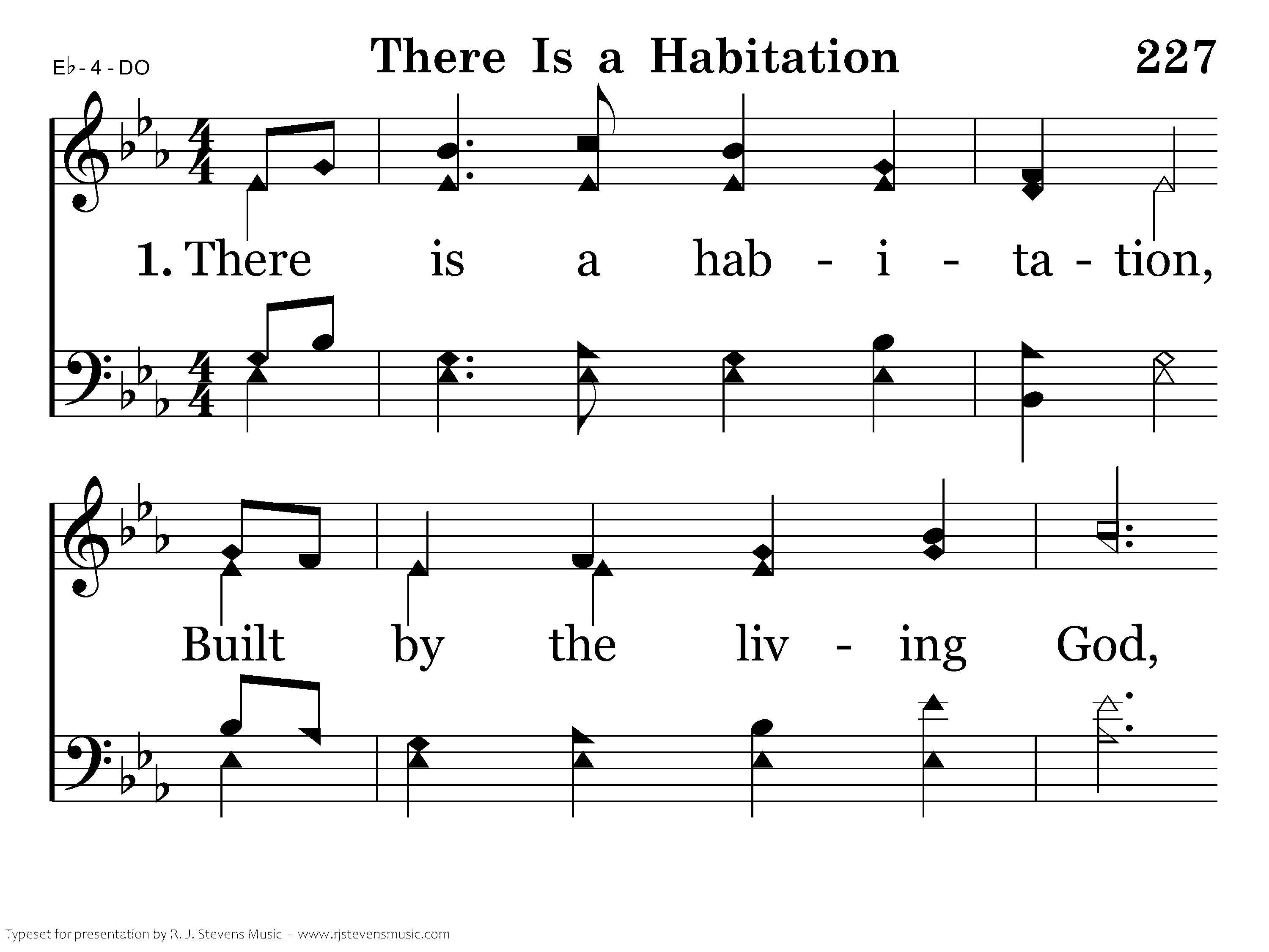 There is a habitation, Built by the living God, For all of every nation, To seek that grand abode.