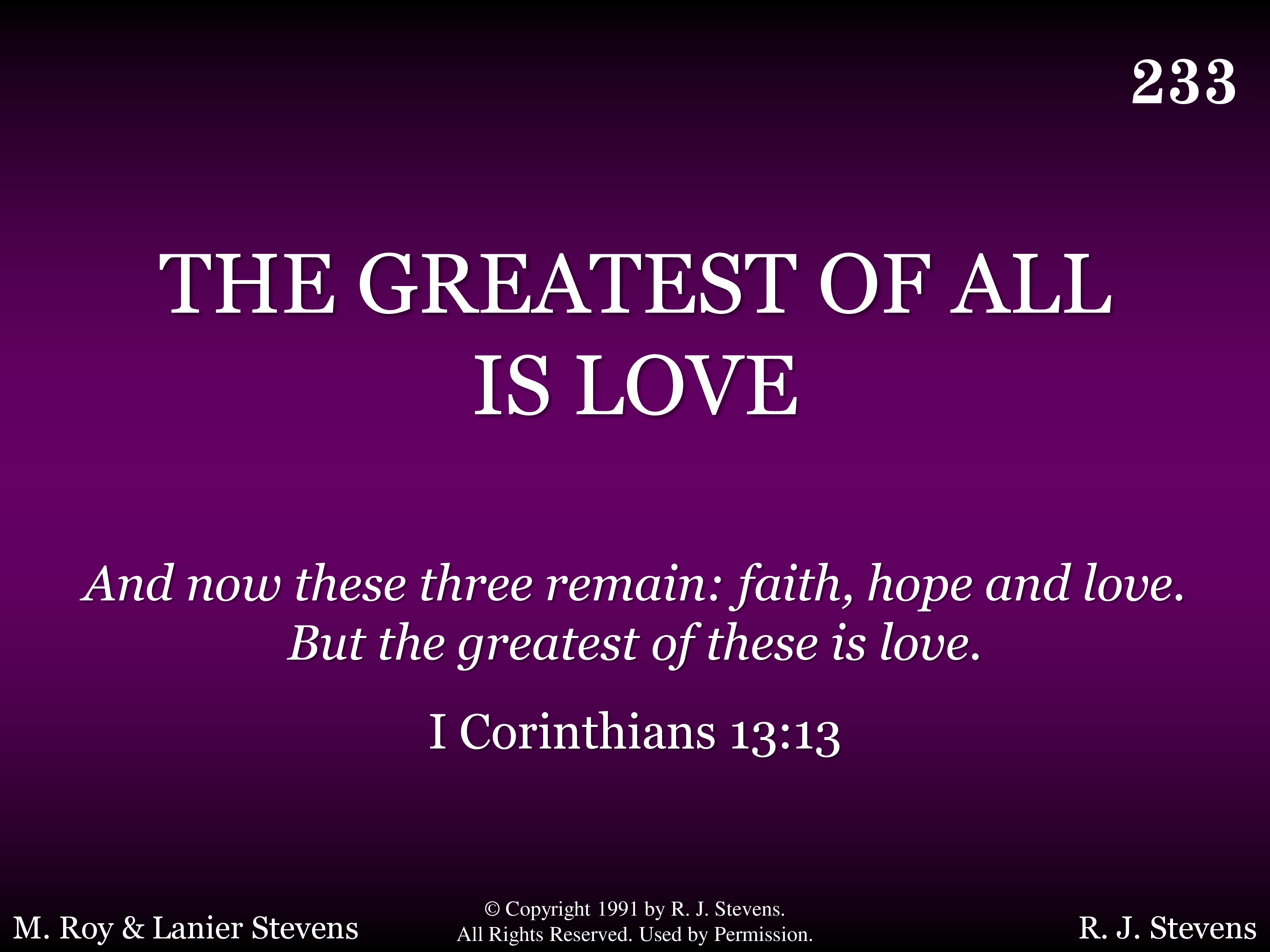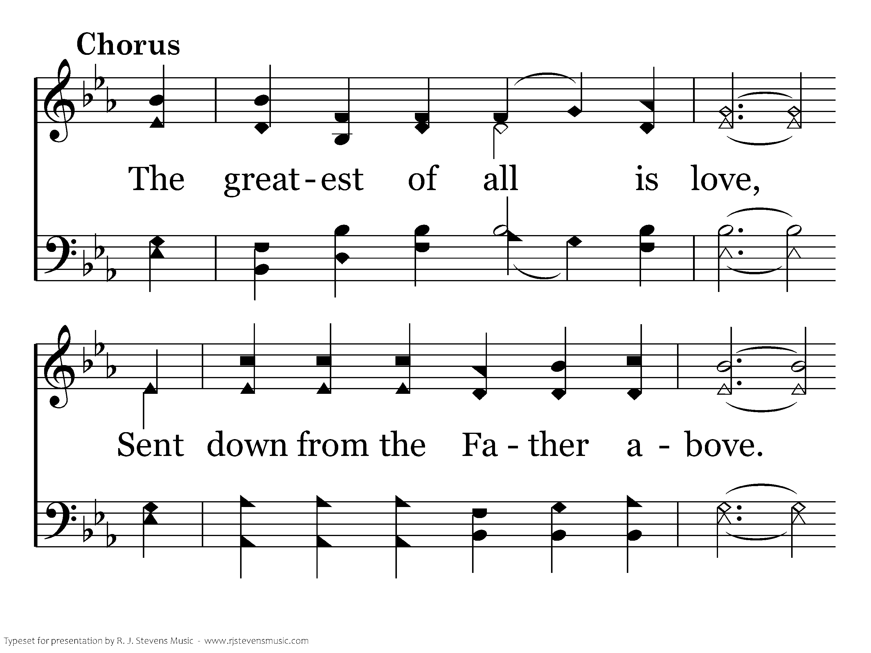 The greatest of all is love, Sent down from the father above. Now abideth faith, and hope, and love; But the greatest of all is love.