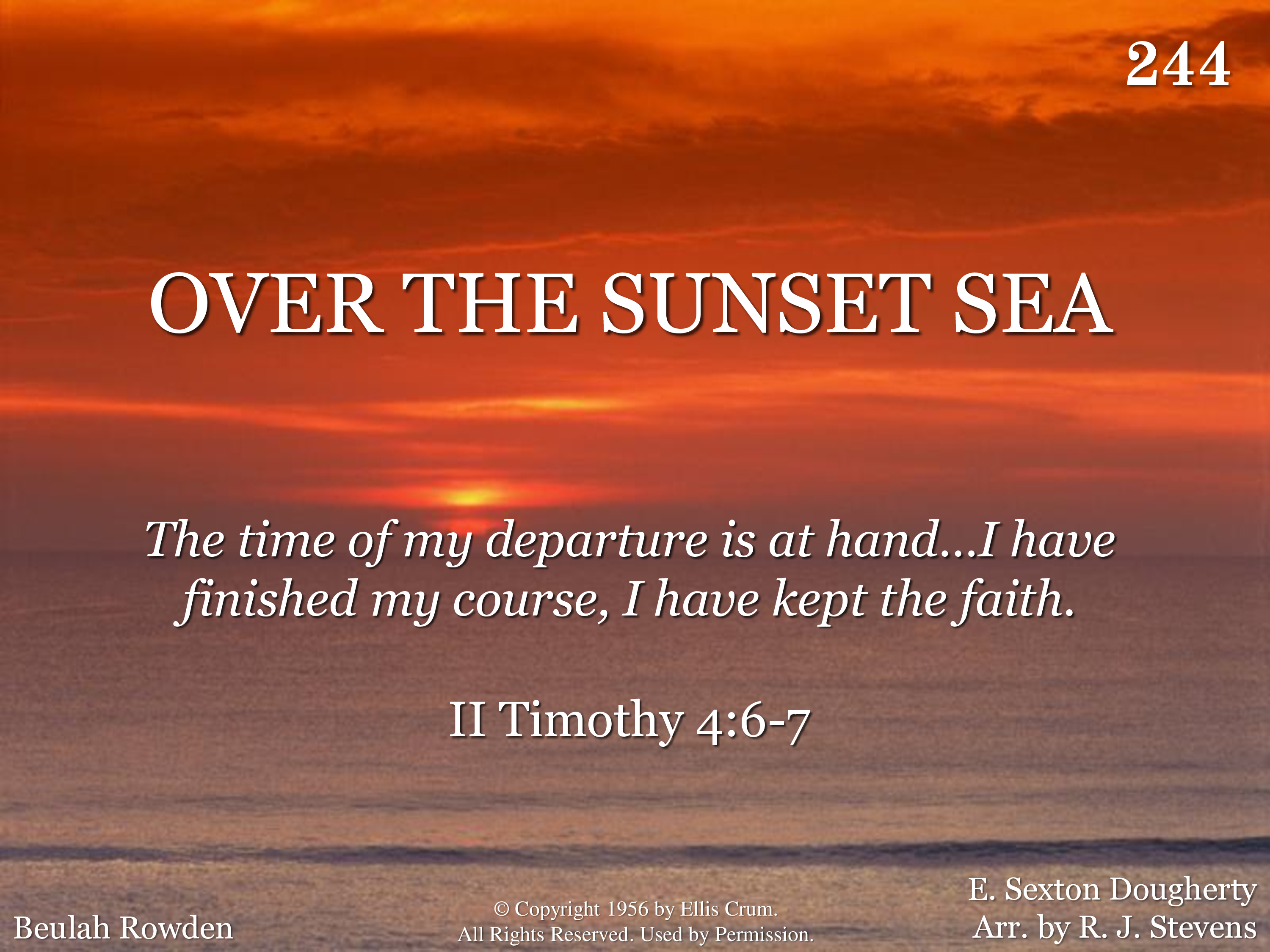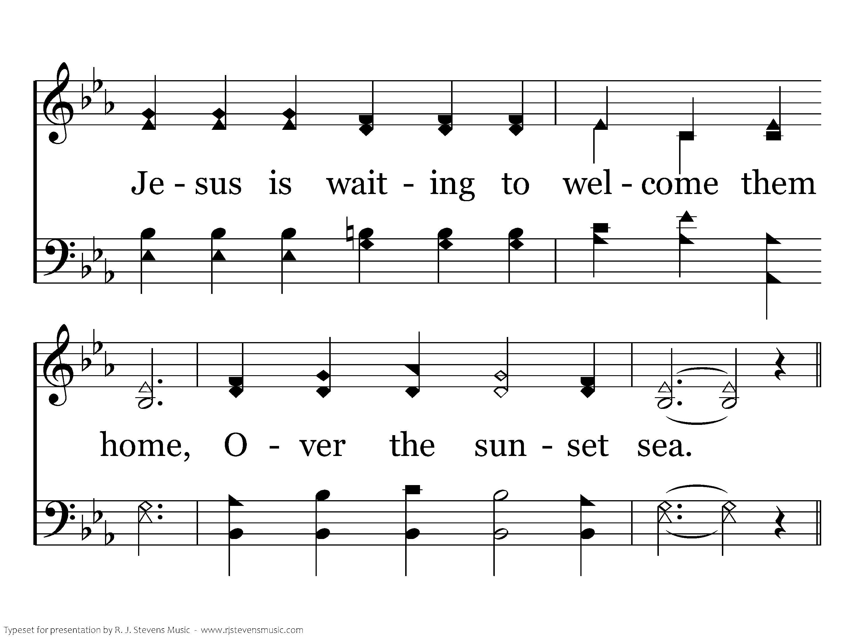 Our hearts are heavy as they journey on, Leaving a dear memory; Jesus is waiting to welcome them home, Over the sunset sea.