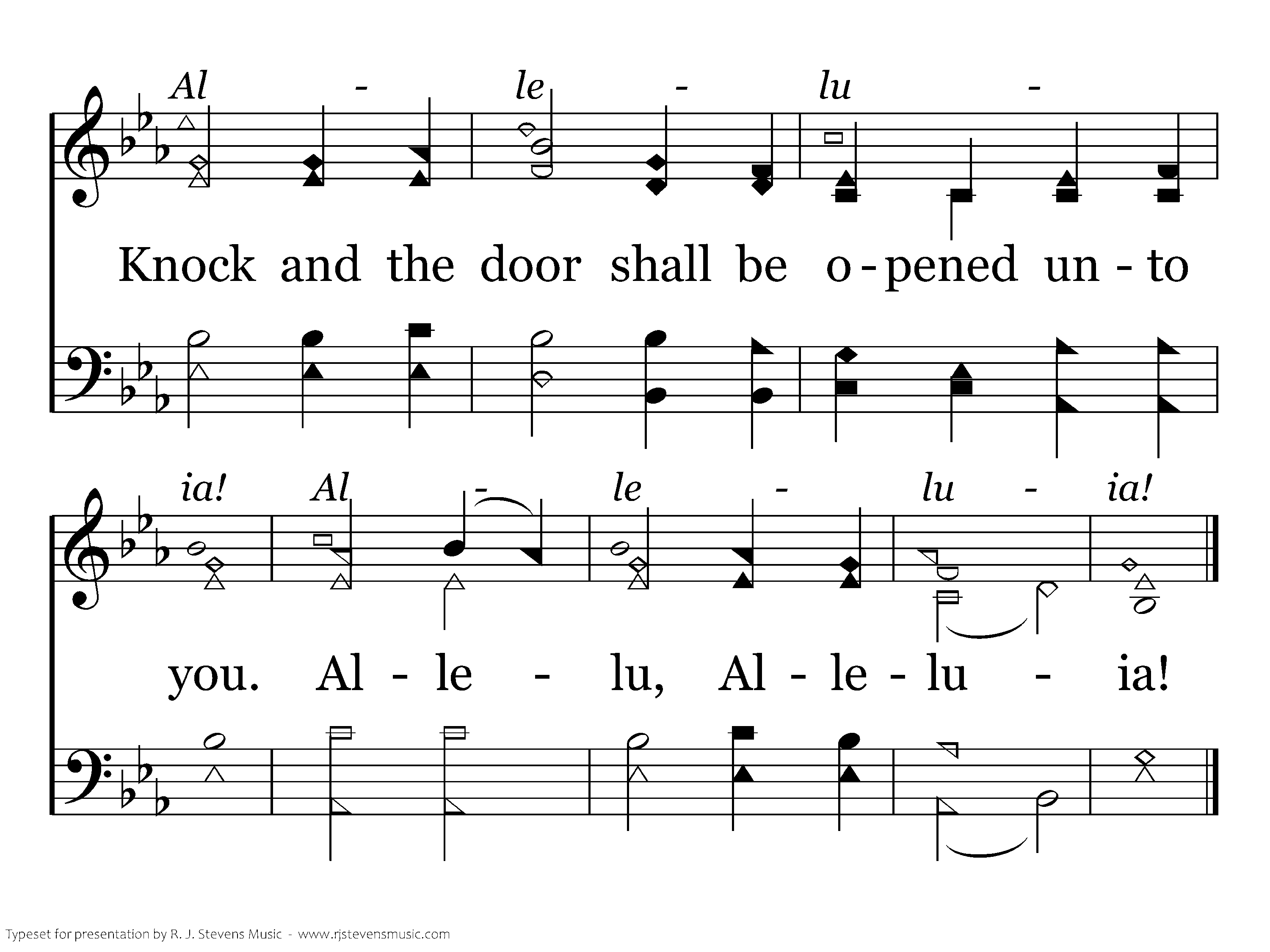 Ask and it shall be given unto you, Seek and ye shall find, Knock and the door shall be opened unto you. Allelu, alleluia!