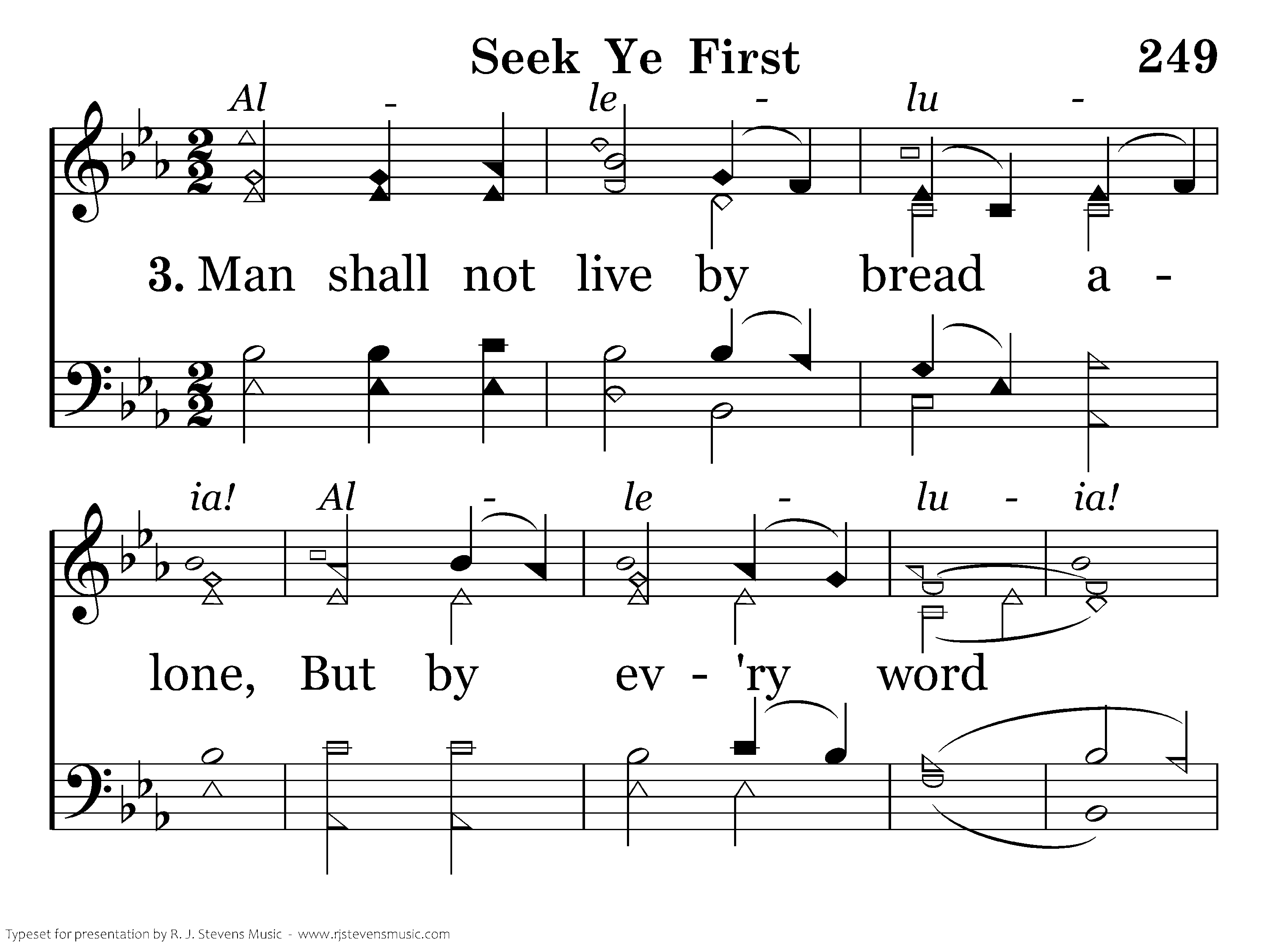 Man shall not live by bread alone, But by every word That proceeds from the mouth of God. Allelu, alleluia!