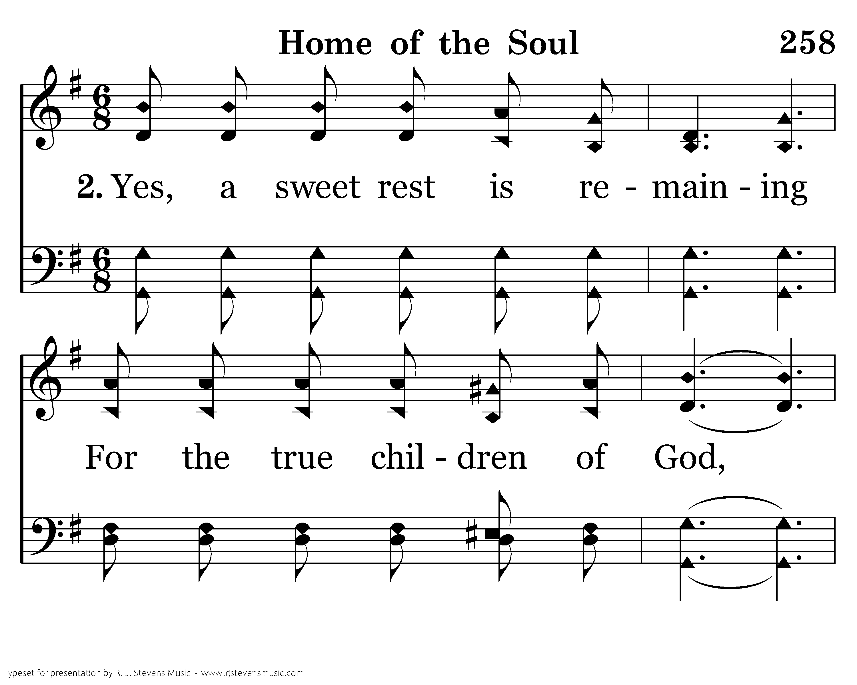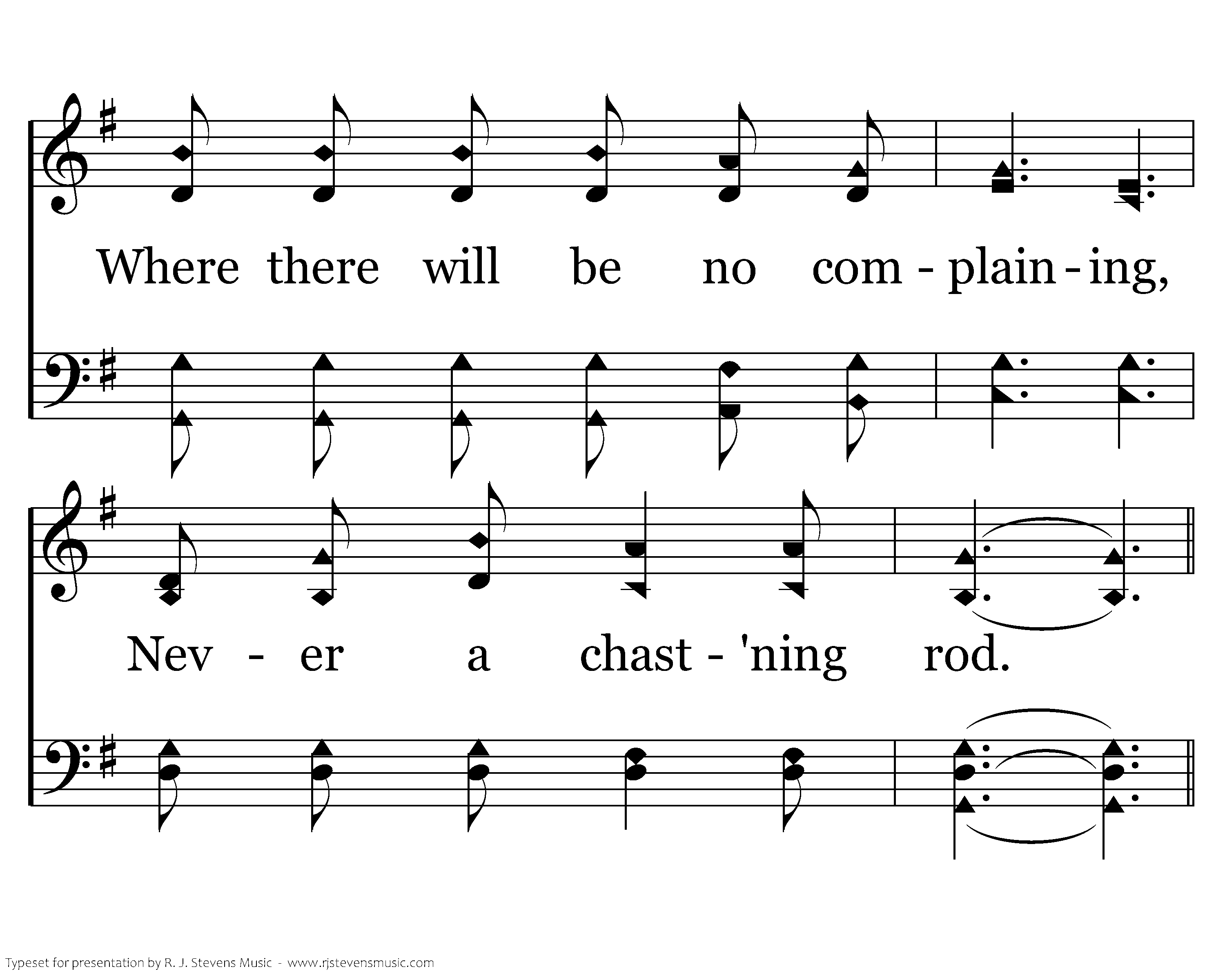 Yes, a sweet rest is remaining, For the true children of God, Where there will be no complaining, Never a chastning rod.