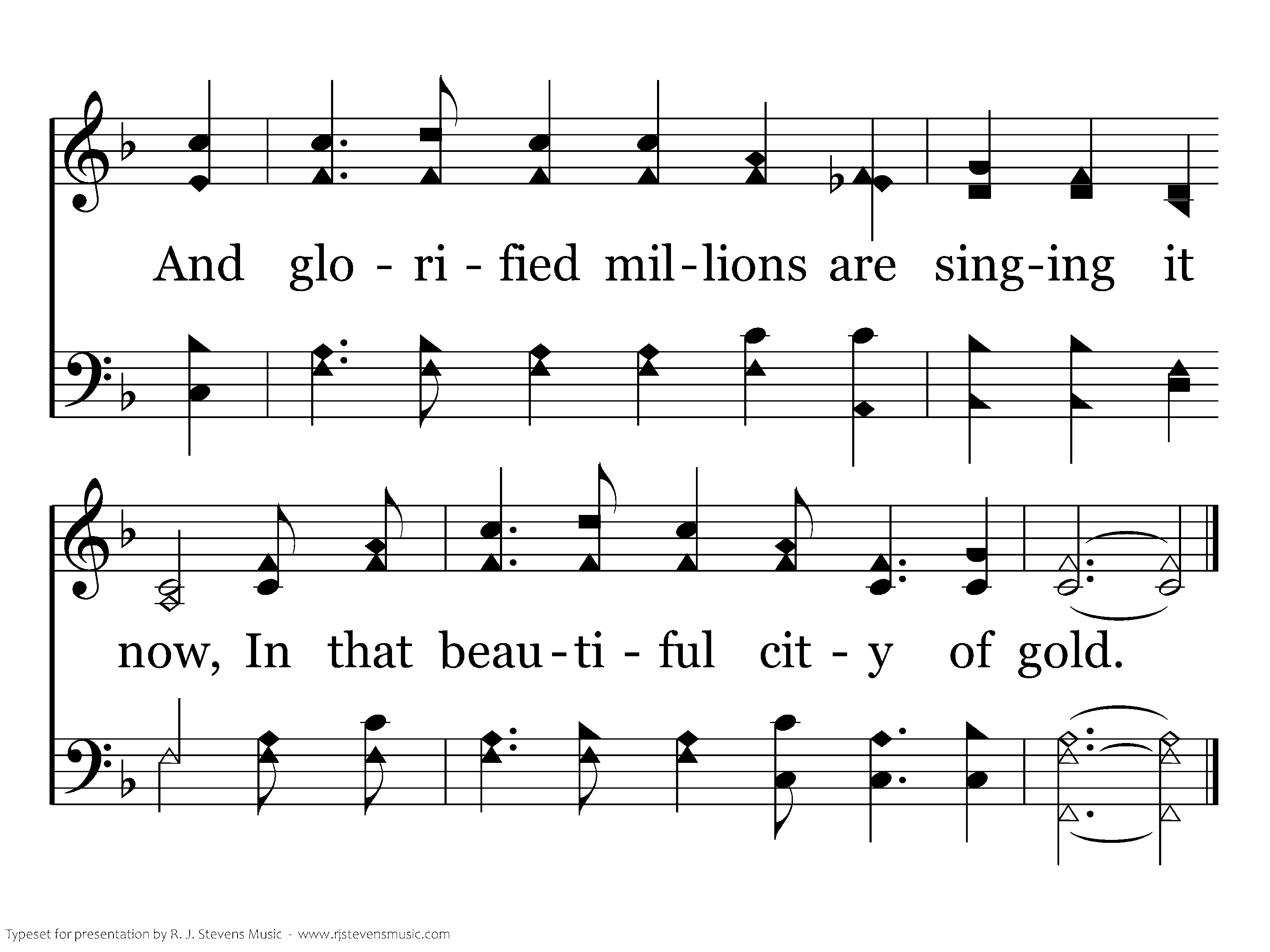 In heaven they're singing a wonderful song, A theme that shall never grow old; And glorified millions are singing it now, In that beautiful city of gold.