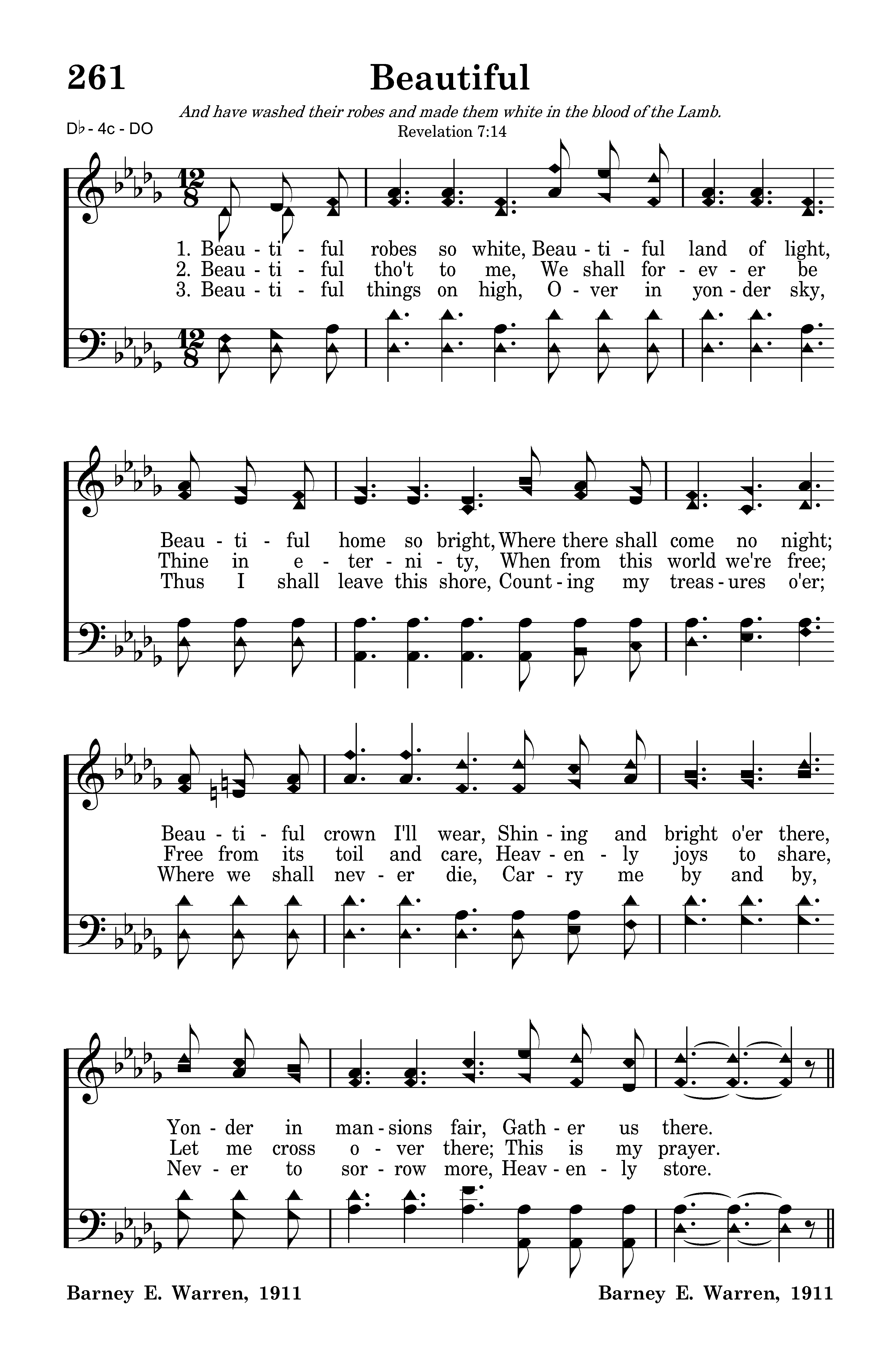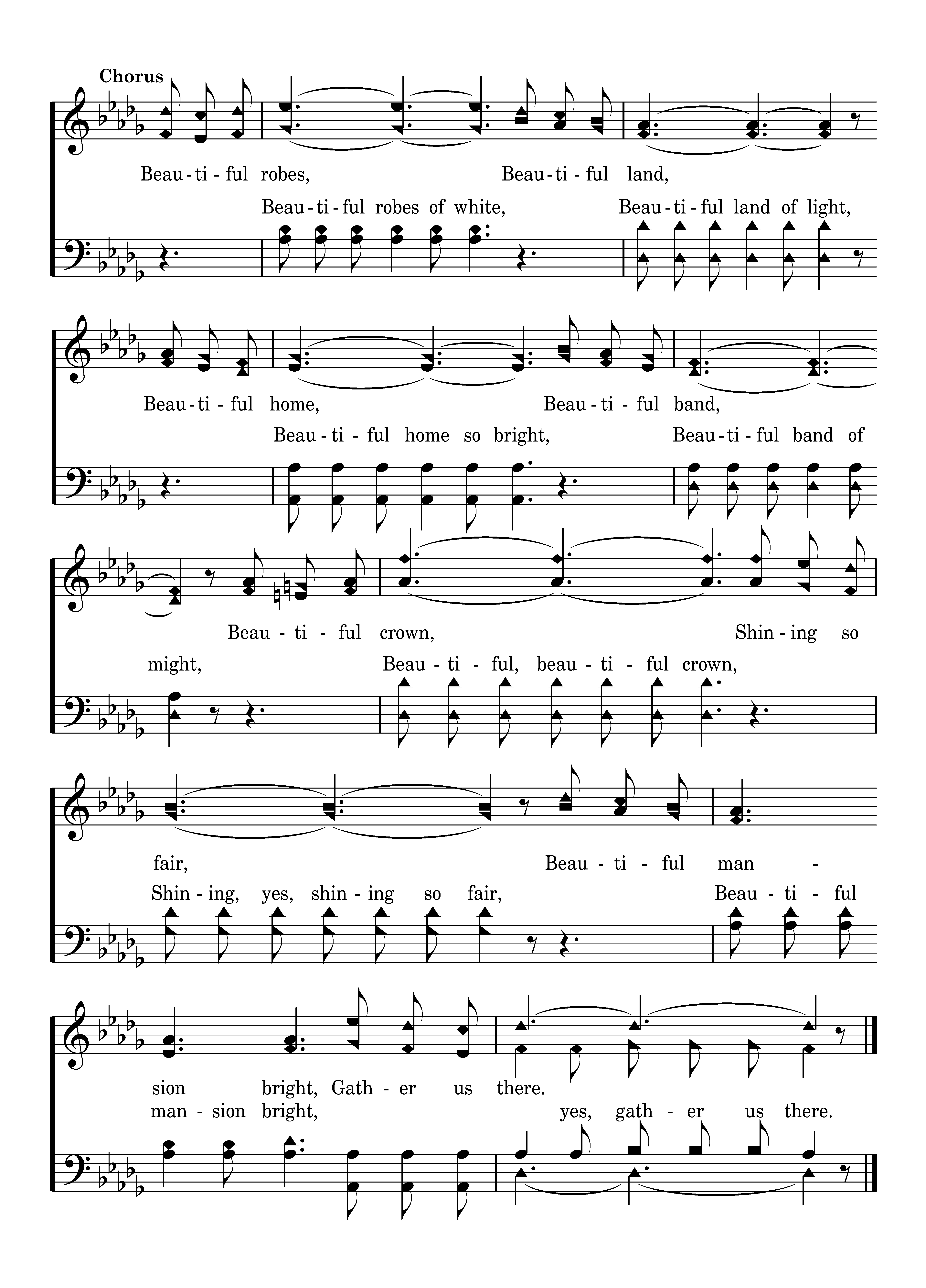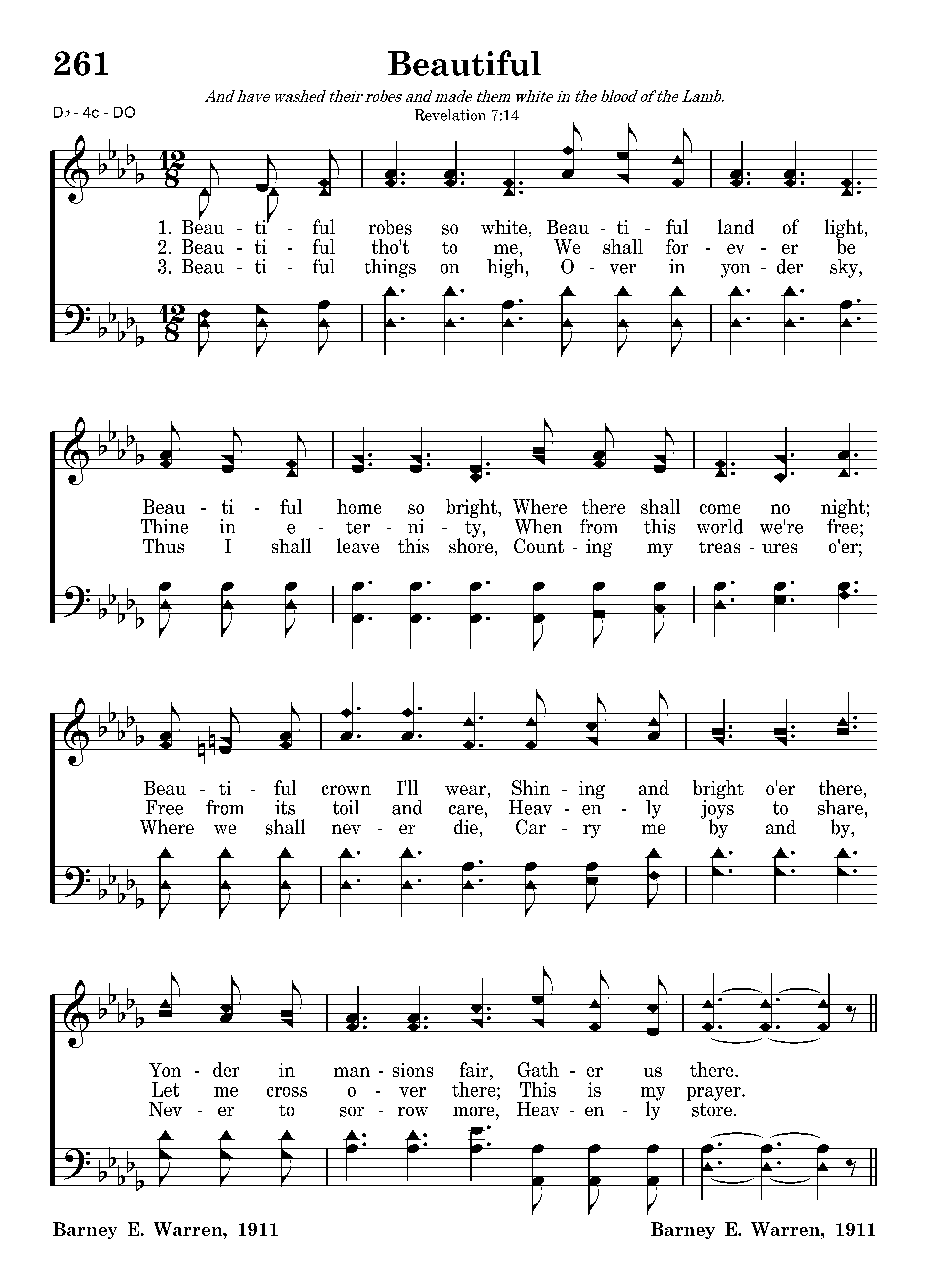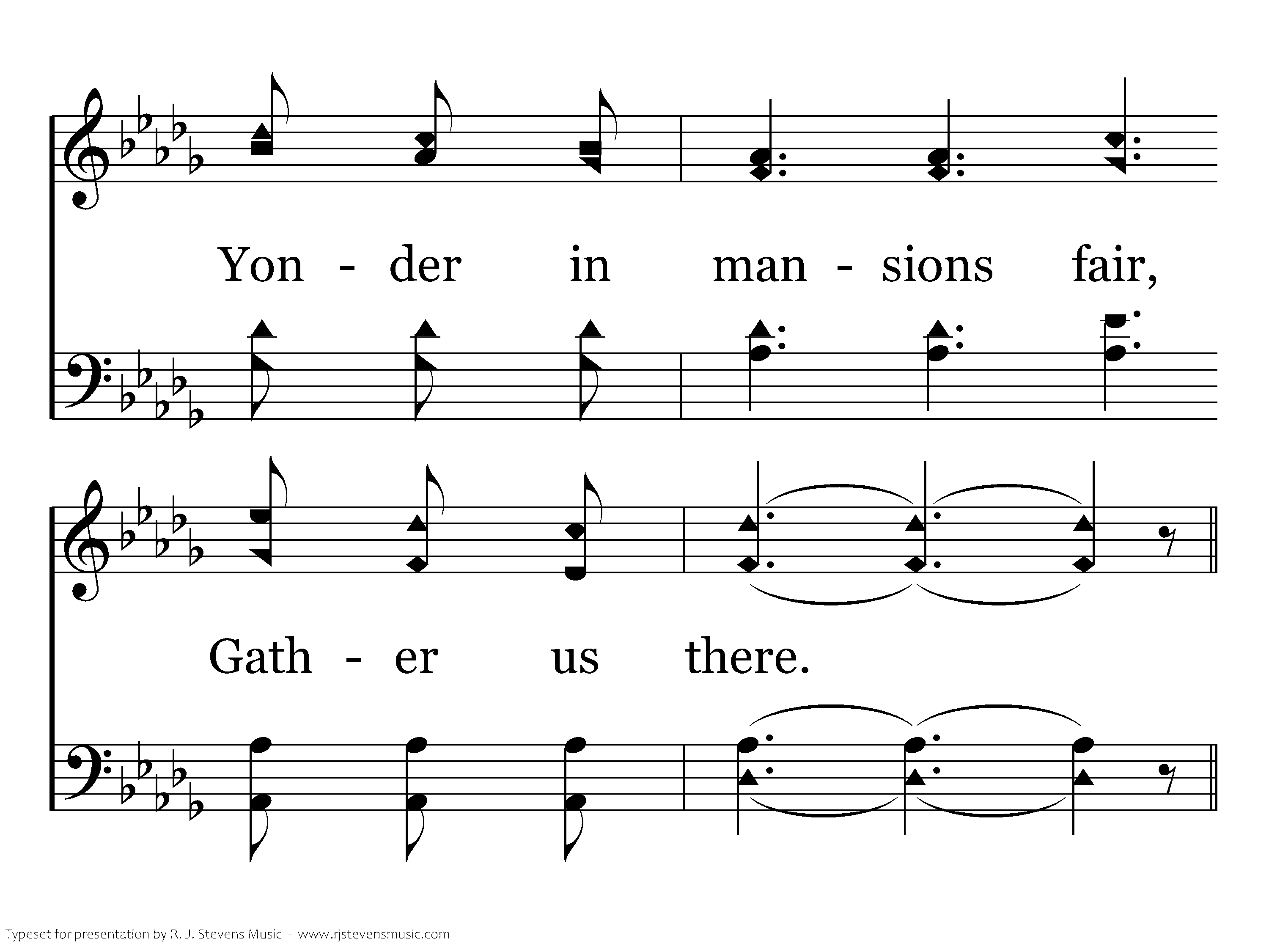 Beautiful robes of white, Beautiful land of light, Beautiful home so bright, Beautiful band of might, beautiful, beautiful crown, Shining, yes shining so fair, Beautiful mansion bright Gather us there.