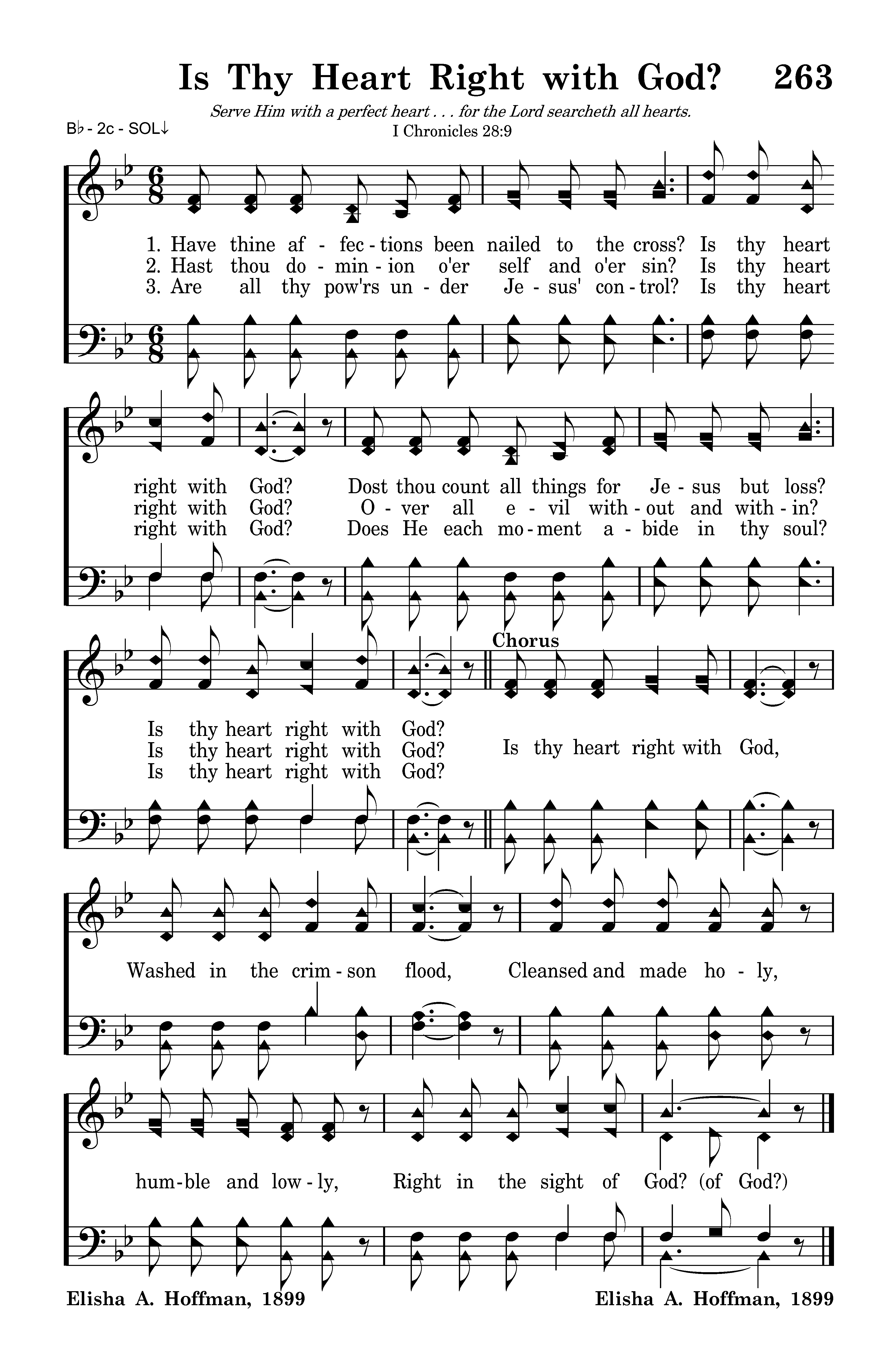 Have thine affections been nailed to the cross? Is thy heart right with God? Dost thou count all things for Jesus but loss? Is thy heart right with God?