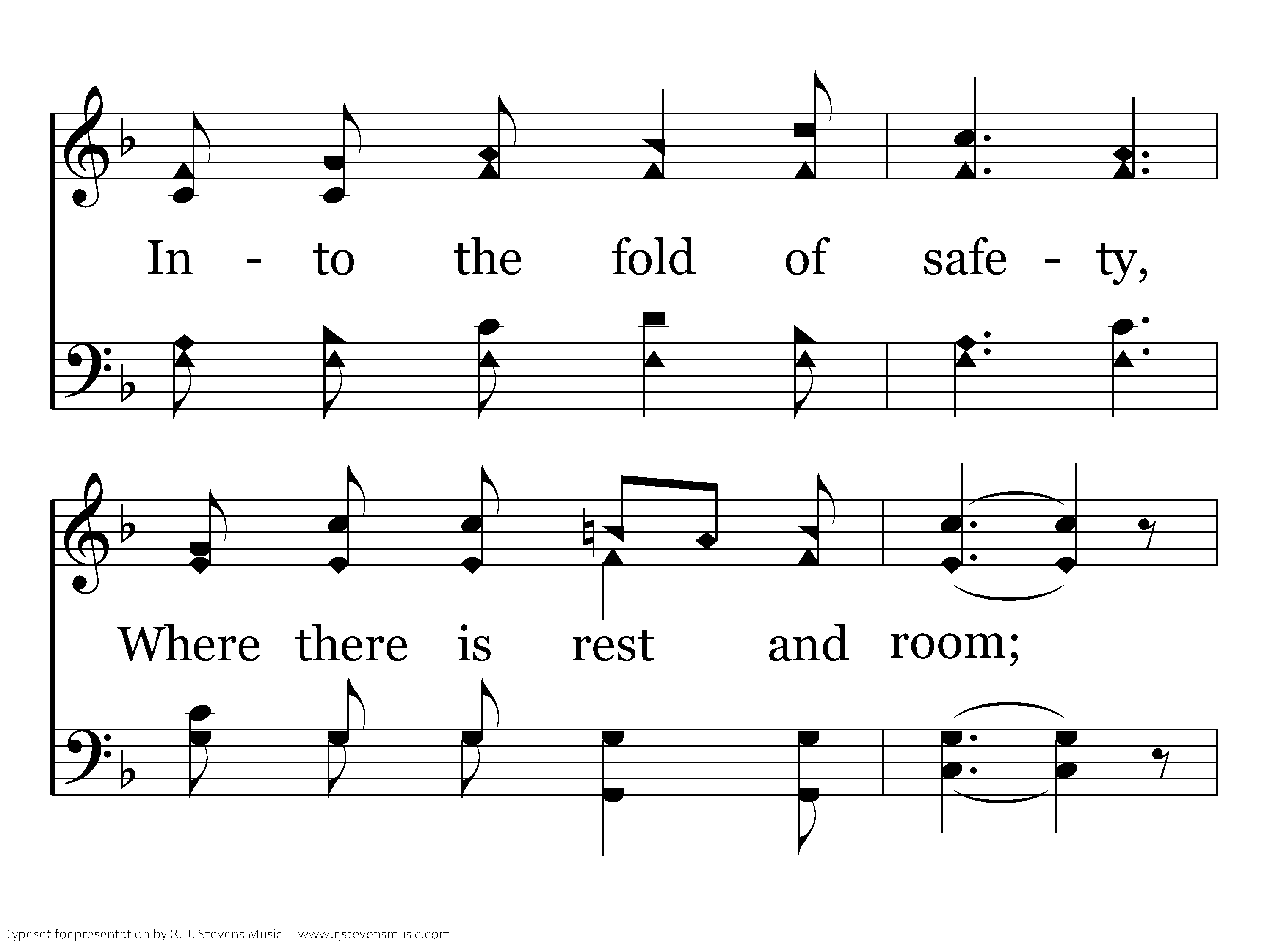 Jesus, the loving Shepherd, Gave His dear life for thee; Tenderly now He's calling, Wanderer come to me; Haste! For without is danger, Come, cries the shepherd blest; Enter the fold of safety, Enter the place of rest.