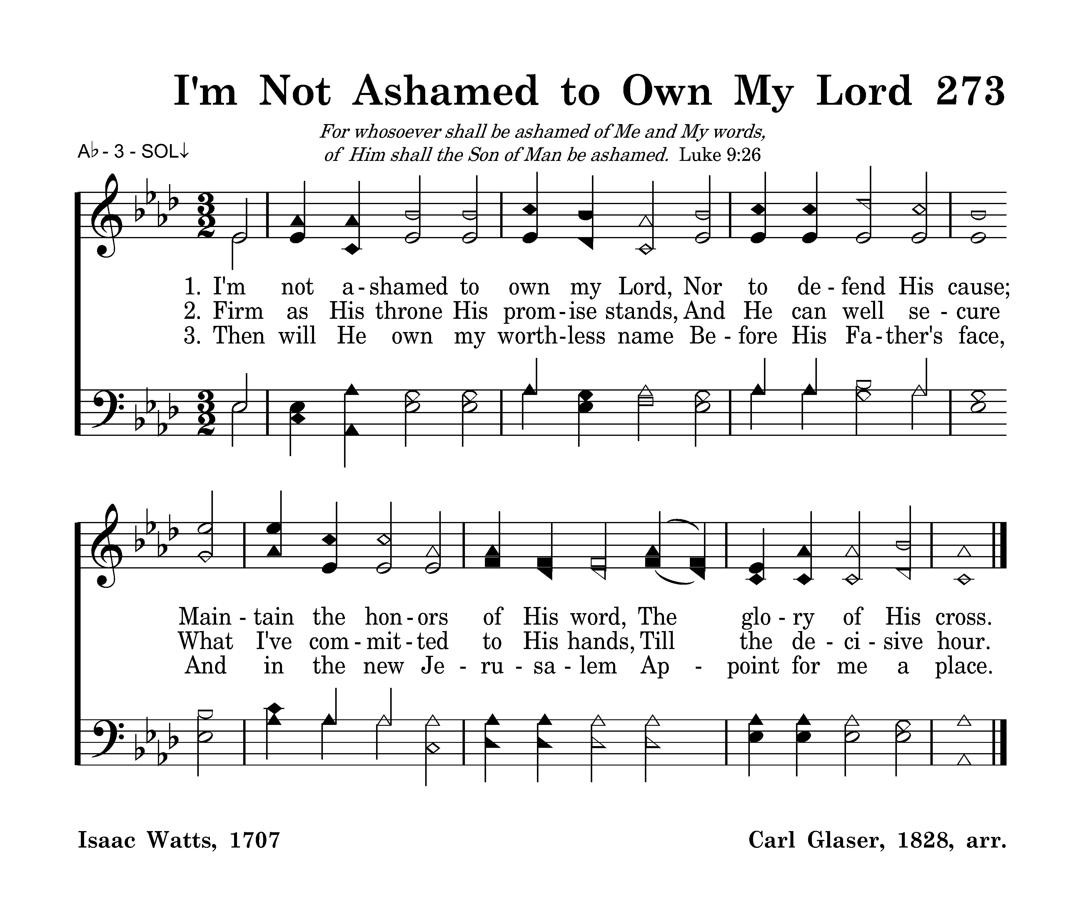 I'm not ashamed to own my Lord, Nor to defend His cause, Maintain the honors of His word, The glory of His cross.