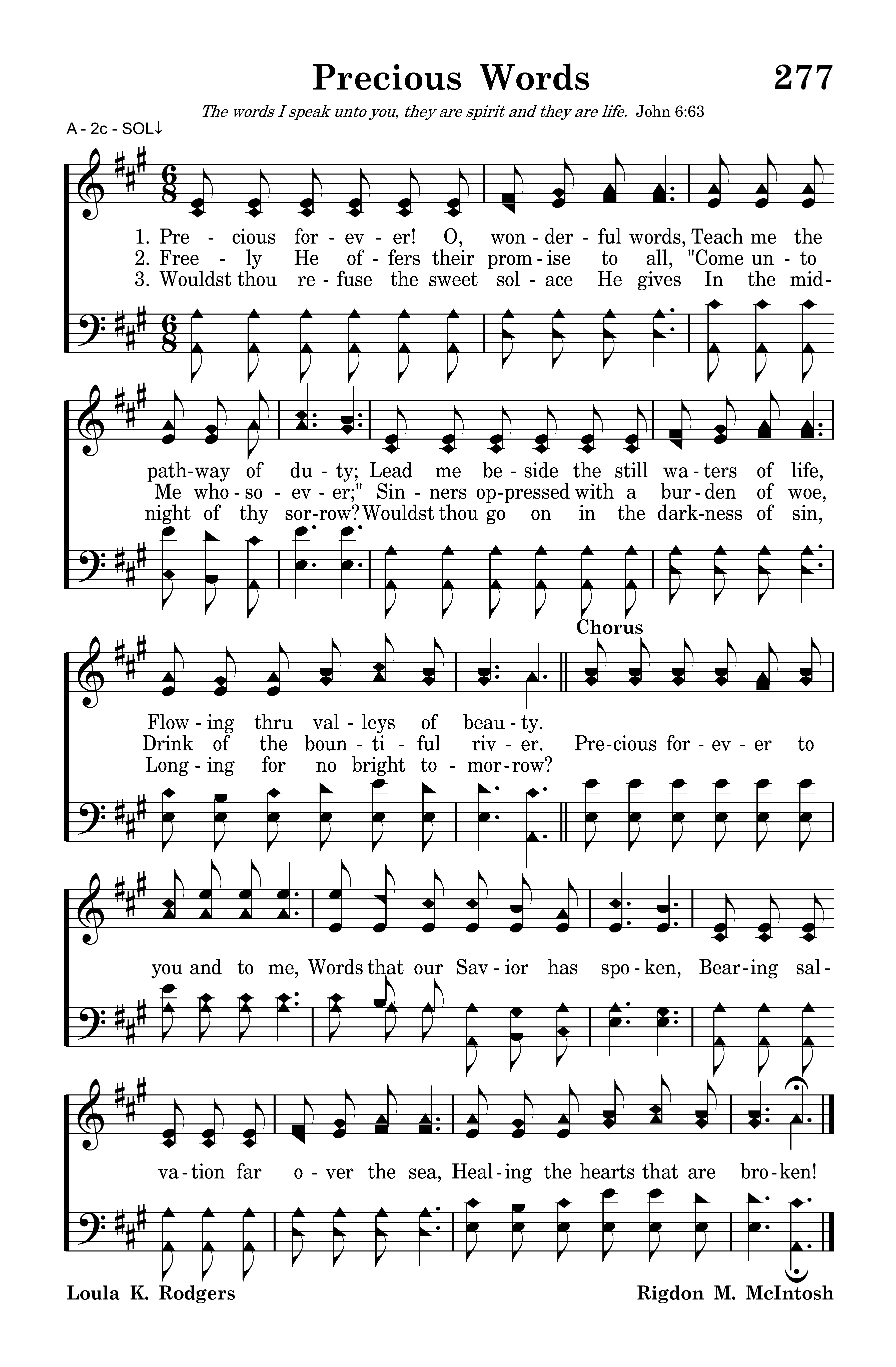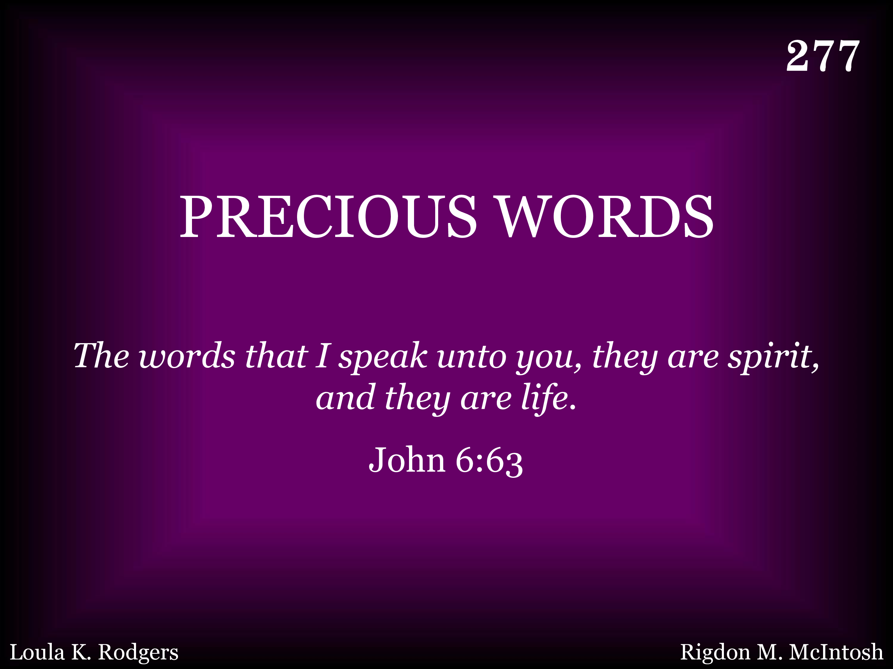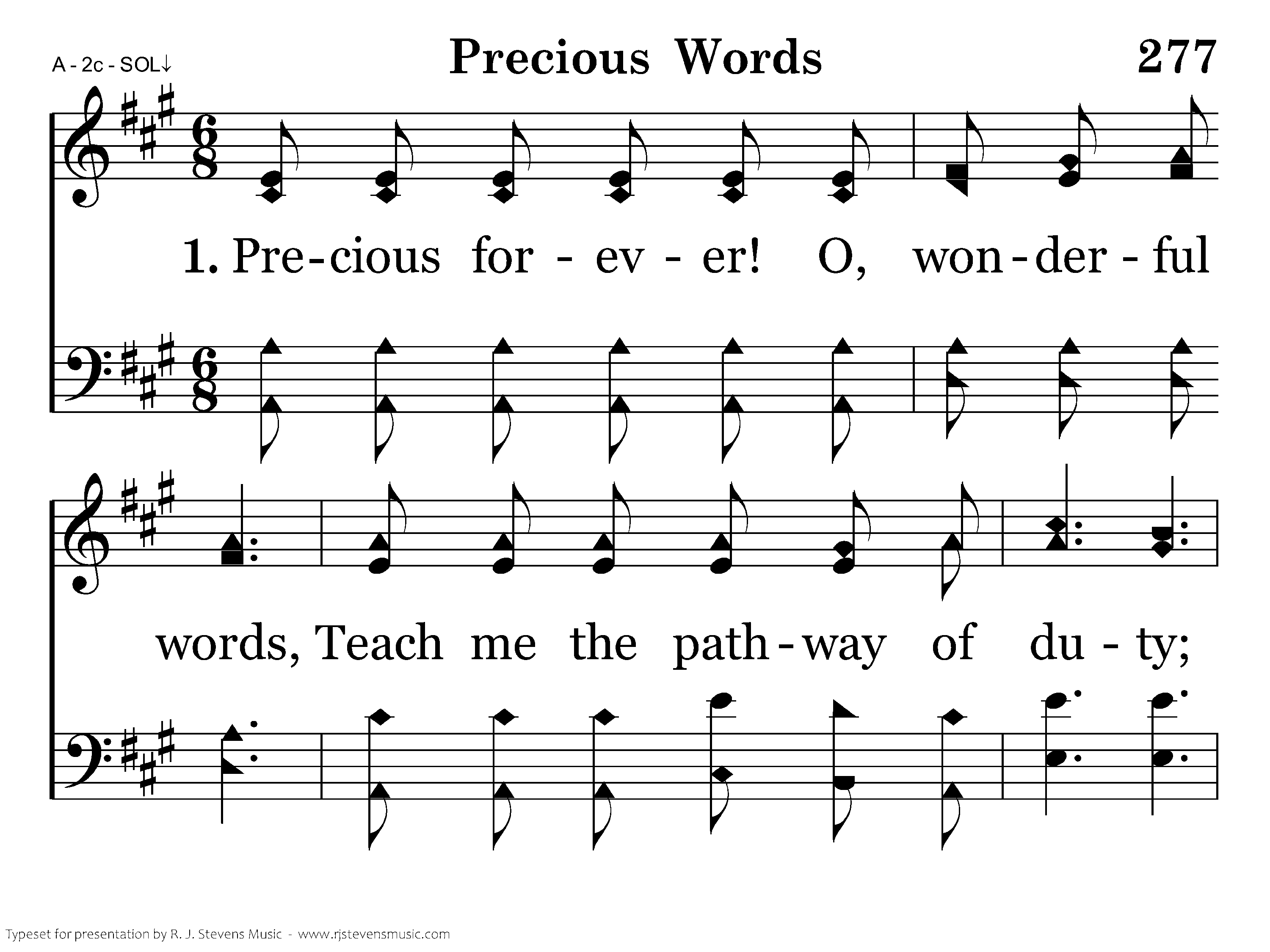 Precious forever! O, wonderful words, Teach me the pathway of duty; Lead me beside the still waters of life, Flowing thru valleys of beauty.