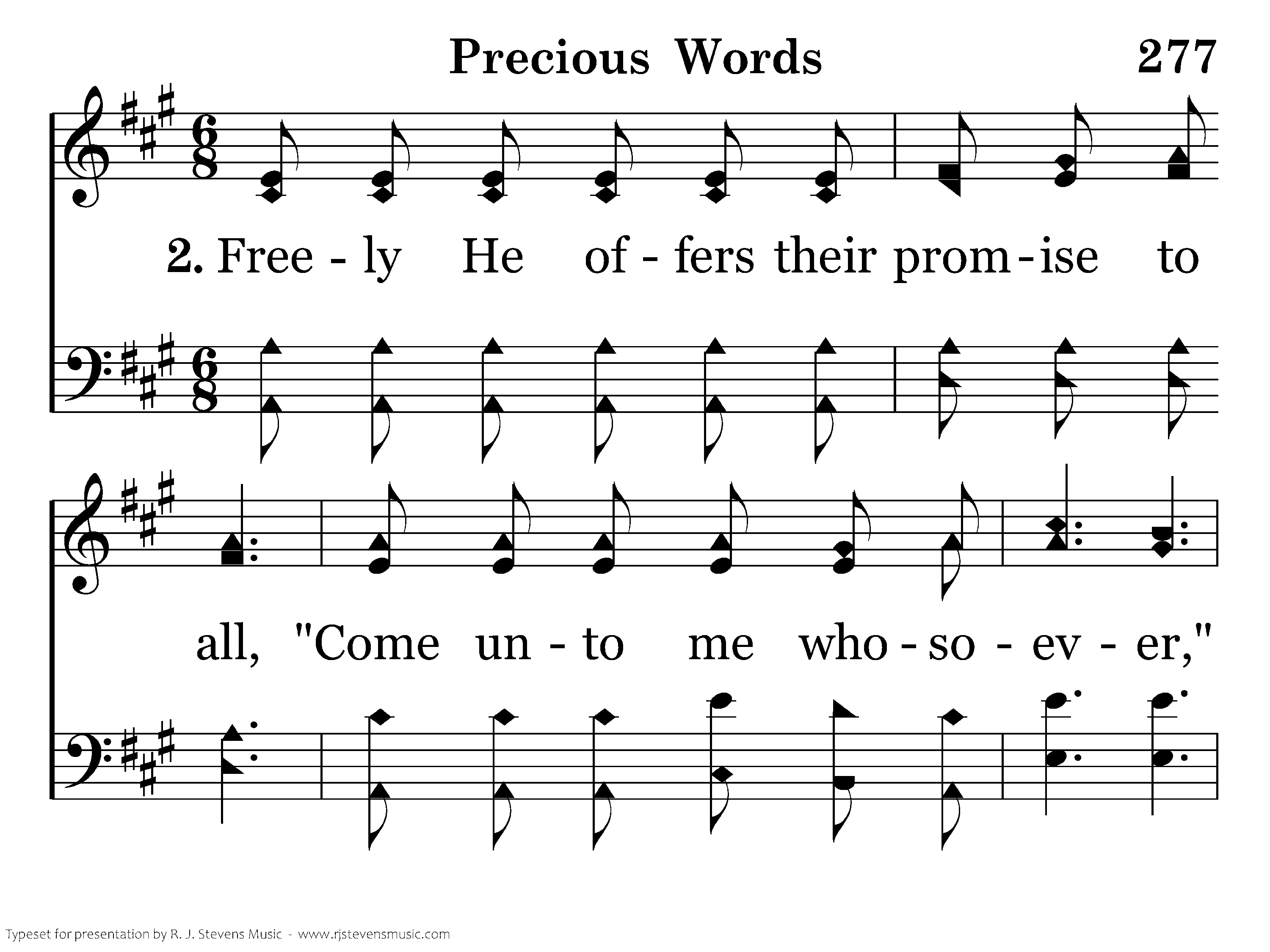 Freely He offers their promise to all, "Come unto me whosoever;" Sinners oppressed with a burden of woe, Drink of the bountiful river.
