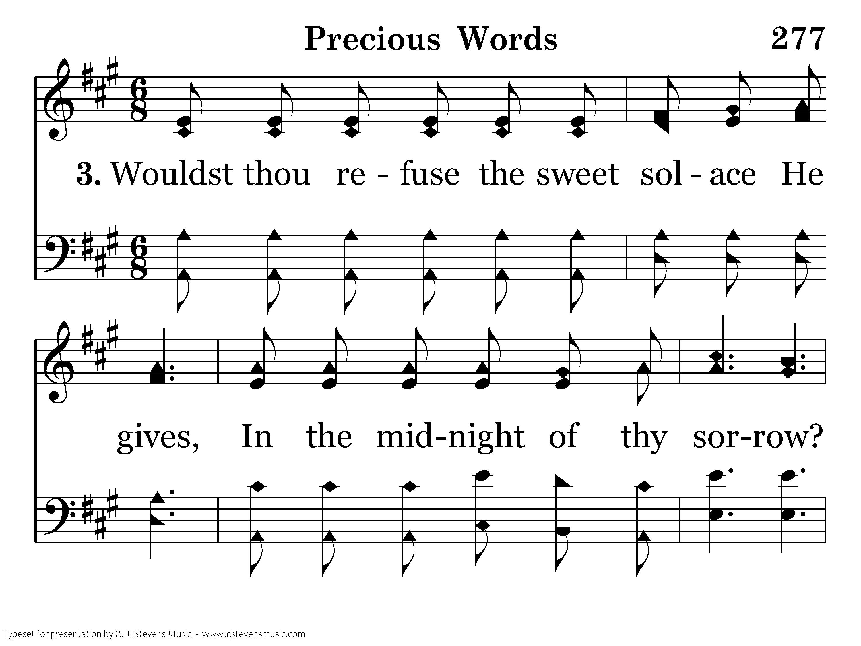 Wouldst thou refuse the sweet solace He gives In the midst of the sorrow? Wouldst thou go on in the darkness of sin, Longing for no bright tomorrow?