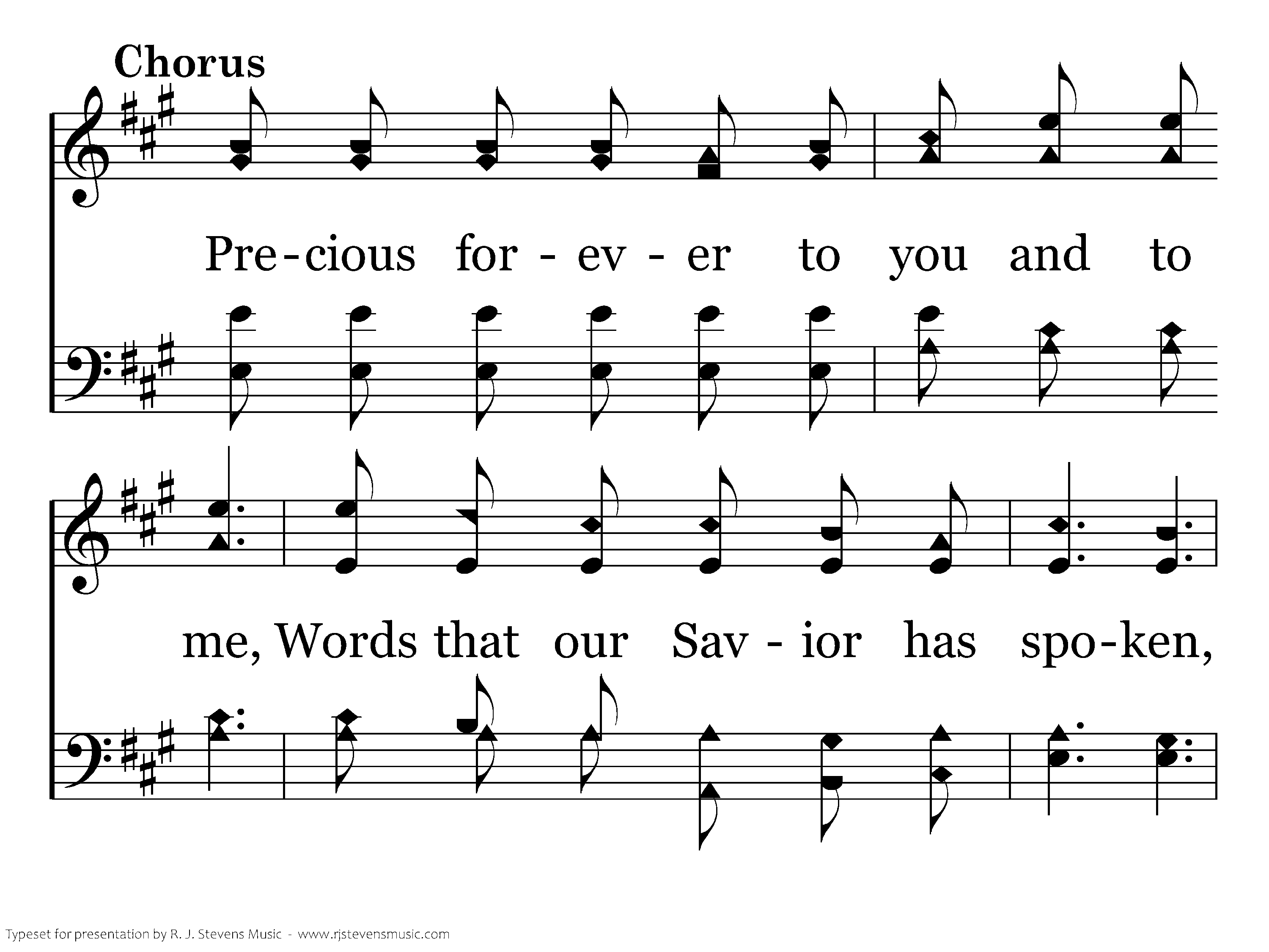 Precious forever to you and to me, Words that our Savior has spoken, Bearing salvation far over the sea, Healing the hearts that are broken!