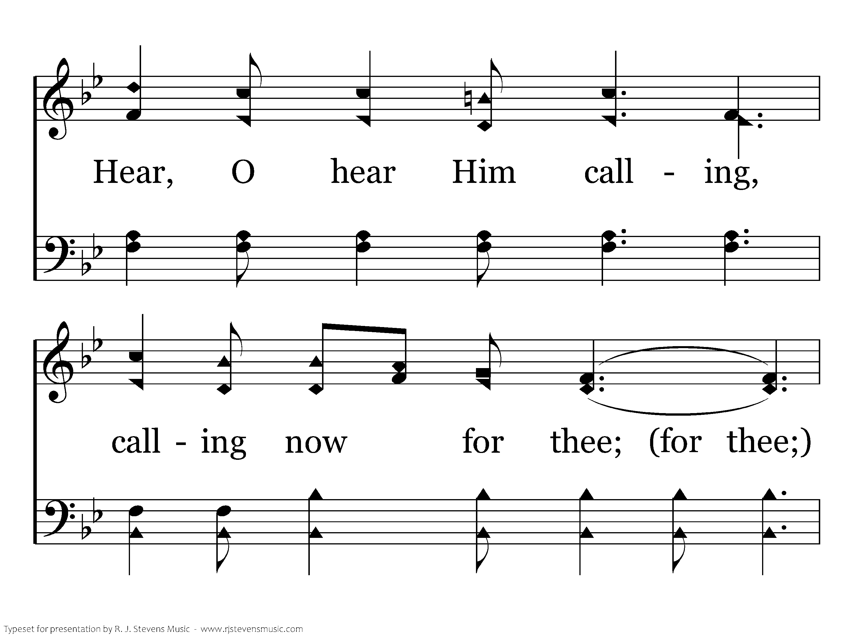 Patient, loving, and tenderly still the Father pleads; Hear, O hear Him calling, calling now for thee; O! return while the spirit in mercy intercedes, Hear His loving voice calling still.